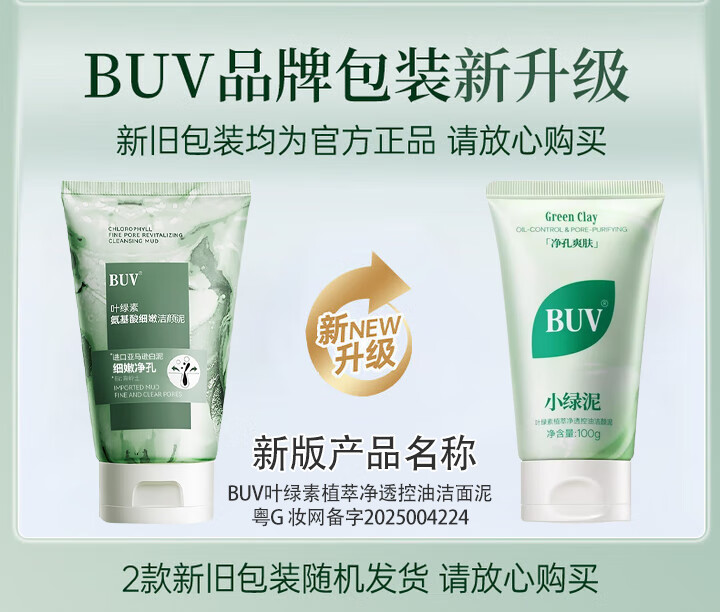 BUV叶绿素氨基酸洗面奶男女士祛痘深层清洁黑头收缩毛孔敏感肌洁面泥 1瓶洁面泥100g