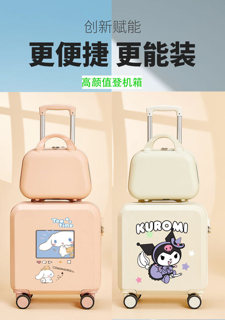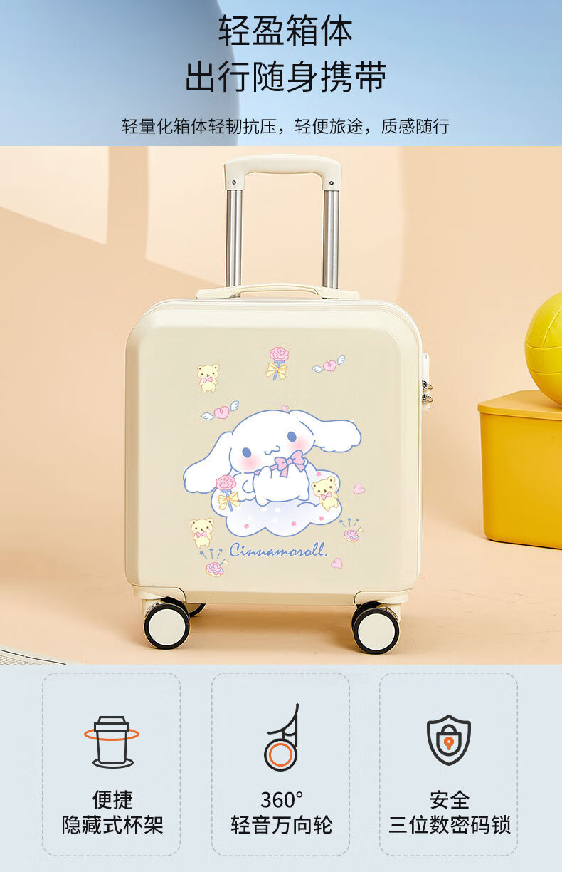 儿童行李箱小型女可爱拉杆箱轻便登机箱高颜值杯架旅行箱卡通皮箱 薄荷绿玉桂狗B 18英寸 折叠杯架【约40*38*18cm】