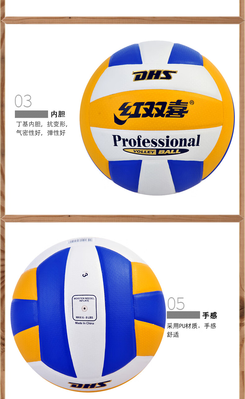 红双喜(DHS) 红双喜排球5号充气软中考专业训练比赛男女生排球初中生用球学生 升级版硬排球+气针气筒球包