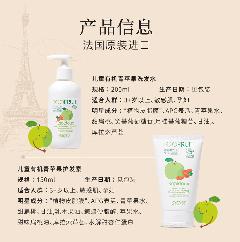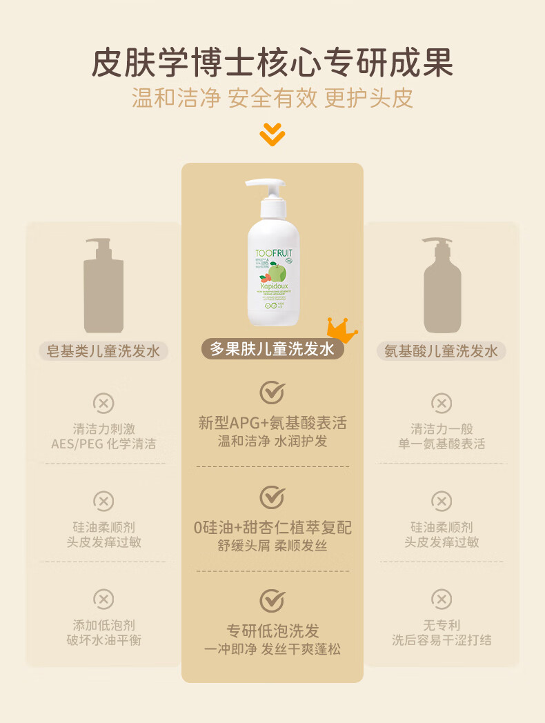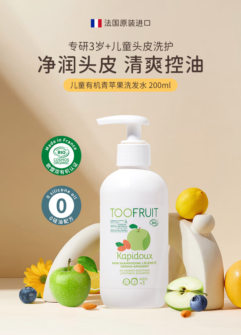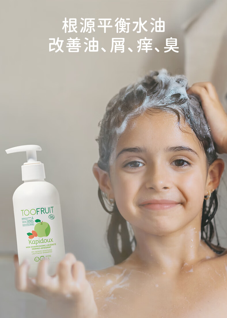 TOOFRUIT多果肤有机儿童青少年洗发水 3-6-12岁男女清爽止痒防头屑无硅油 [98%选择控油净屑]200ml