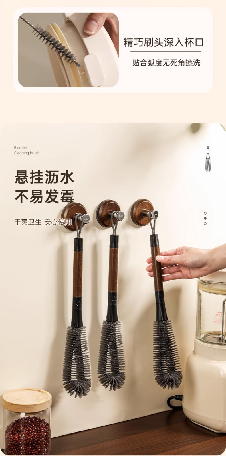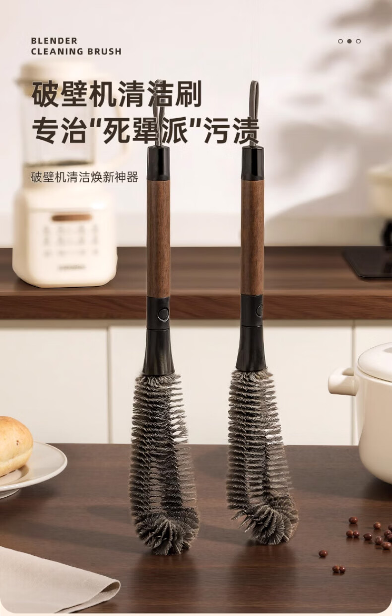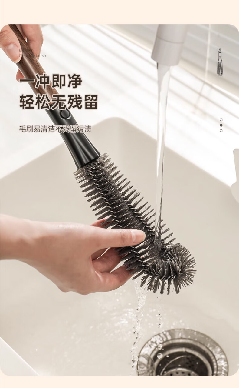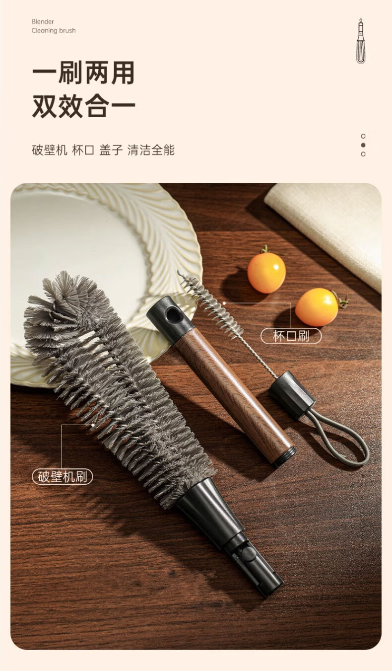 不锈钢杯刷二合一清洁长柄刷破壁机清洗神器多功能洗杯子专用刷子 胡桃木纹【1个装】