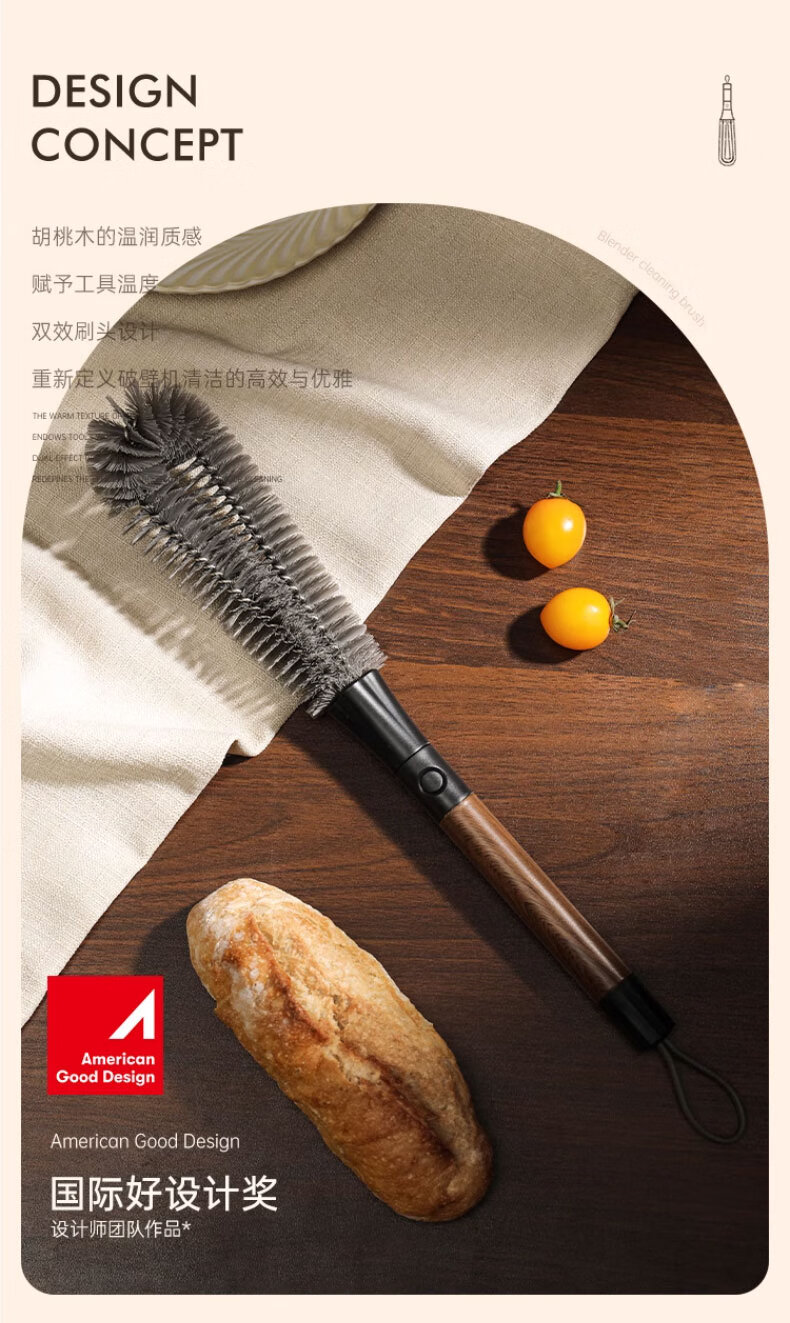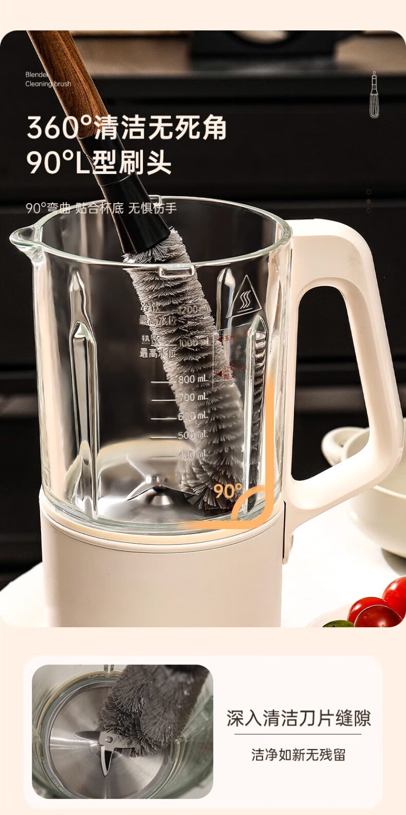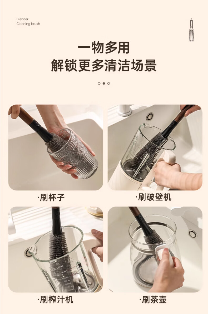 不锈钢杯刷二合一清洁长柄刷破壁机清洗神器多功能洗杯子专用刷子 胡桃木纹【1个装】