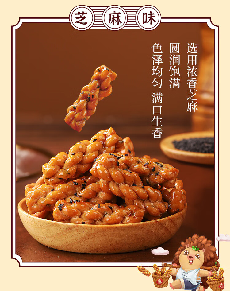 刺猬阿甘小麻花中式糕点宿舍追剧解馋休闲办公室独立包装一整箱约100根 小麻花 360g*1箱 约100根