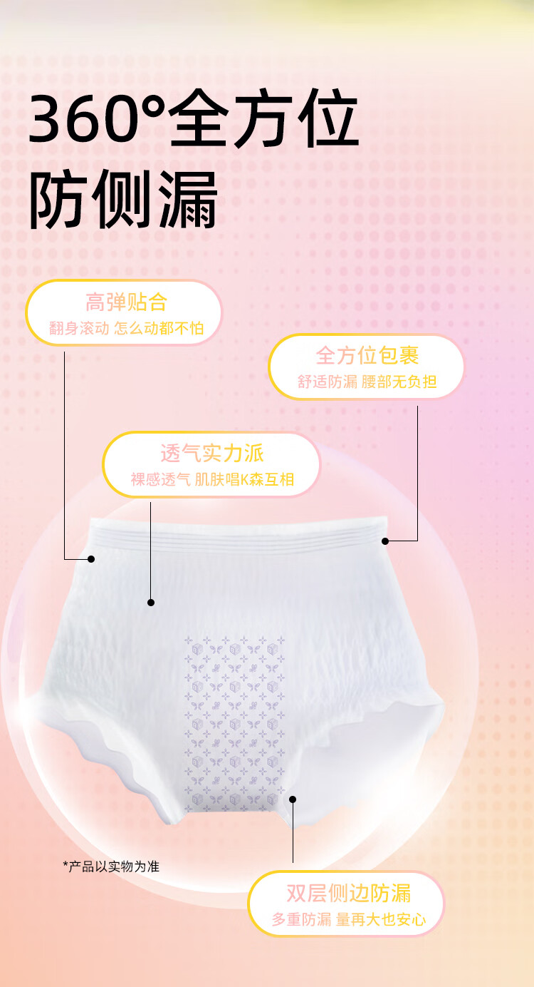 ABC液体卫生巾益生菌安心裤超薄一次性内裤夜安裤型安睡裤姨妈巾 F码-均码 16条 70-160斤