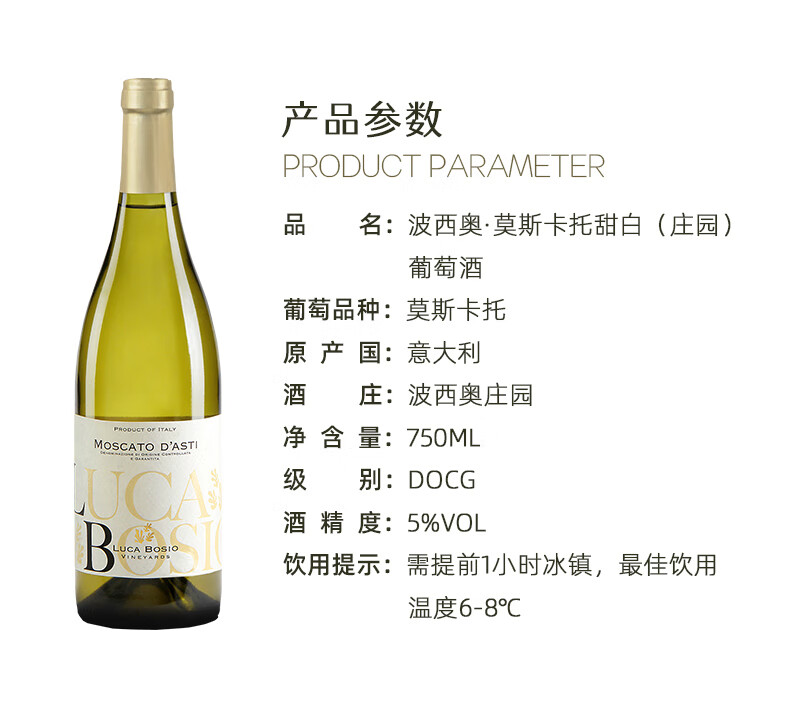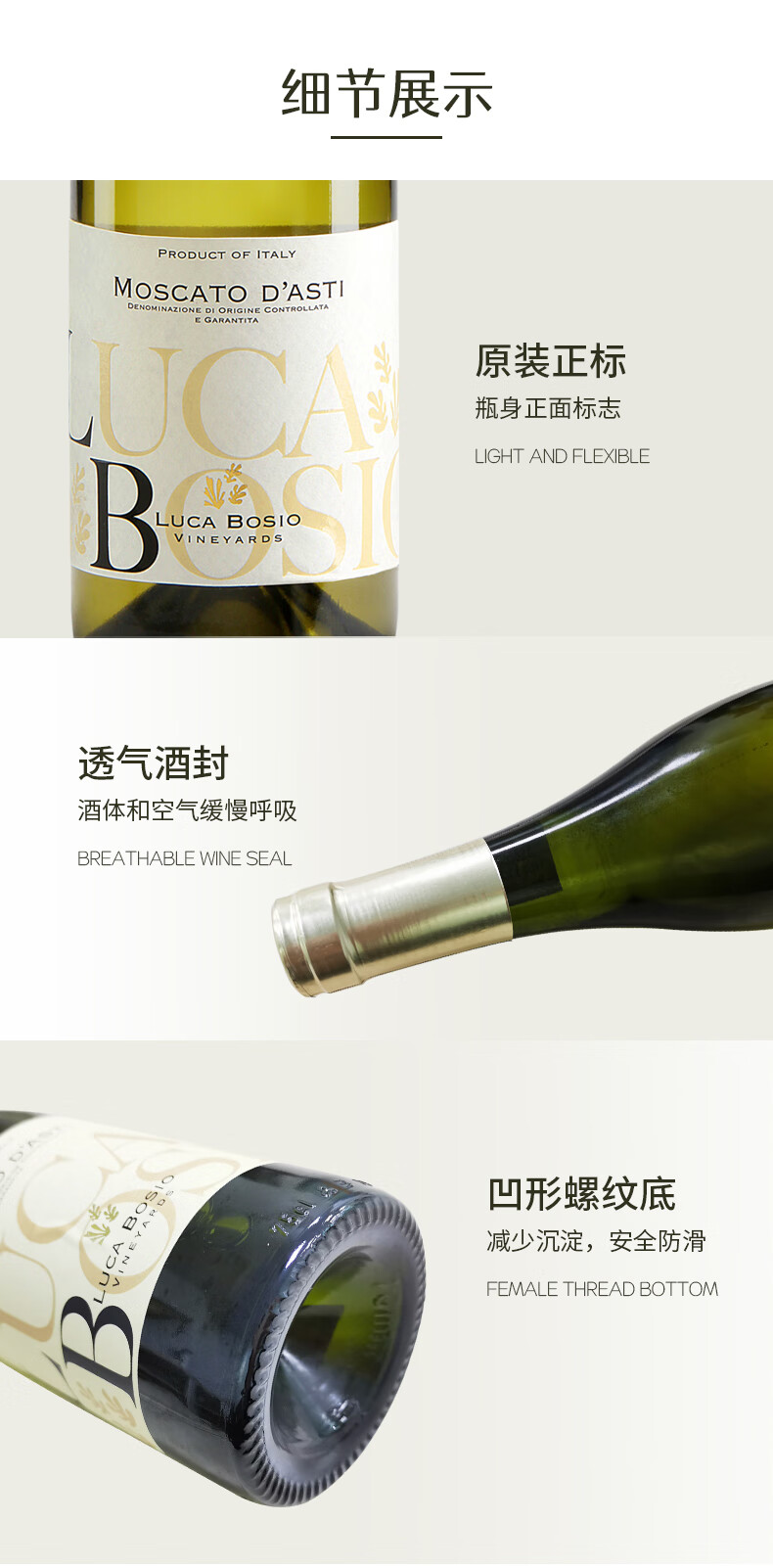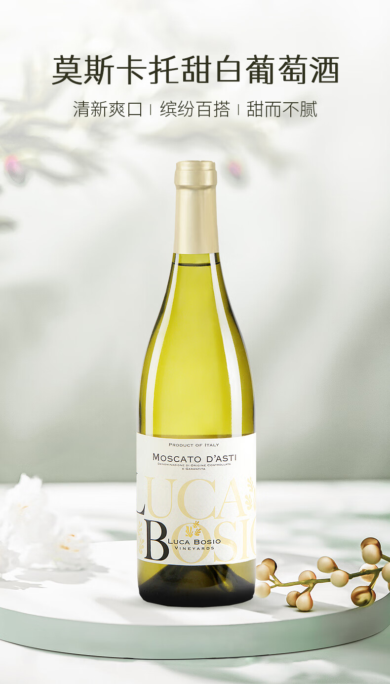 LUCA BOSIO VINEYARDS意大利原瓶进口莫斯卡托阿斯蒂甜白葡萄酒750ml 新老随机