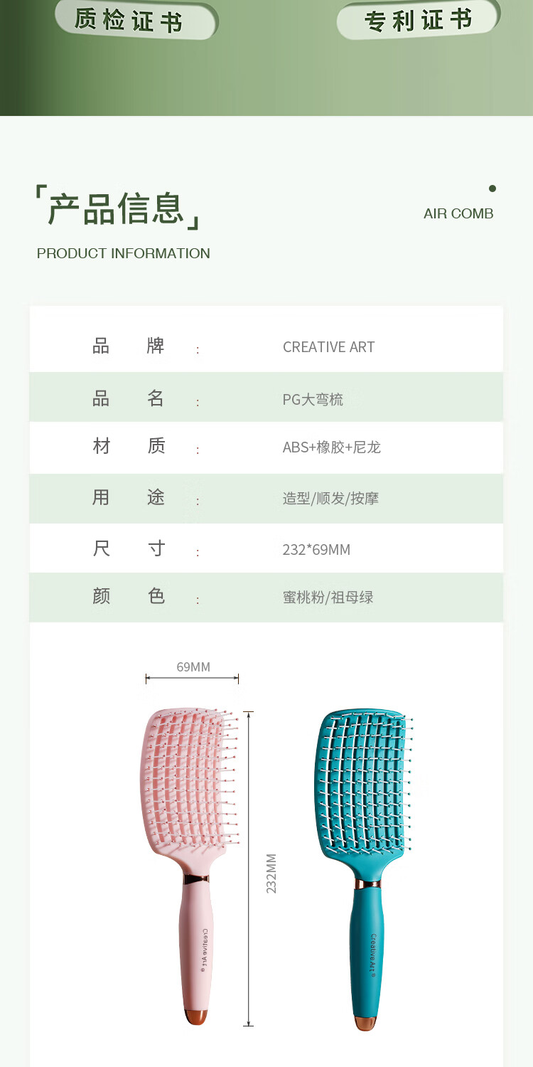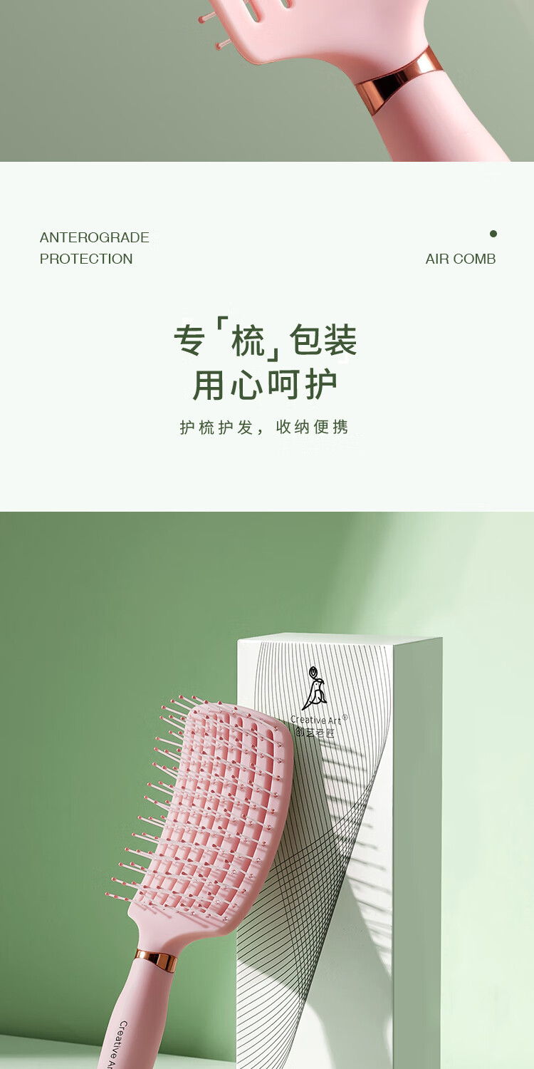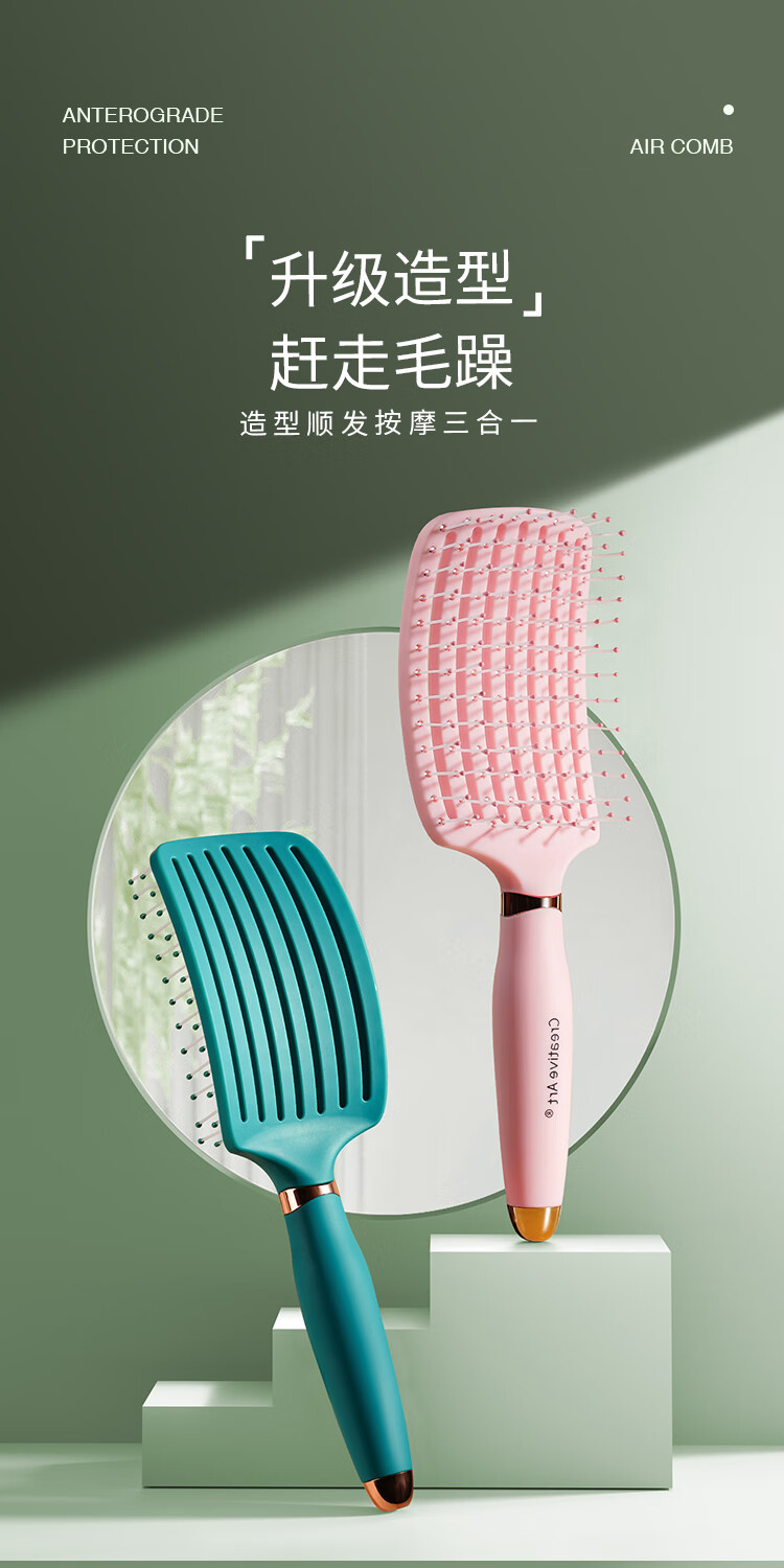 Creative art梳子蓬松神器排骨梳高颅顶蓬松梳子造型按摩卷发直发美发梳男女士