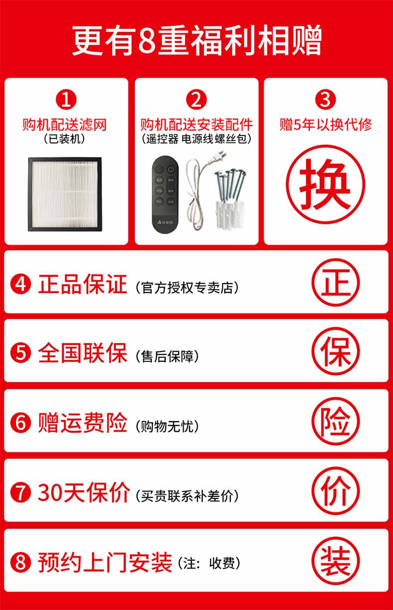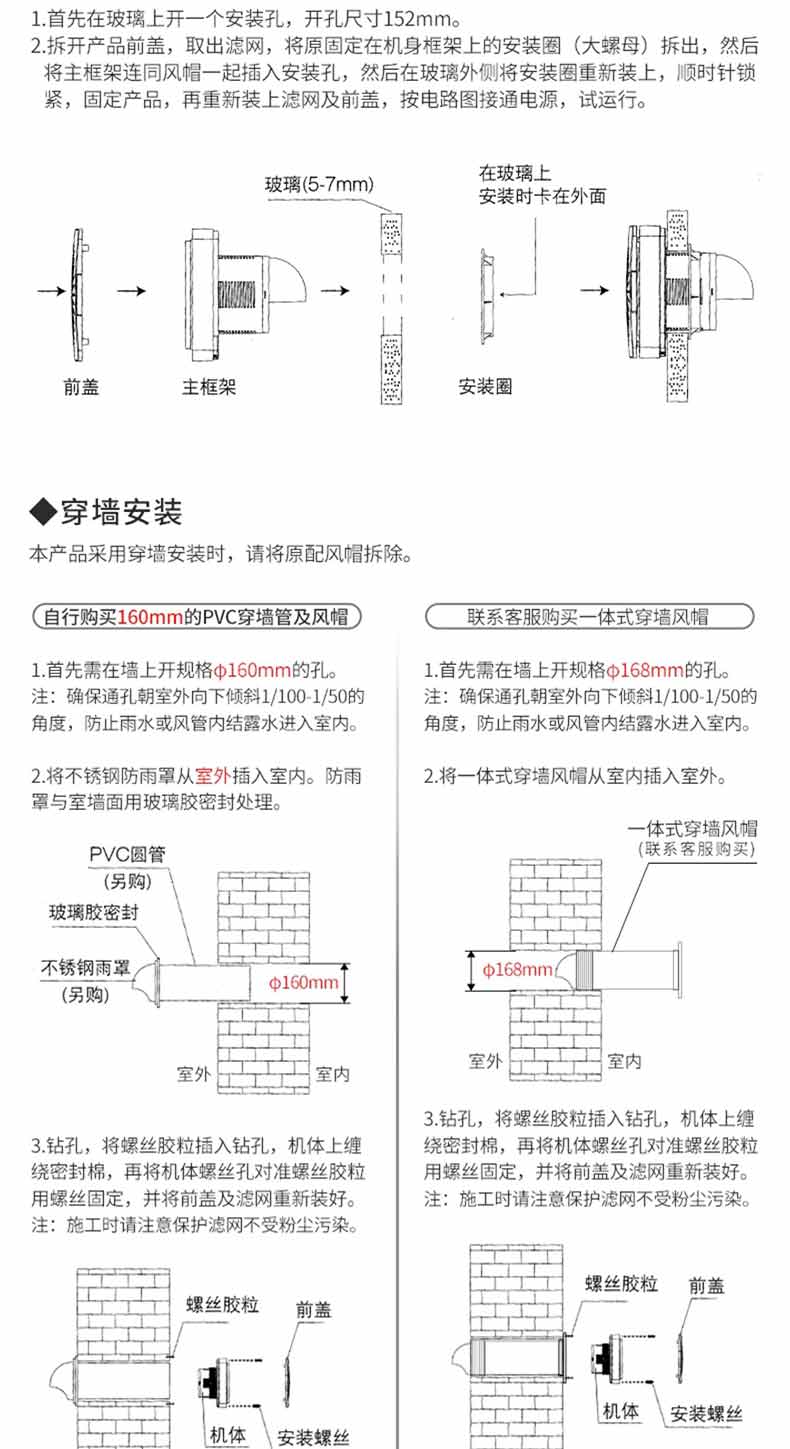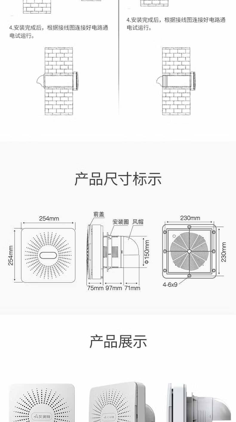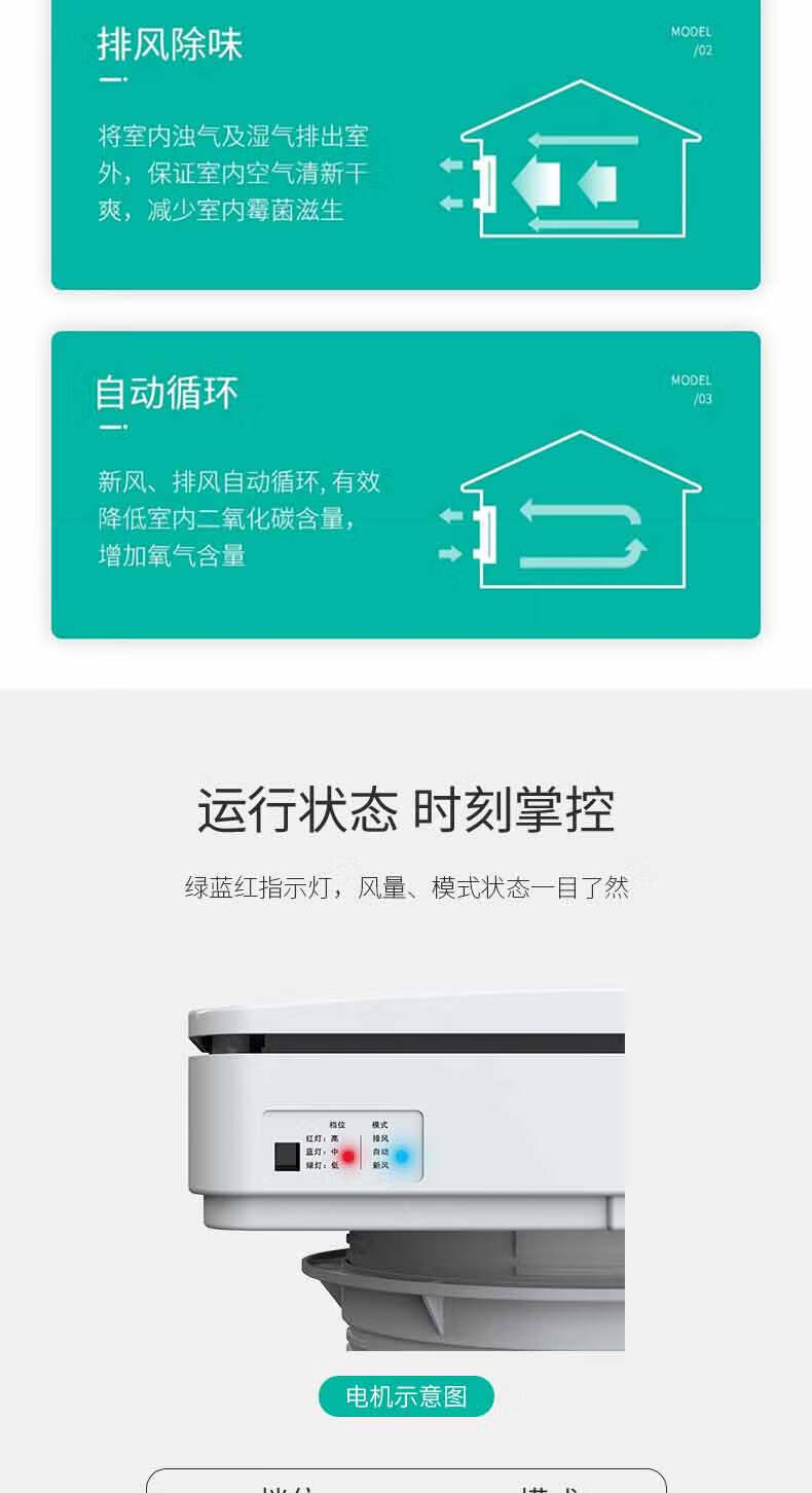 艾美特新风系统家用壁挂式墙壁窗式静音换气机室内双向空气净化器新风机 SF60HR-01开孔尺寸152mm