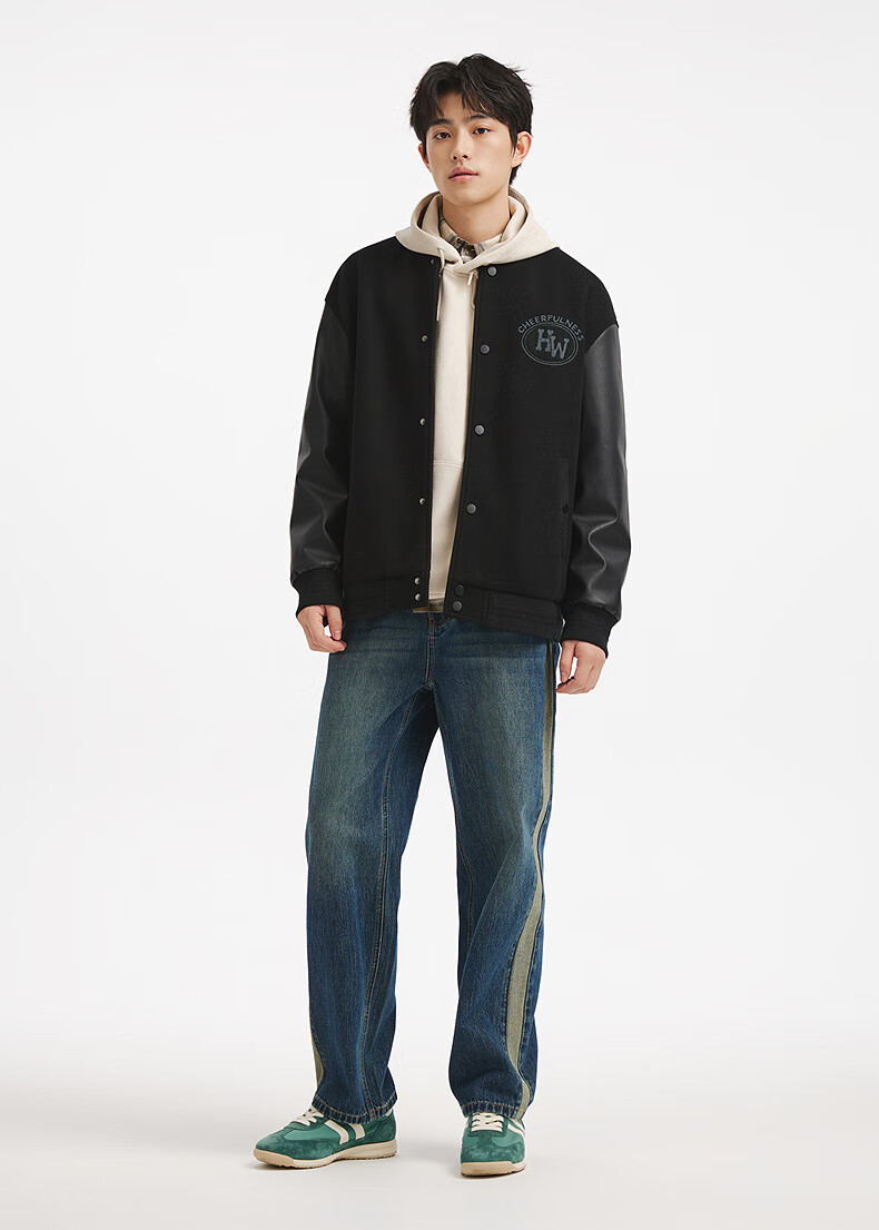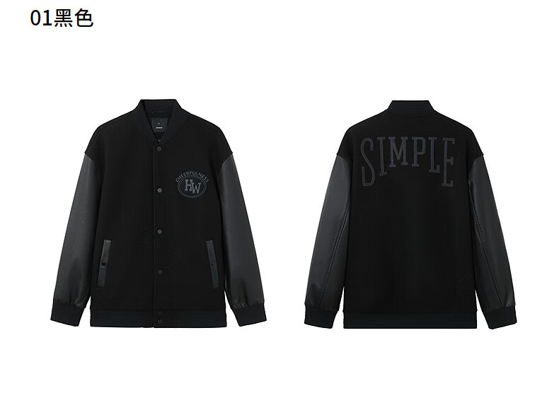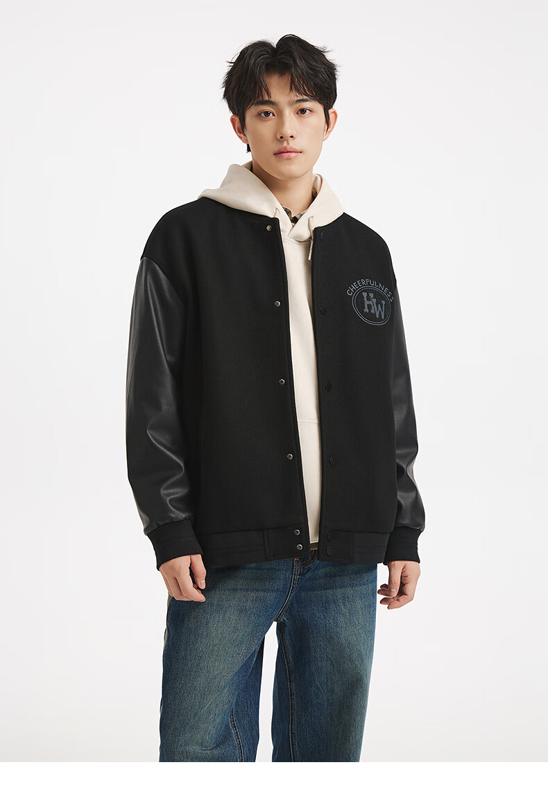 热风(Hotwind)男士夹克外套上衣2025年冬季新款经典棒球夹克情侣款宽松外套 01黑色 S