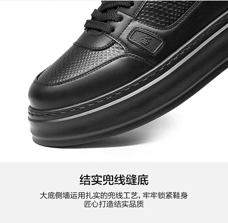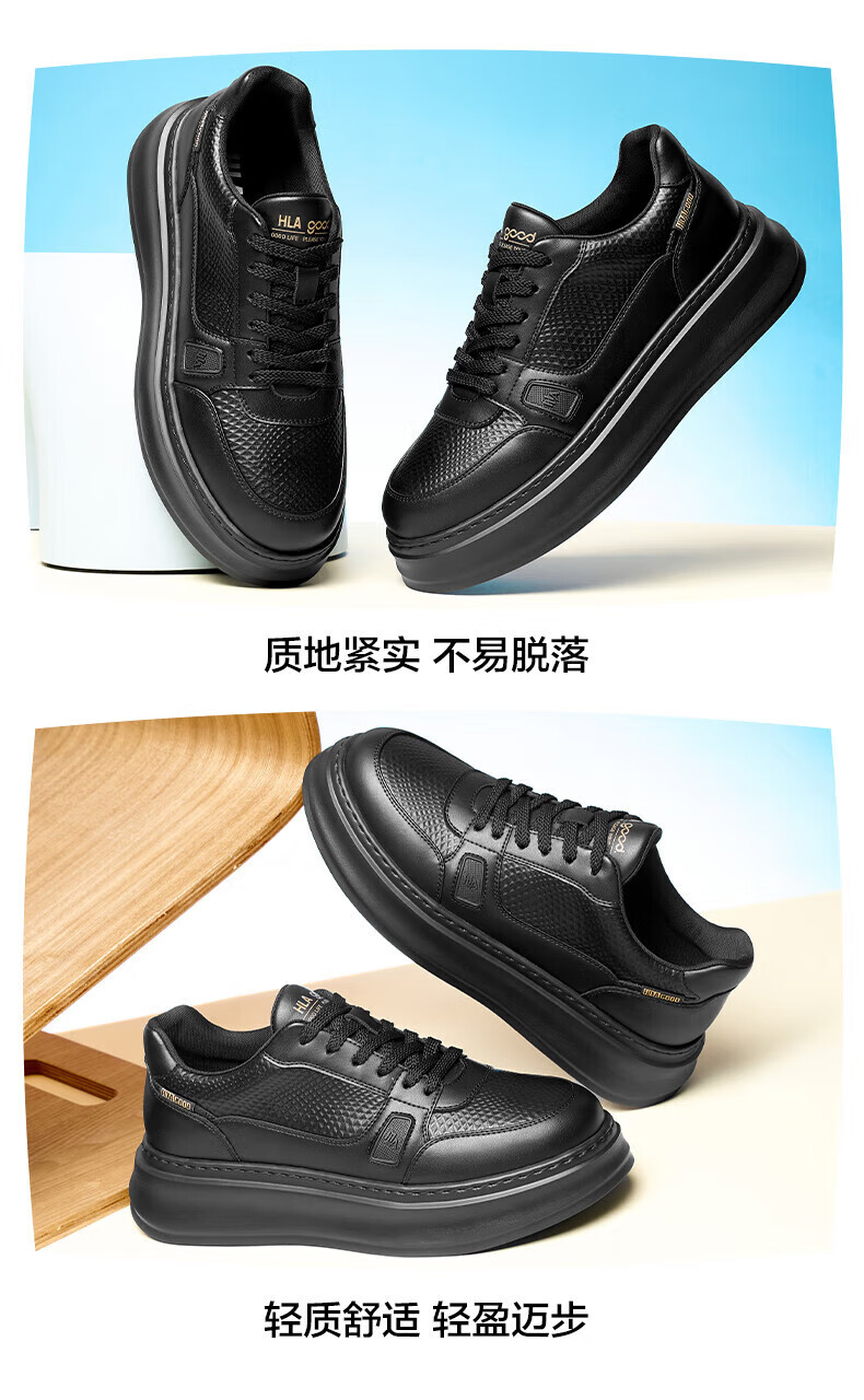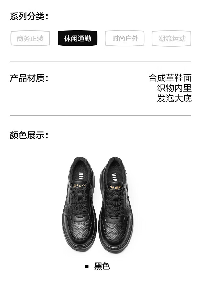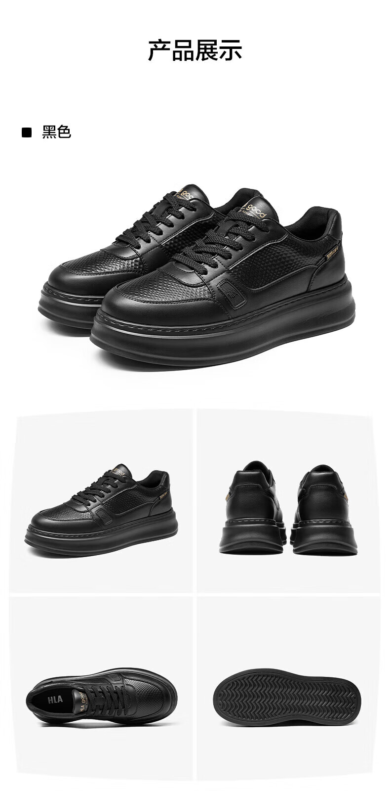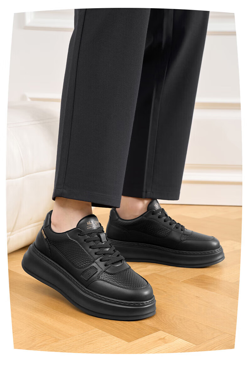 海澜之家(HLA)男鞋2025秋季新款全黑厚底板鞋男舒适柔软增高通勤休闲鞋 黑色 38