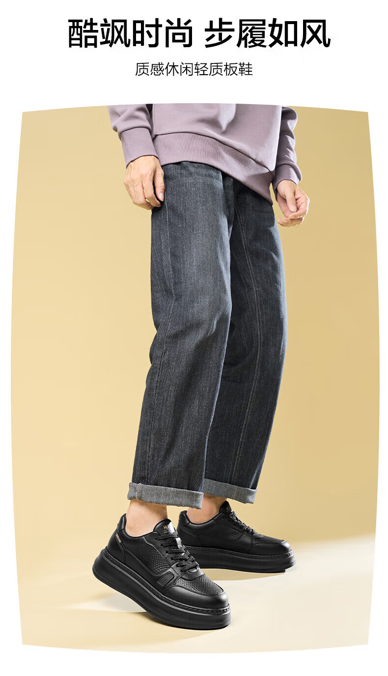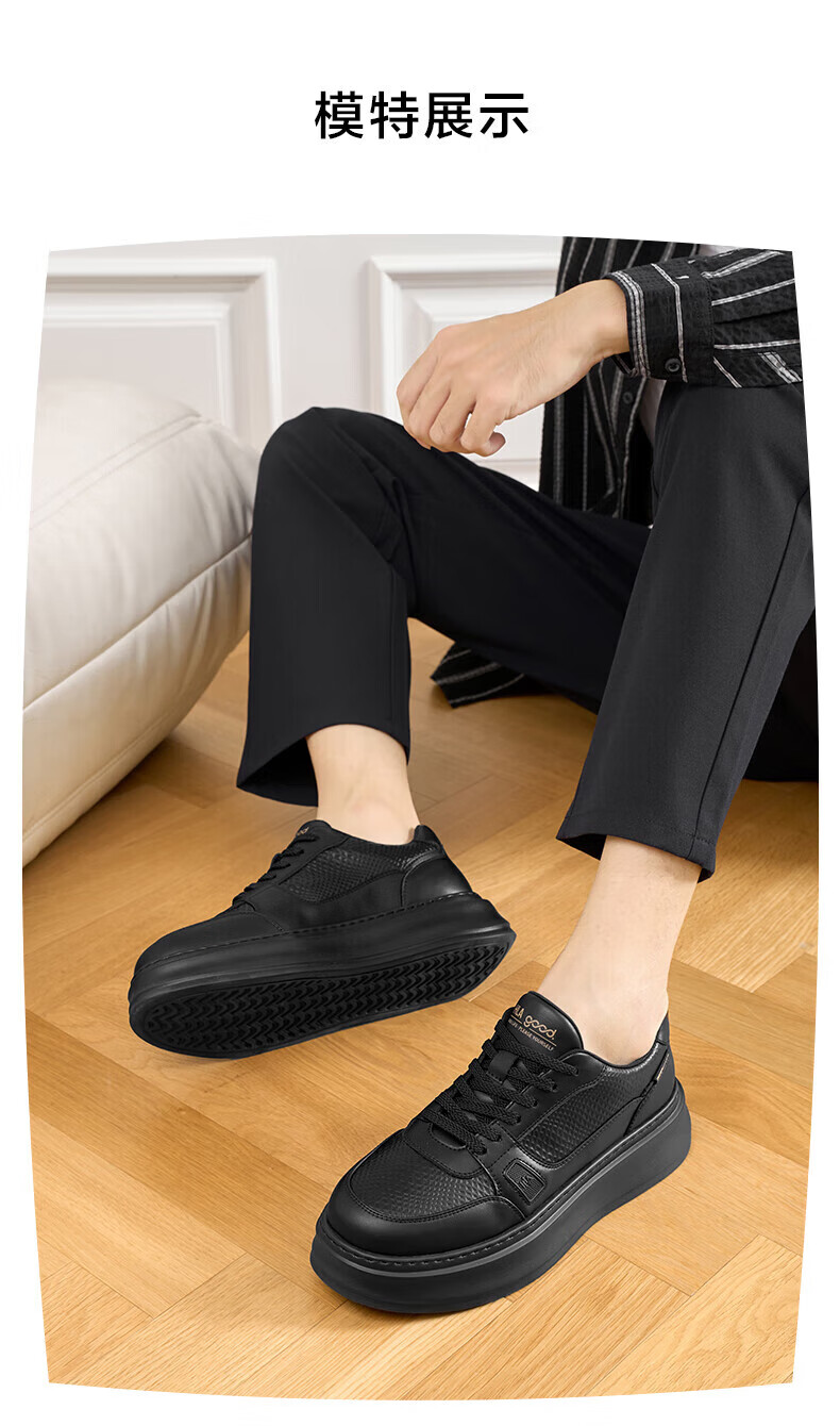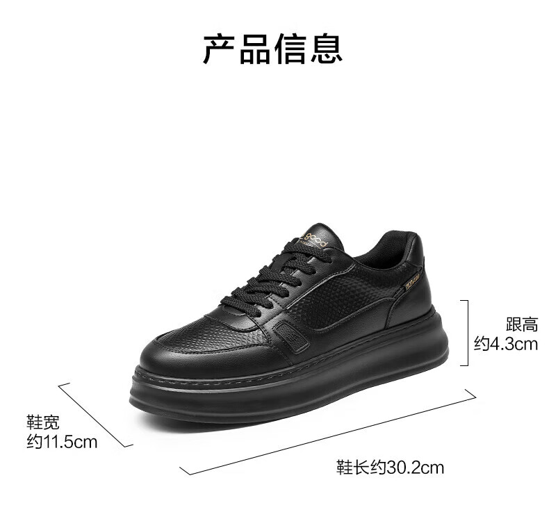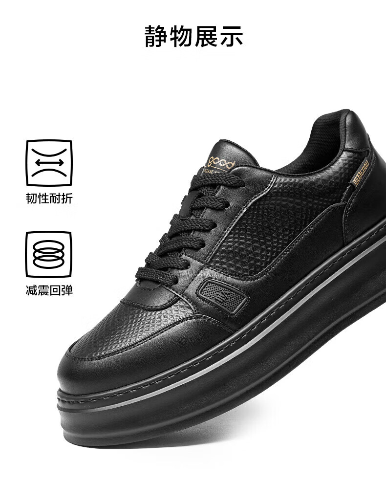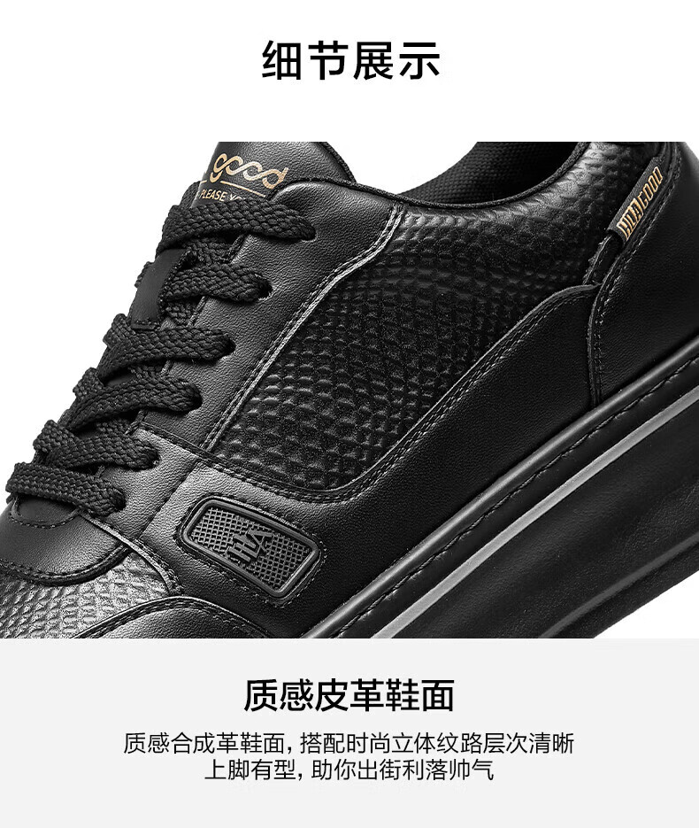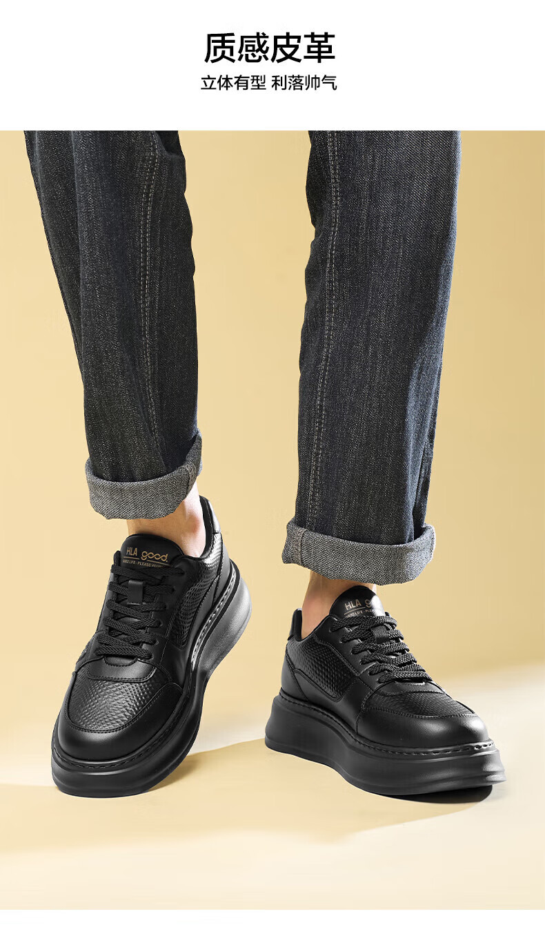 海澜之家(HLA)男鞋2025秋季新款全黑厚底板鞋男舒适柔软增高通勤休闲鞋 黑色 38