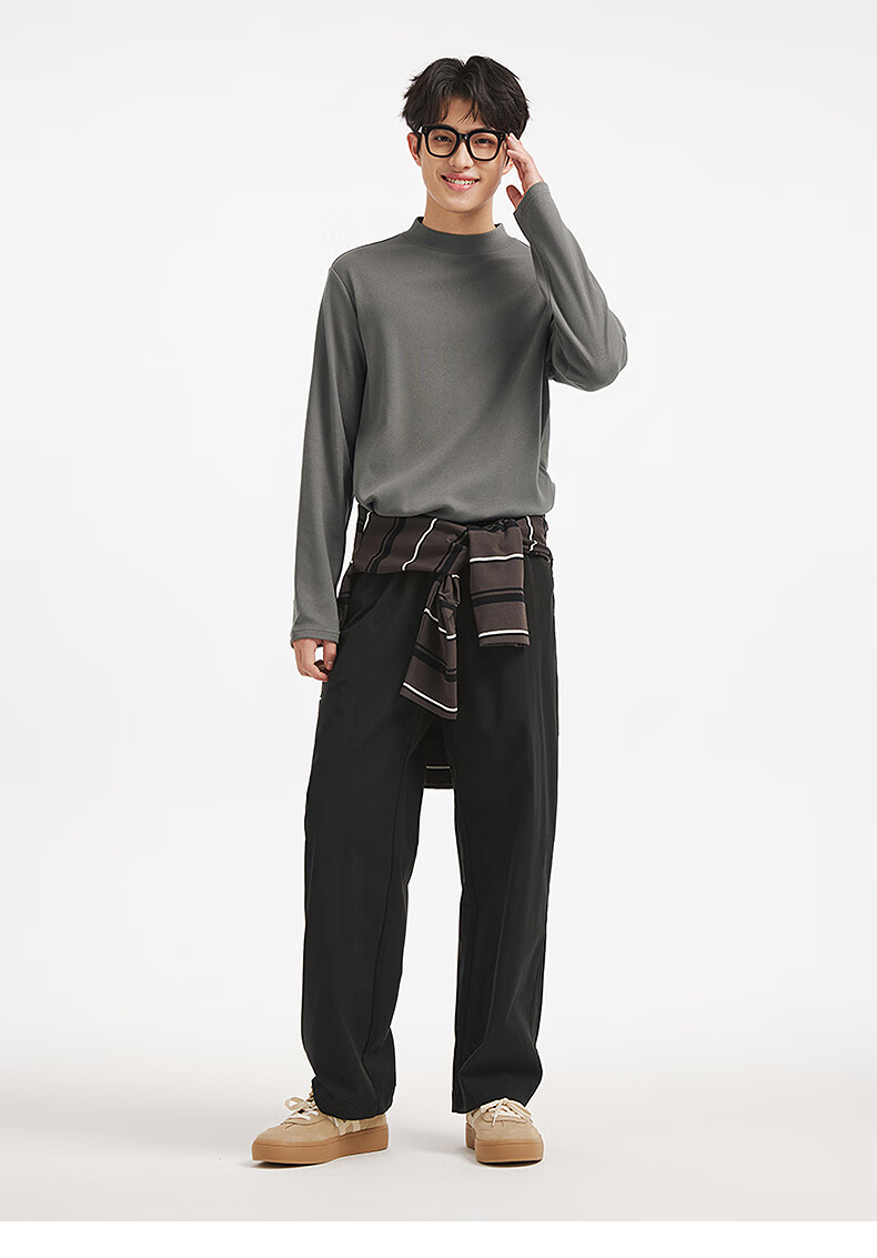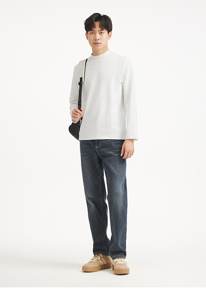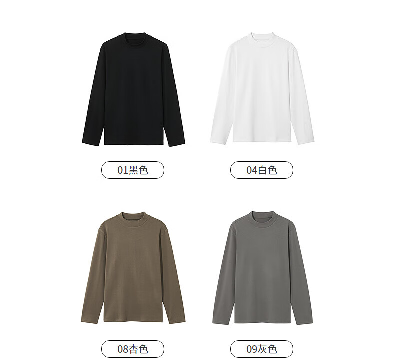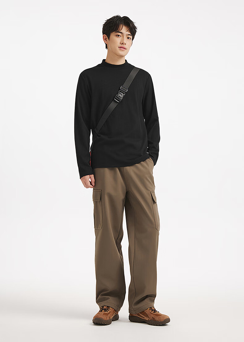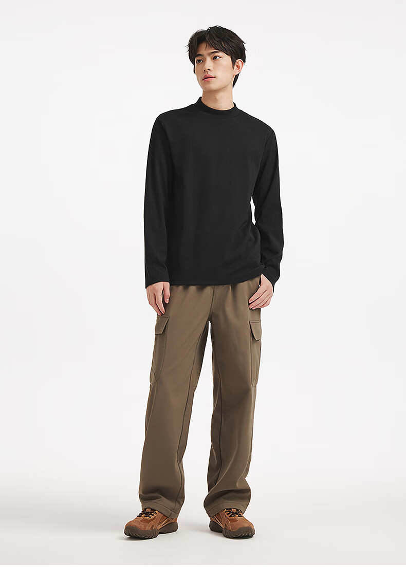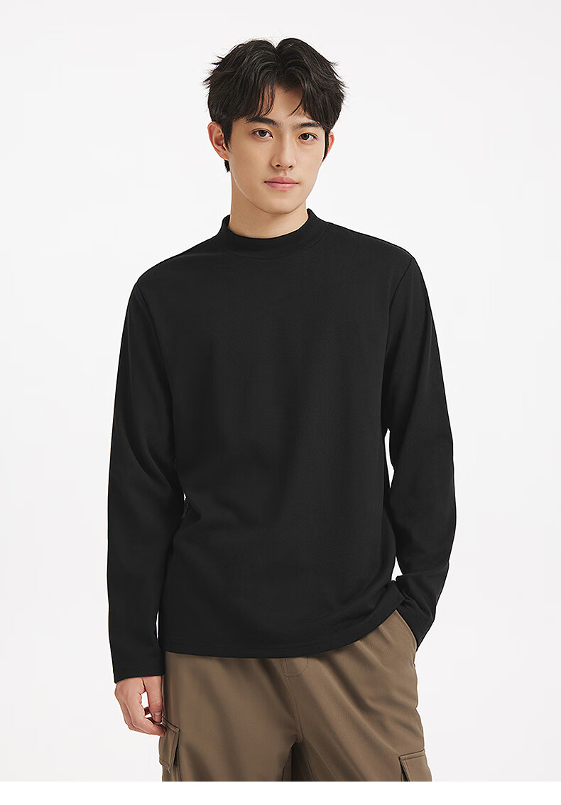 热风(Hotwind)【商场同款】男士打底衫上衣2025年冬季新款半高领贴身打底T恤 01黑色 S