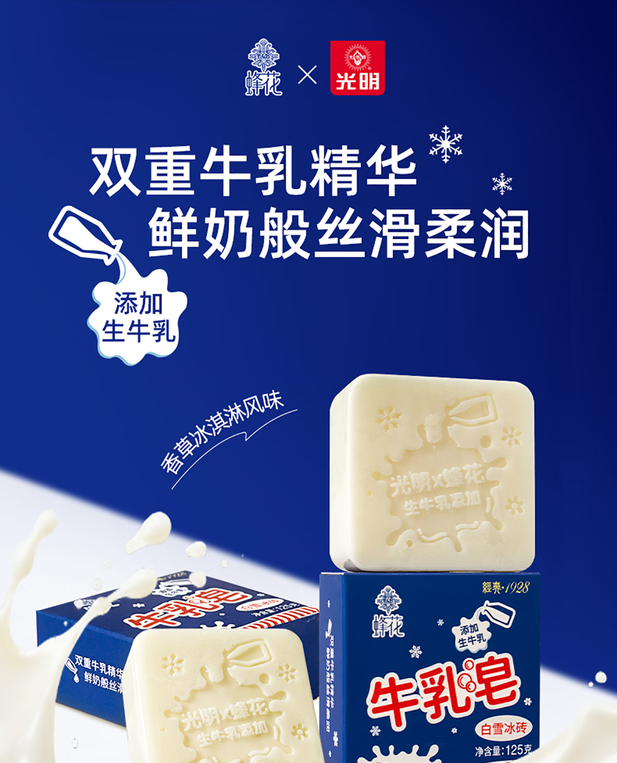 蜂花上海蜂花X光明白雪冰砖牛乳皂香皂洗手洗脸全身沐浴洁面皂洗手皂 牛乳皂 125g 1块