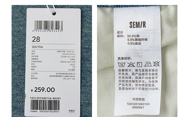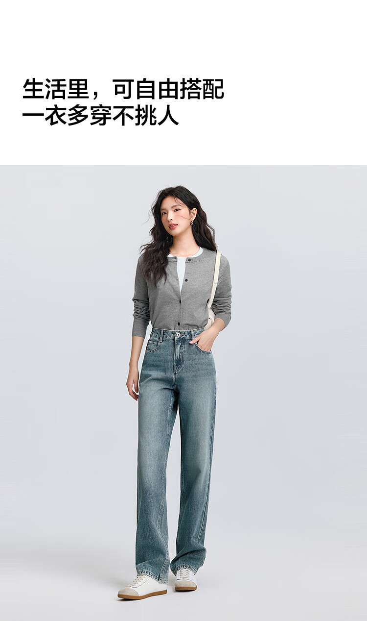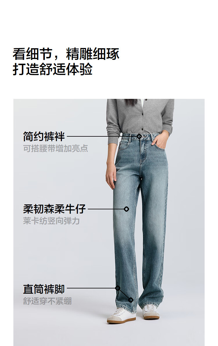 森马(Semir)森柔牛仔|商场同款牛仔裤女长裤2025春季直筒裤潮流103125124013A