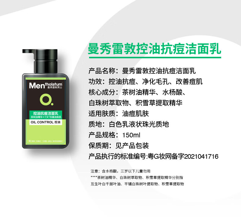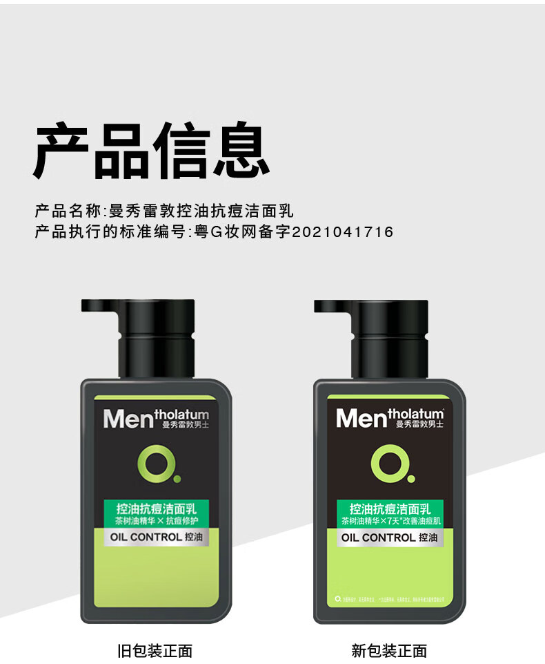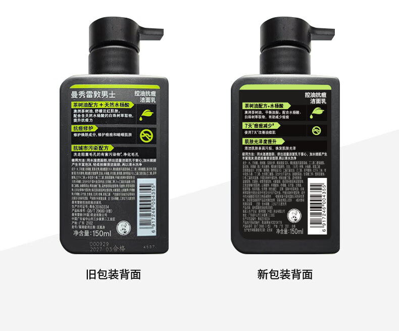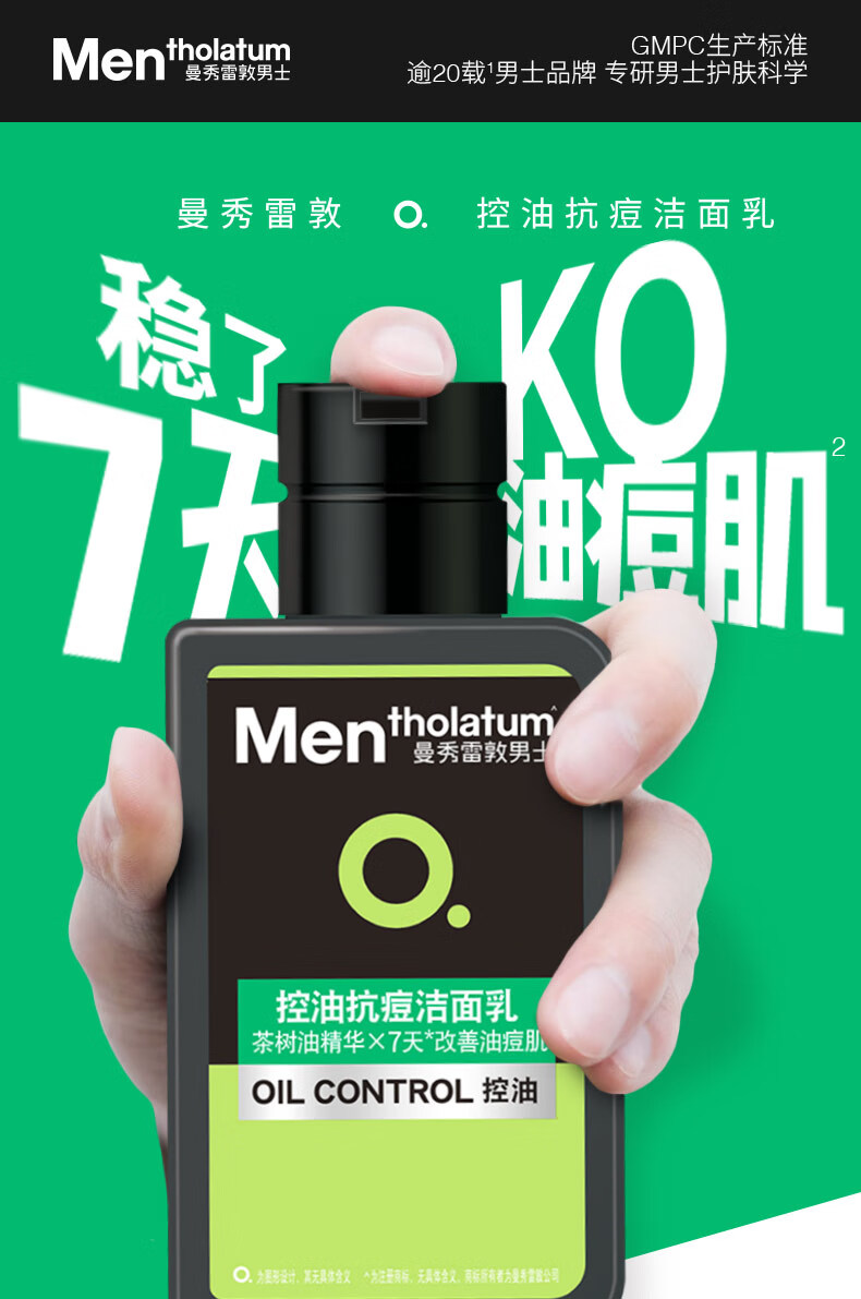 曼秀雷敦男士控油洗面奶150ml去油去黑头控油抗痘洁面礼物男