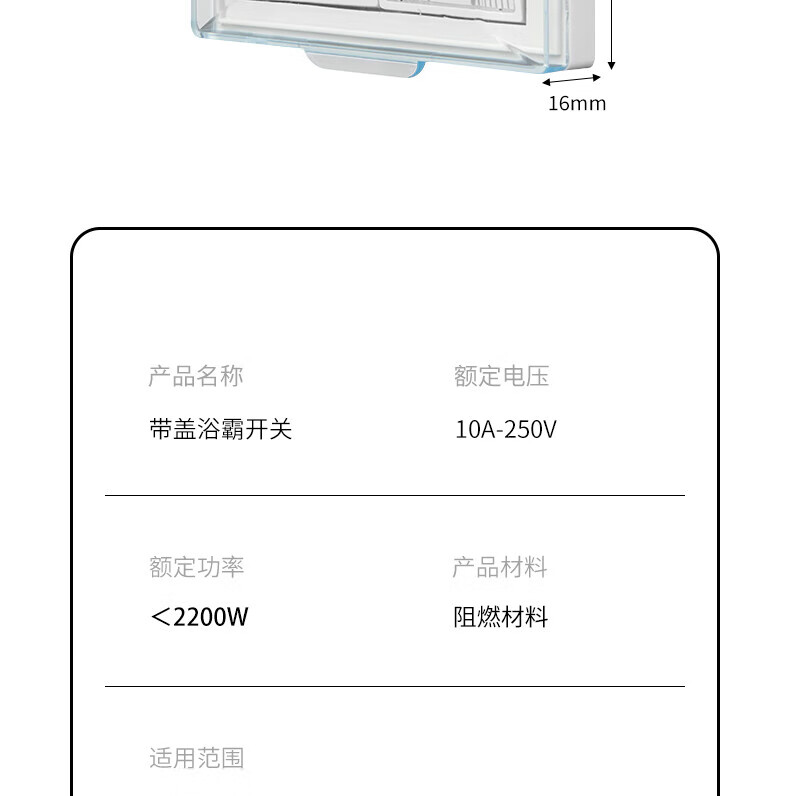 FDD国际电工家用86型四开通用4开四合一带盖卫生间浴室灯暖浴霸开关防水防尘 家用浴霸开关【三开】 开关