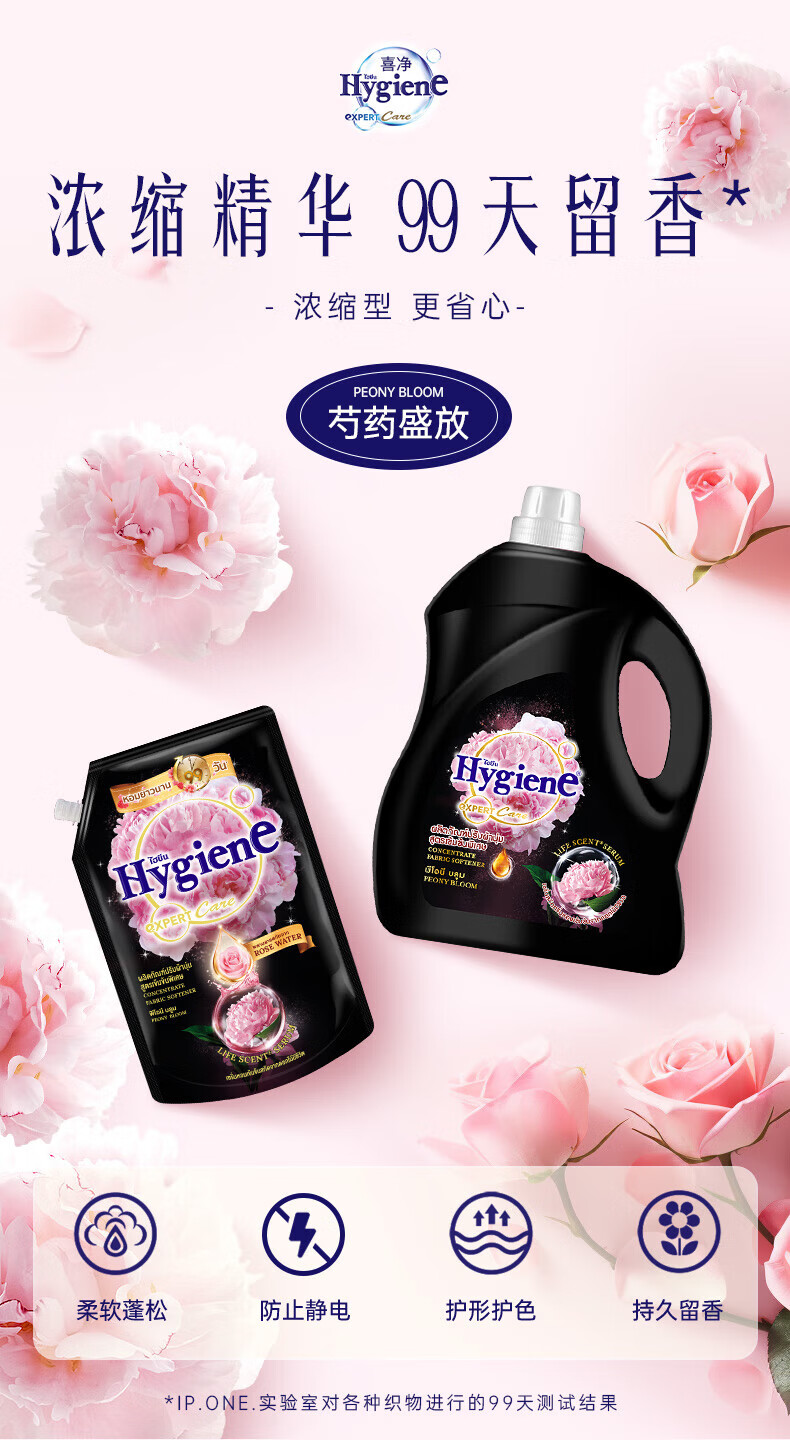 喜净泰国原装进口柔顺剂芍药盛放480ml 浓缩持久浸泡衣服留香去静电 粉红甜香1.8L