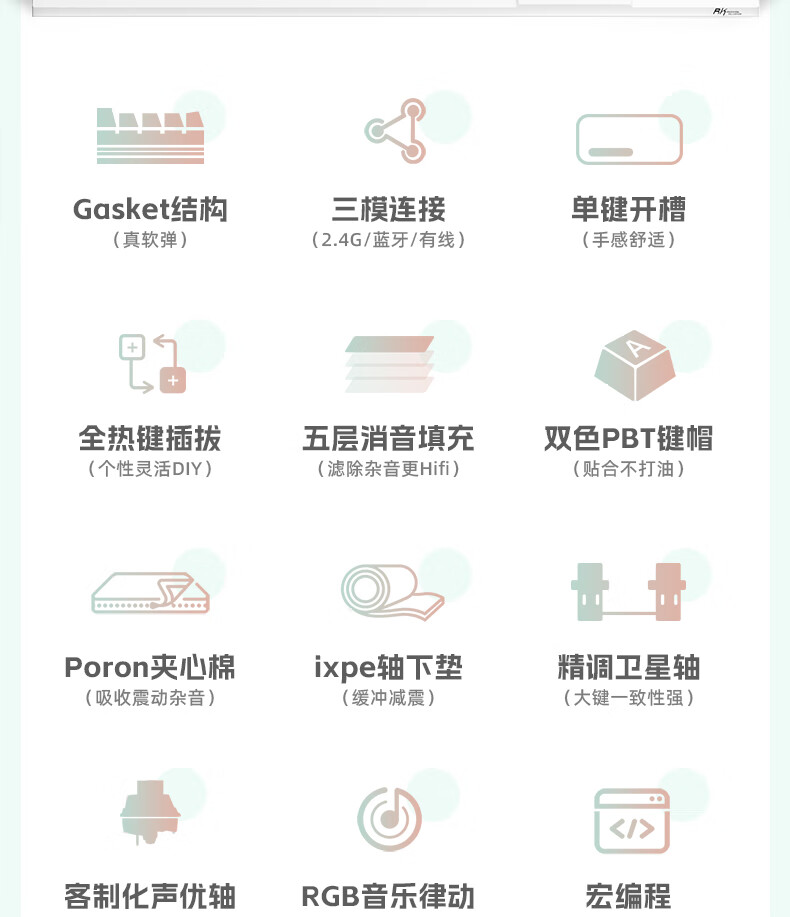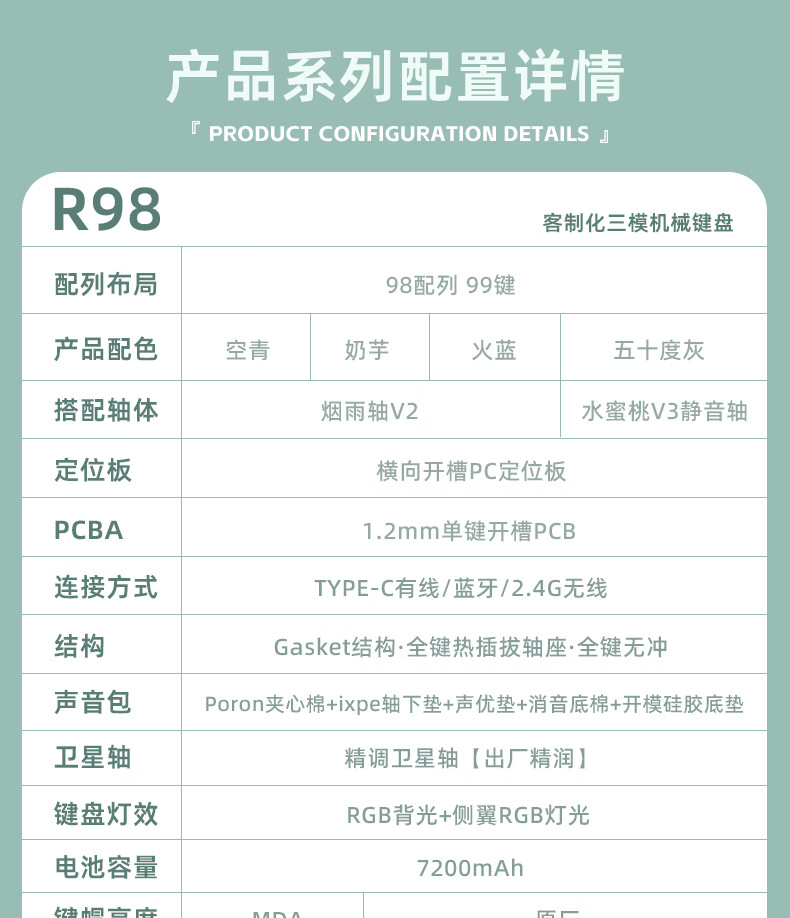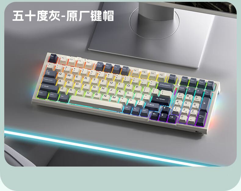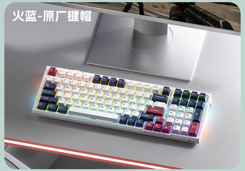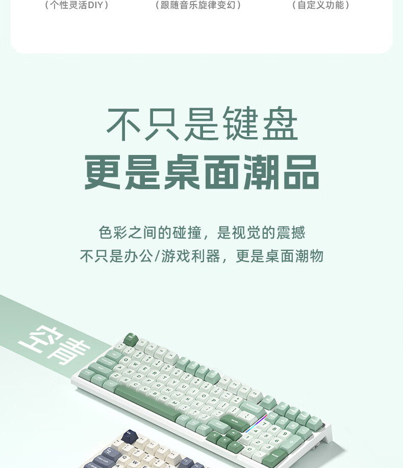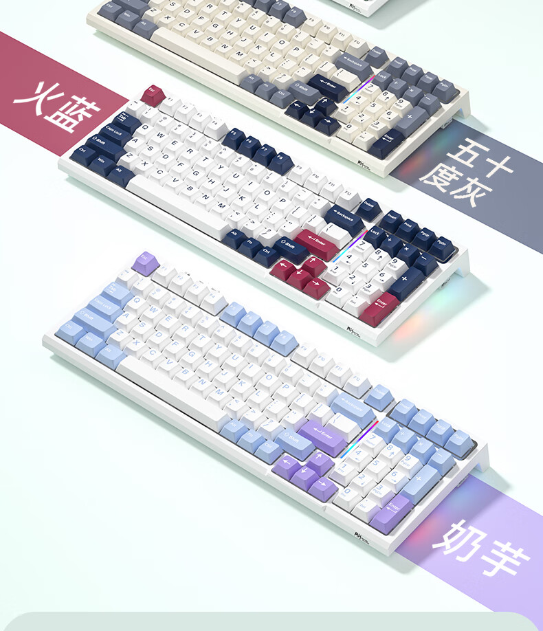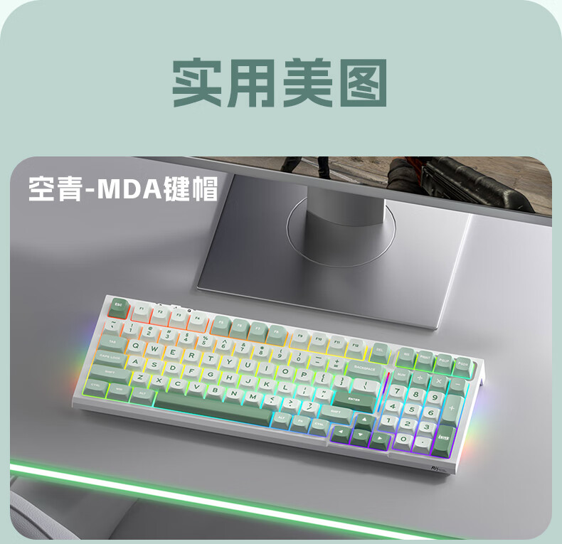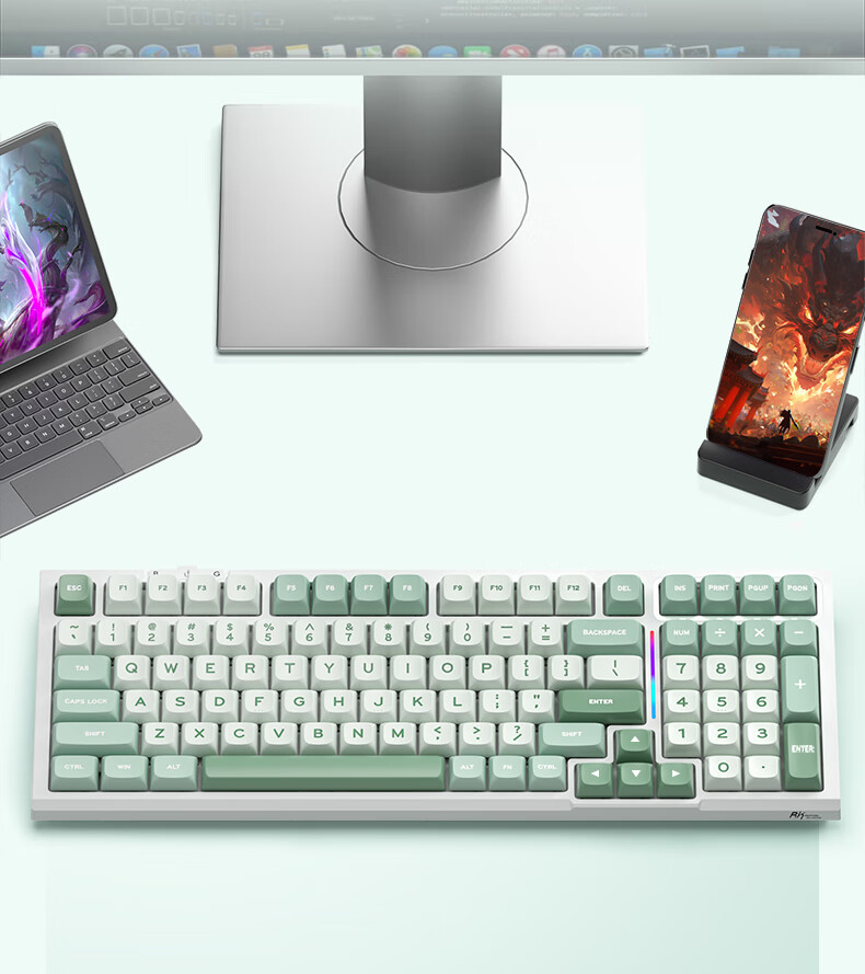 RK R98静音三模机械键盘无线蓝牙有线电竞游戏电脑办公客制化热插拔98键女生打字烟雨轴V2 空青-烟雨轴V2-三模