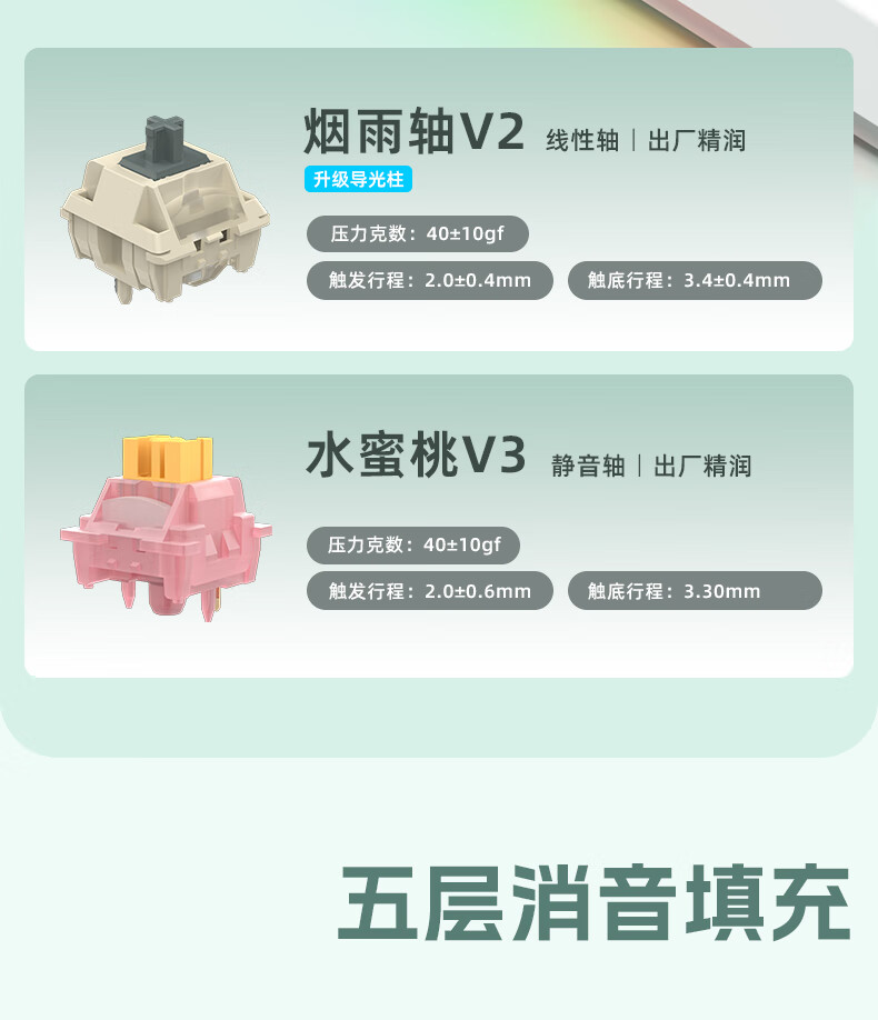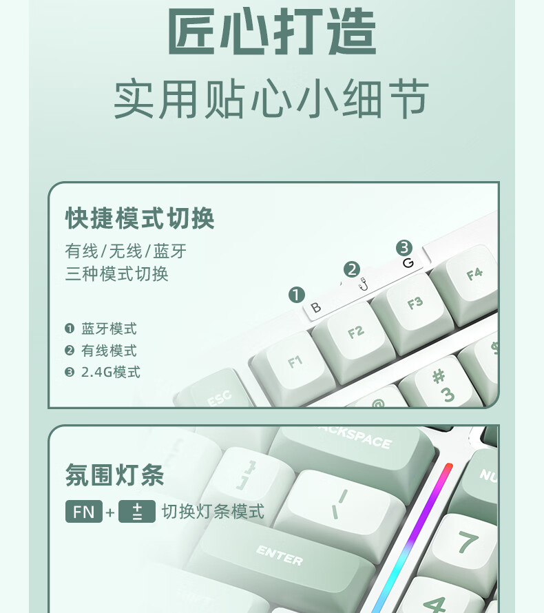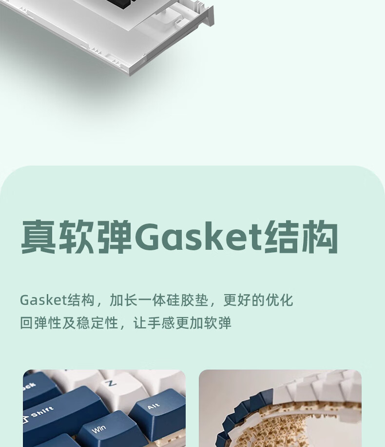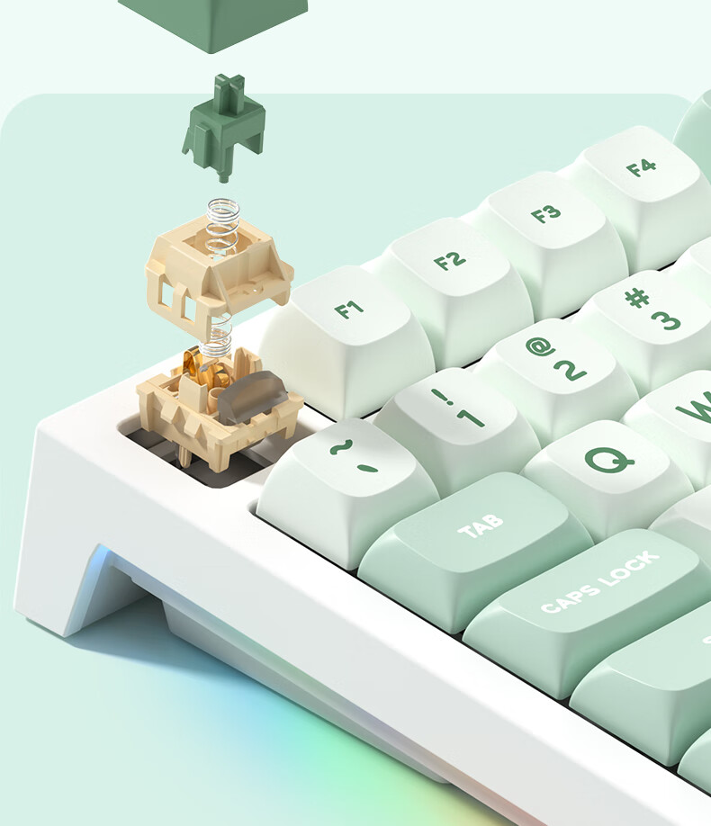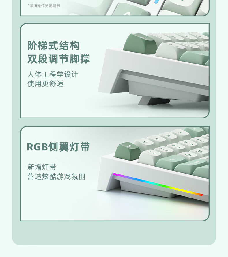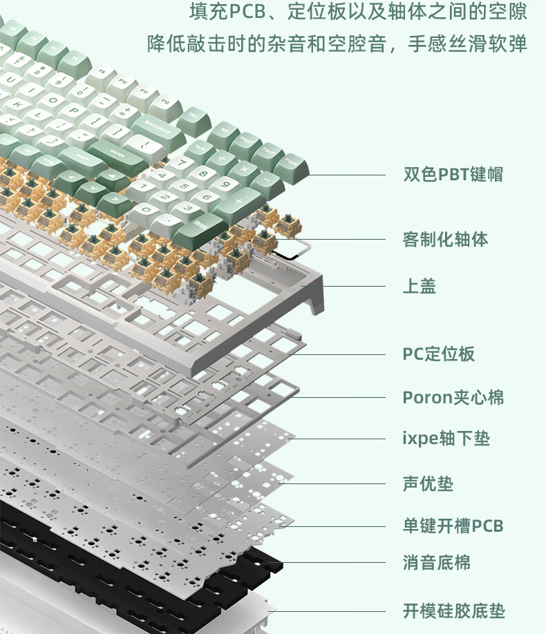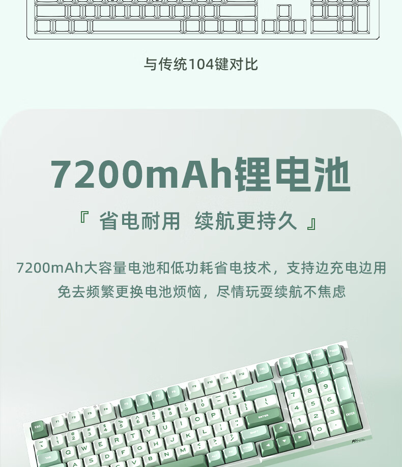 RK R98静音三模机械键盘无线蓝牙有线电竞游戏电脑办公客制化热插拔98键女生打字烟雨轴V2 空青-烟雨轴V2-三模