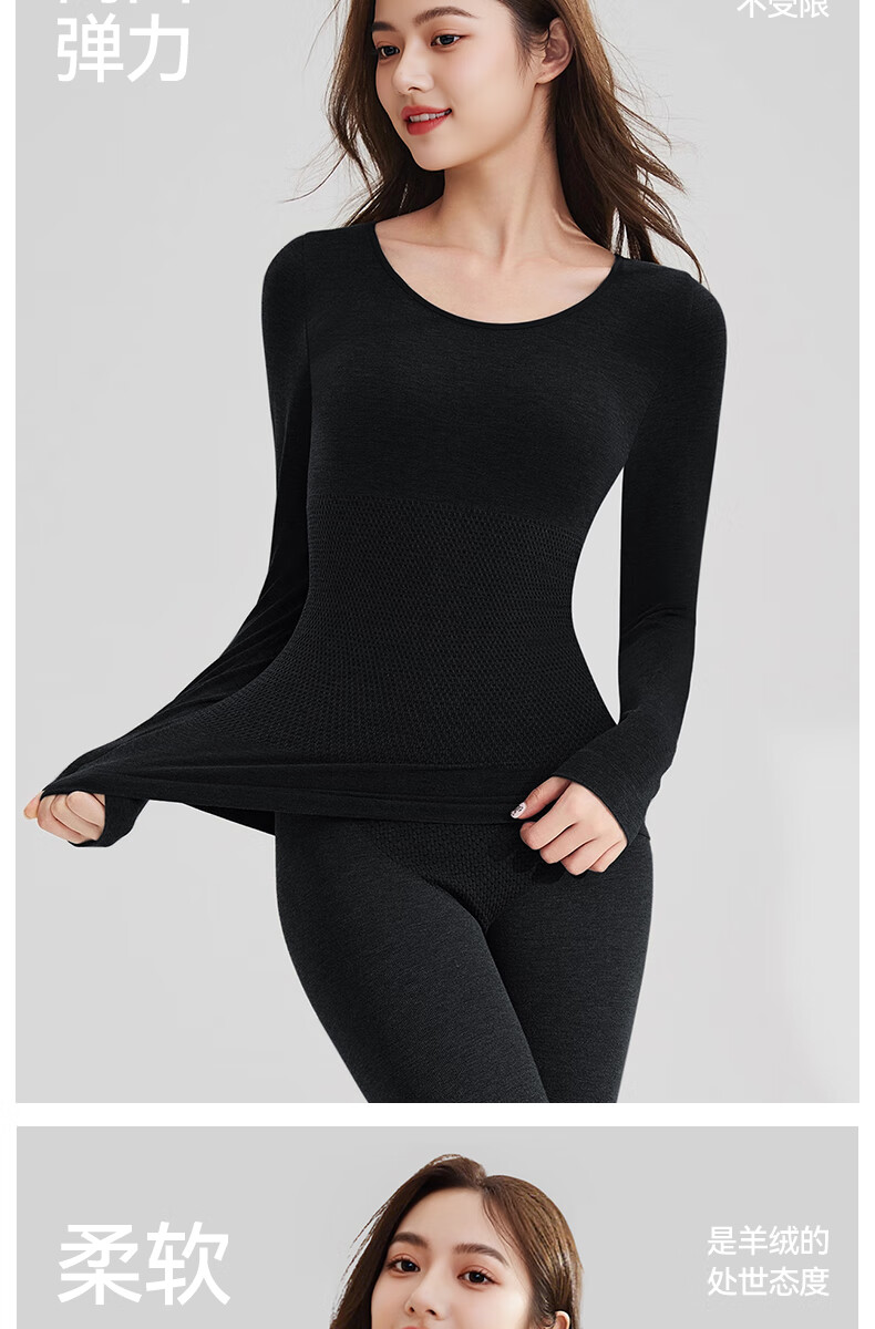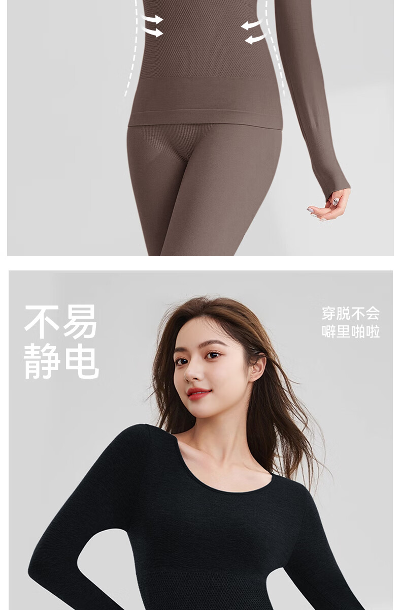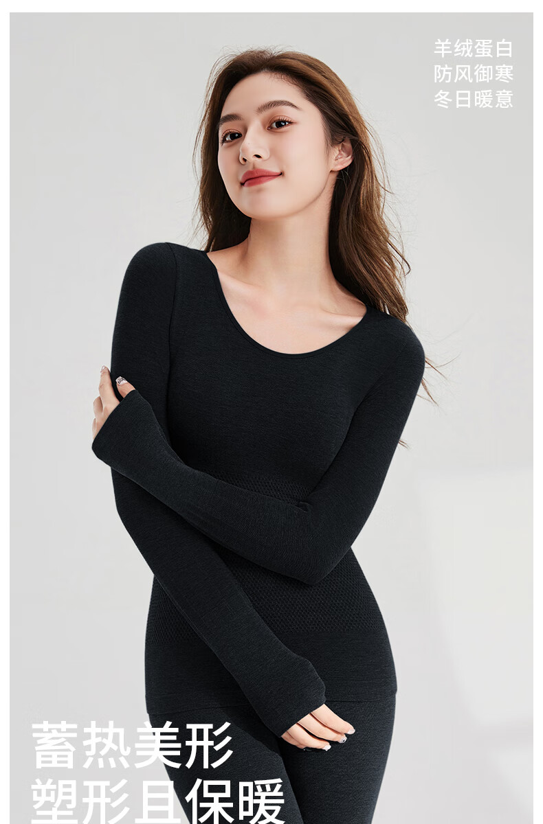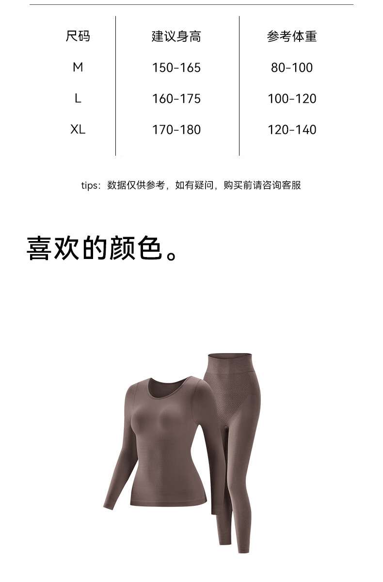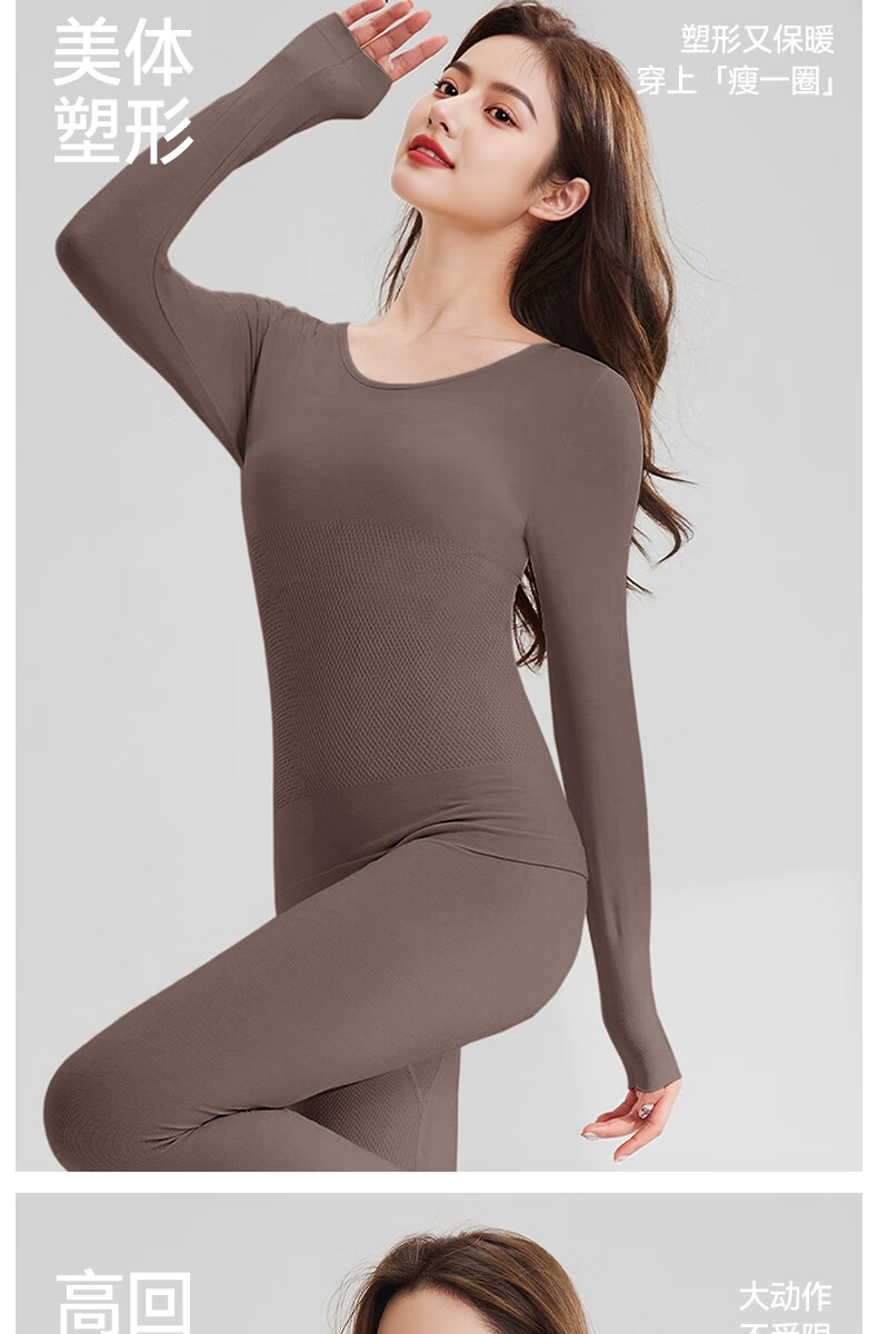 安之伴保暖内衣女2025新款秋冬季羊毛秋衣秋裤套装贴身塑形打底衫锁温 咖色-蓄热锁温抗静电 L