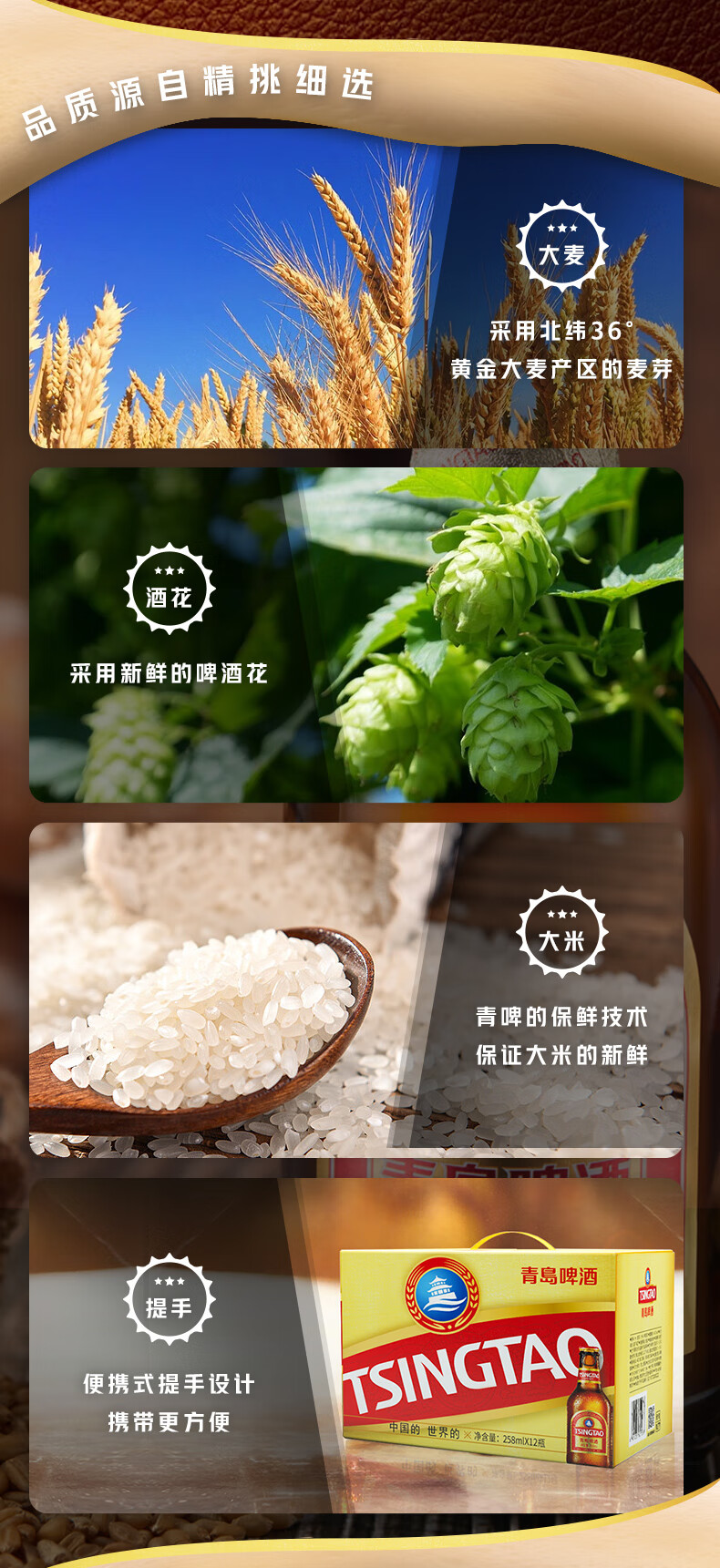 青岛啤酒(TsingTao)精酿小棕金 拉环瓶盖设计 258ml*12瓶 整箱装