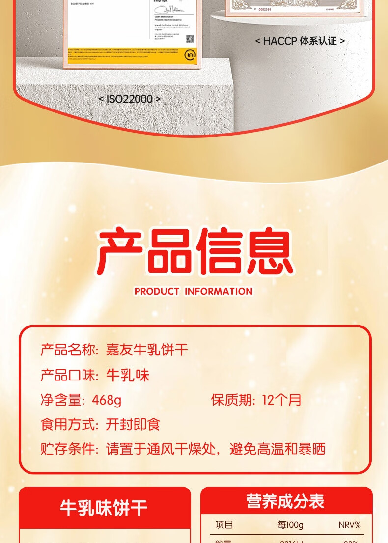 嘉友 牛乳味早餐饼干468g 约24小包代餐下午茶办公室休闲零食点心