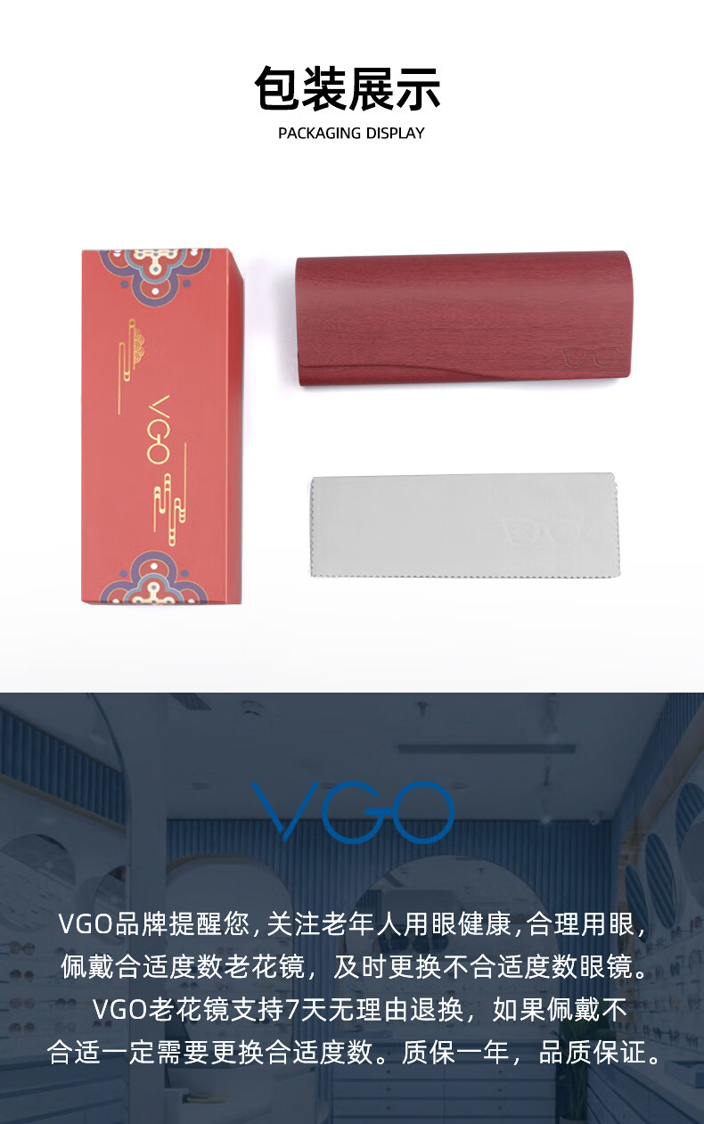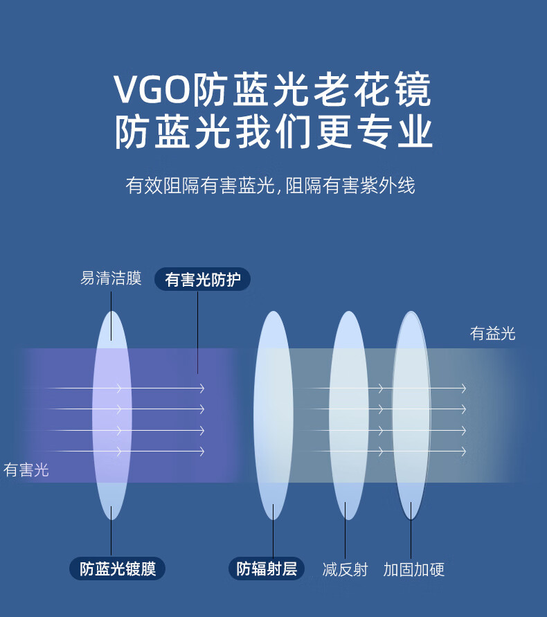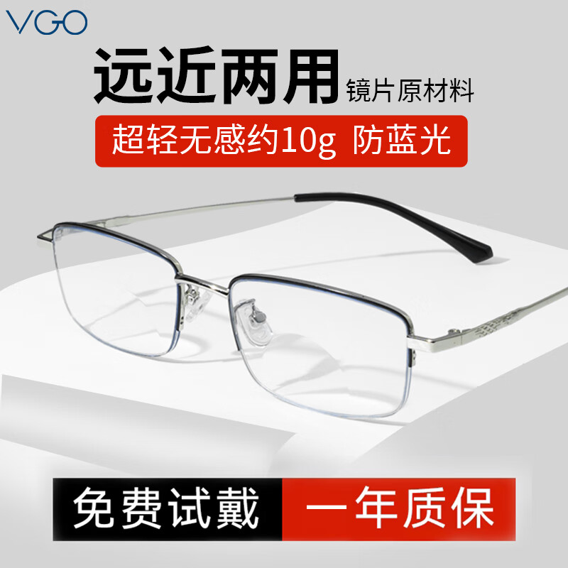 VGO老花镜男女通用时尚超轻高清防蓝光双光老年人眼镜9602开学
