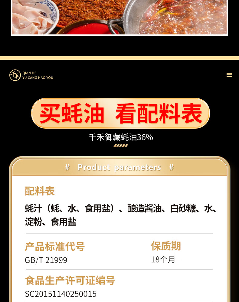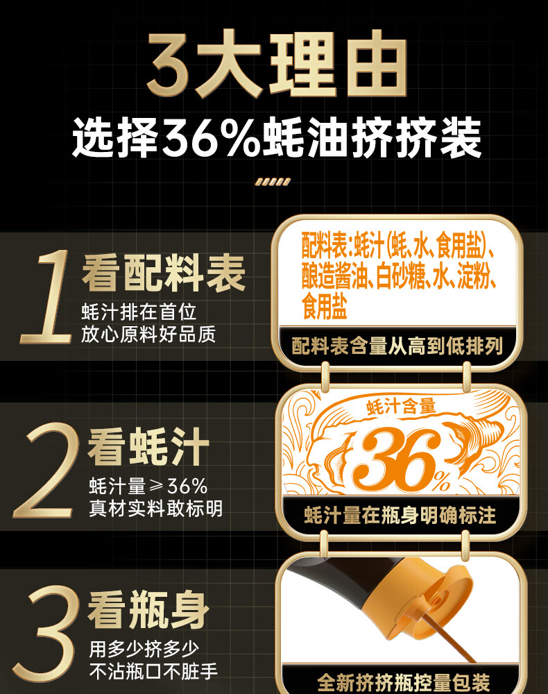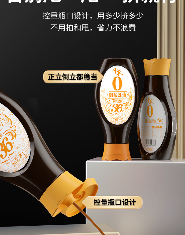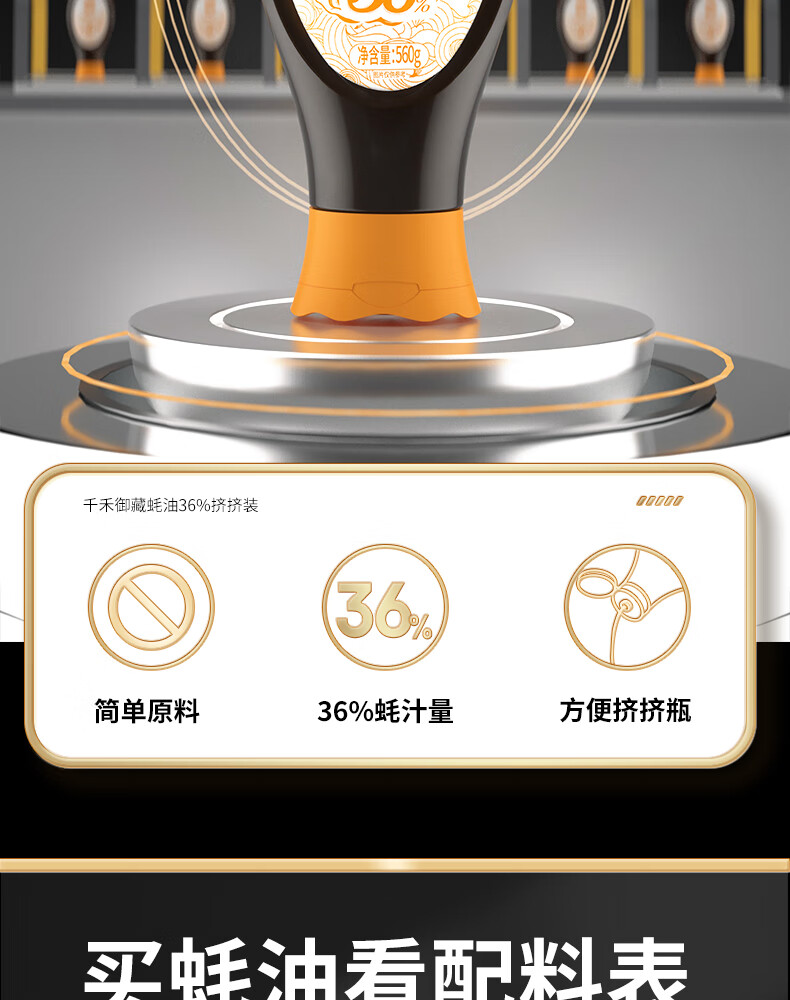 千禾 御藏蚝油36%0添加【蚝汁量≥36%】挤挤瓶装560g高蚝汁量品质提鲜
