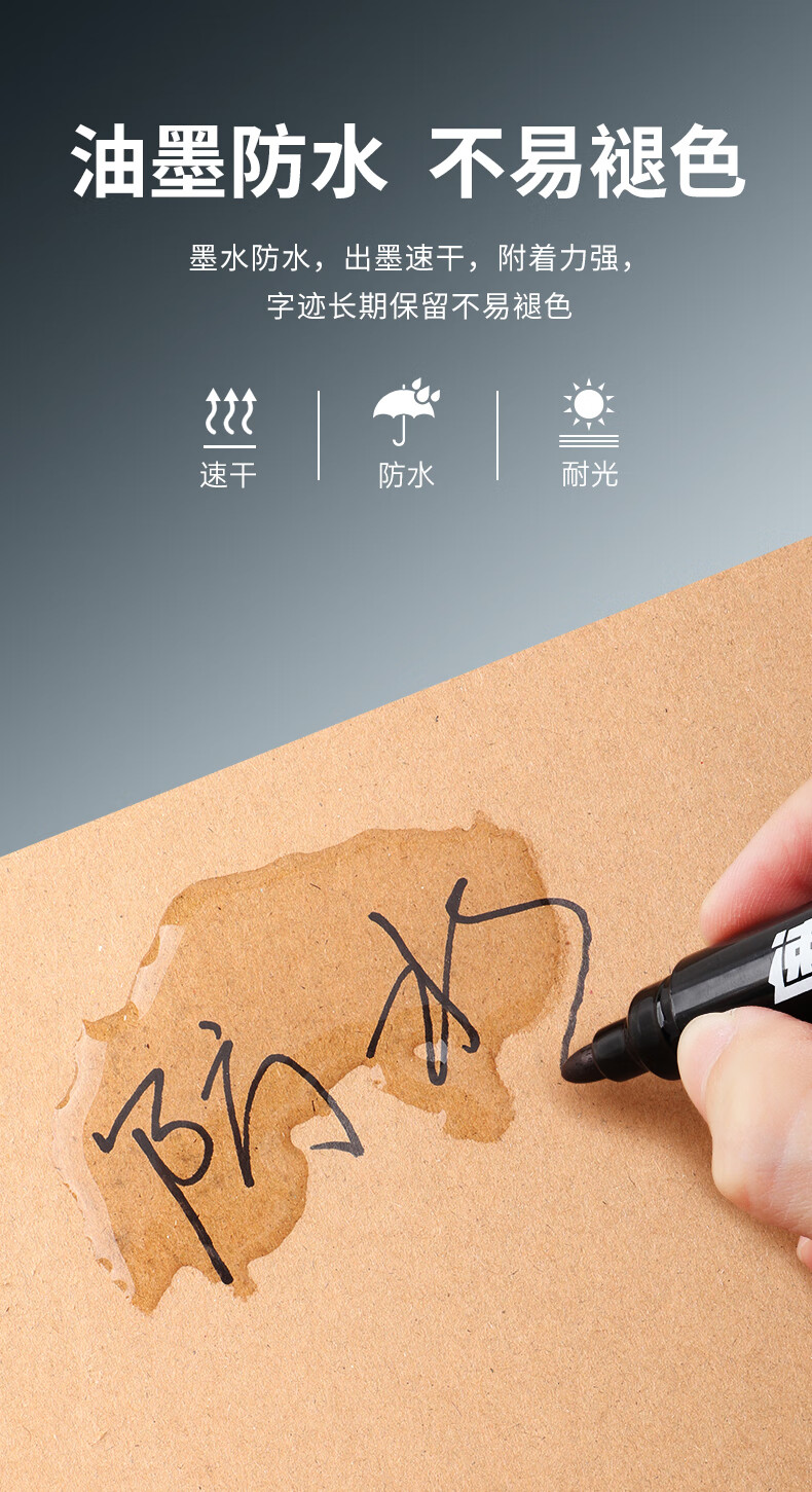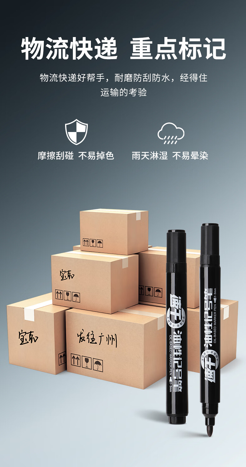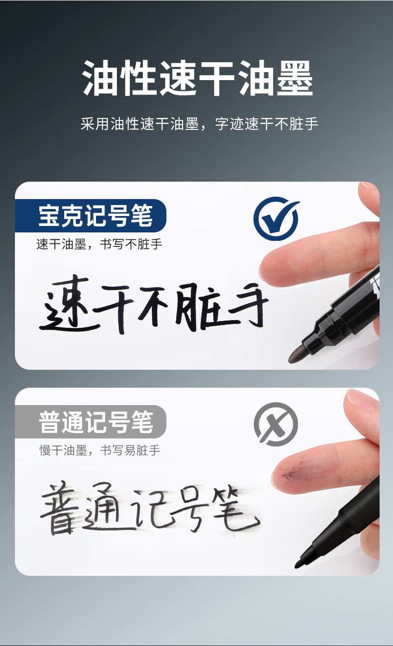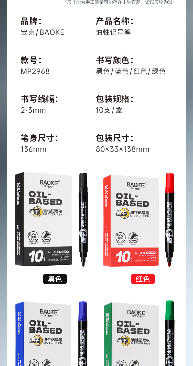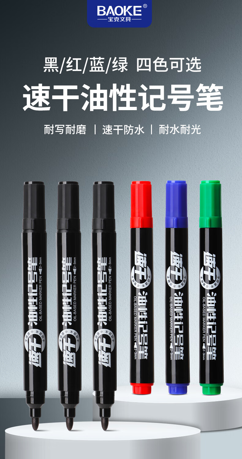 宝克(BAOKE)MP2968 记号笔 单头速干油性快递物流笔 黑红蓝三色标记笔 签字办公文具记号笔 【2~3mm单头粗杆】黑色 10支/盒