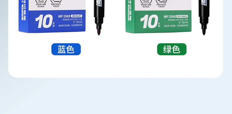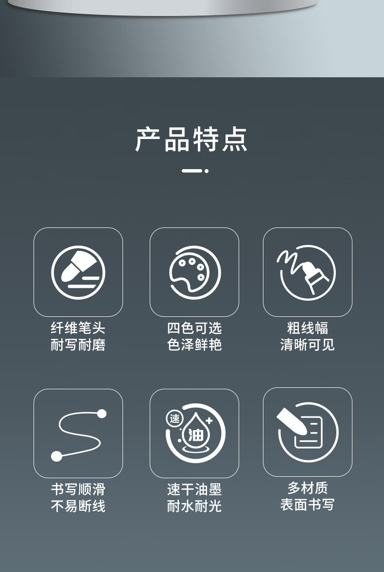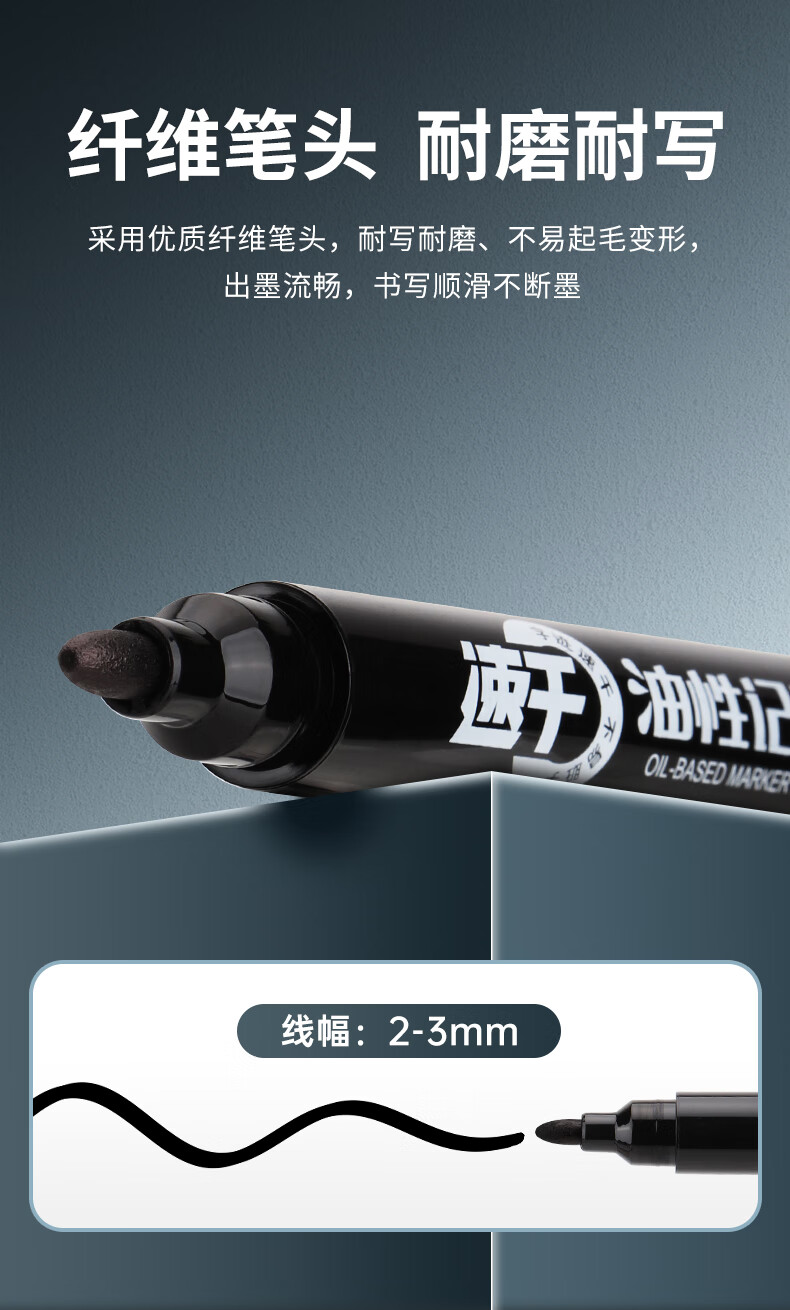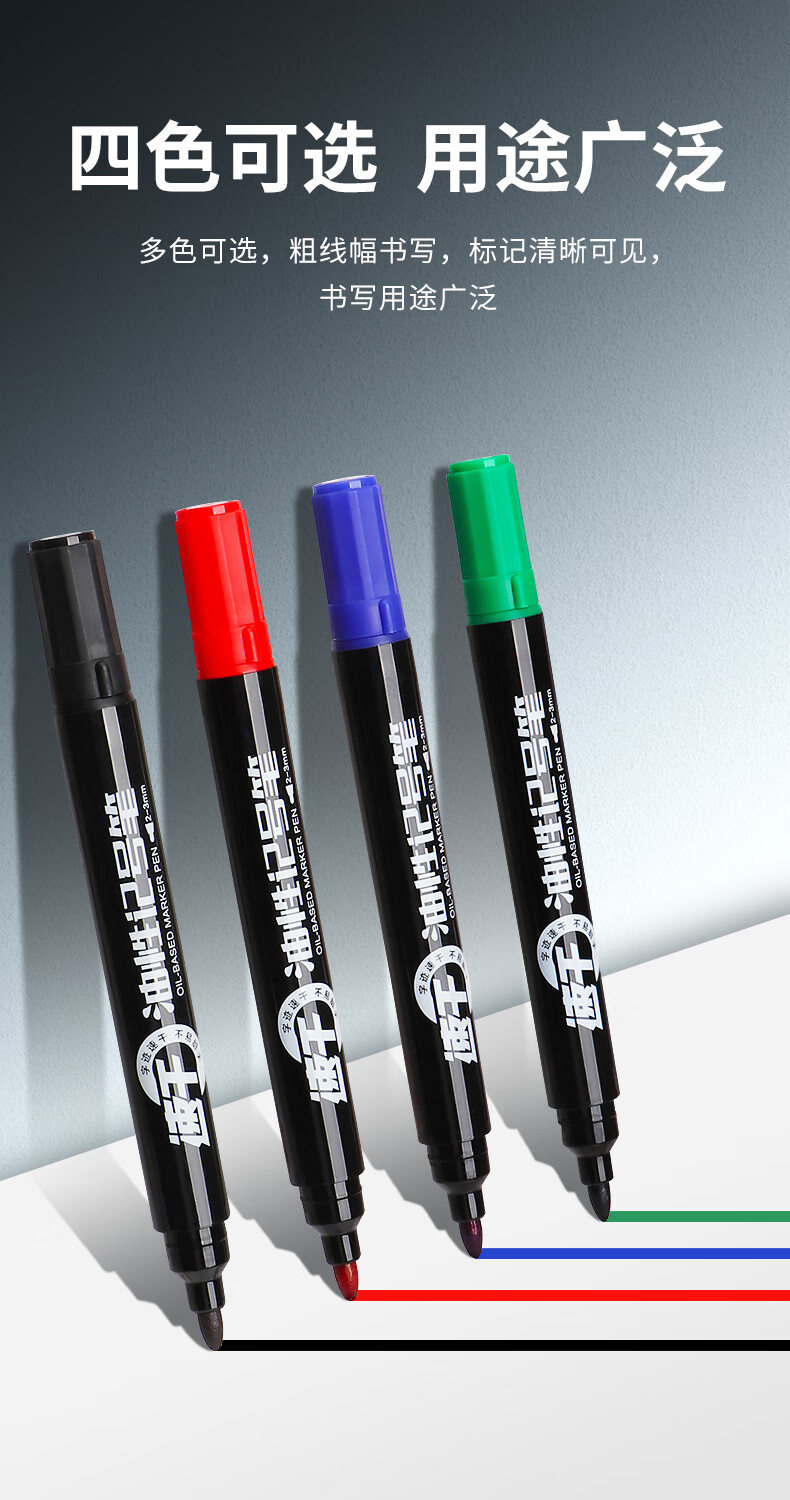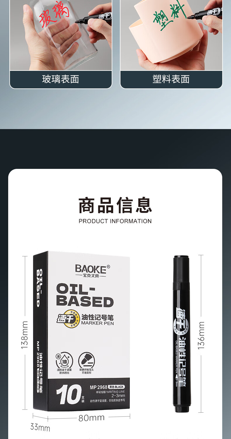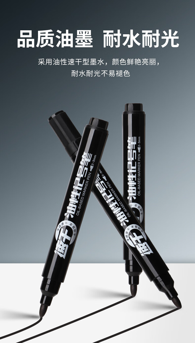 宝克(BAOKE)MP2968 记号笔 单头速干油性快递物流笔 黑红蓝三色标记笔 签字办公文具记号笔 【2~3mm单头粗杆】黑色 10支/盒