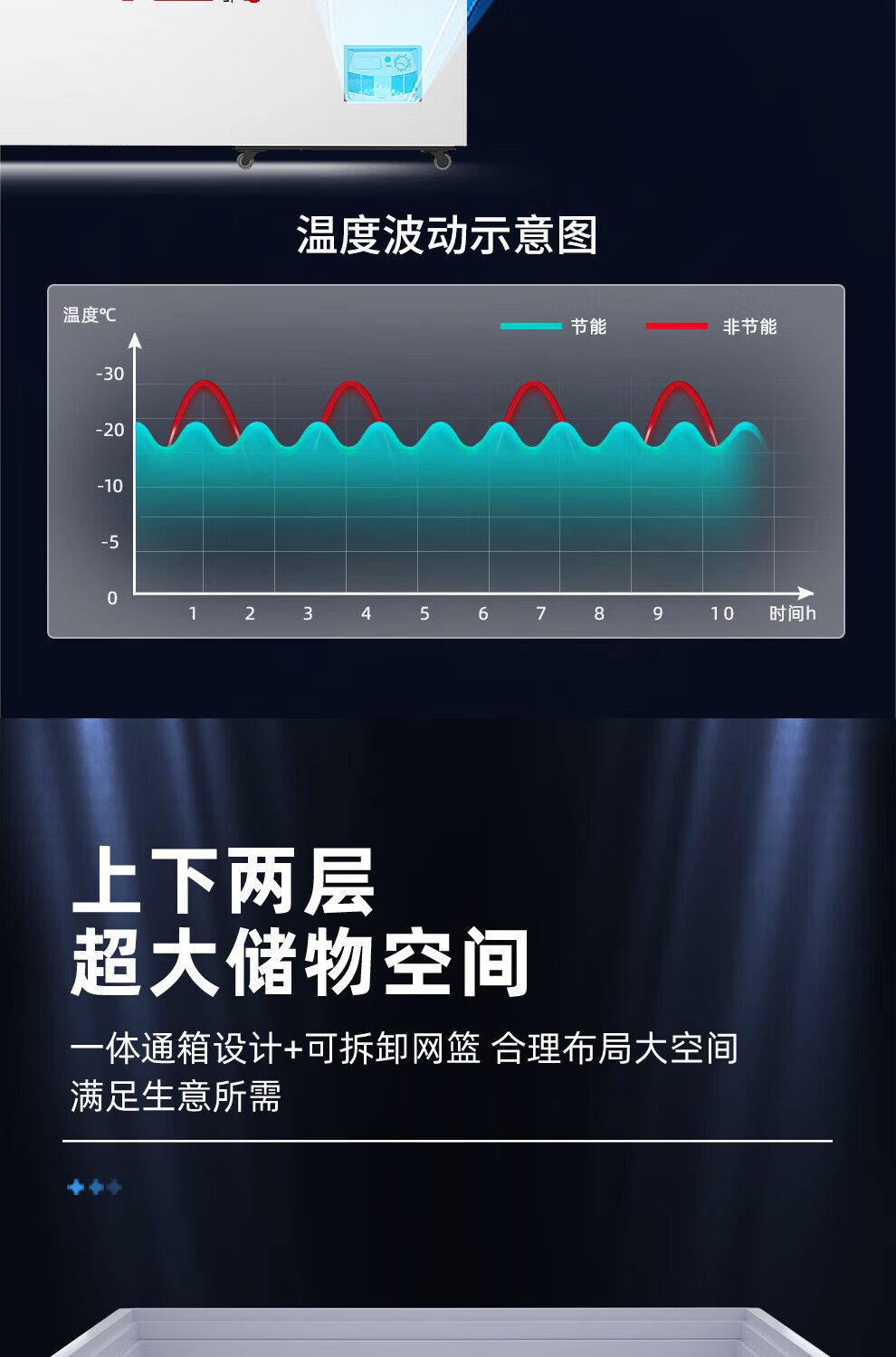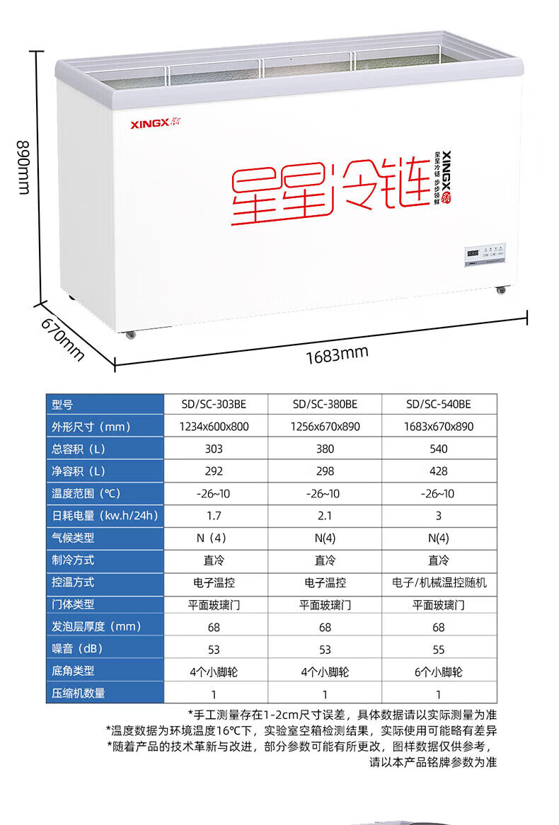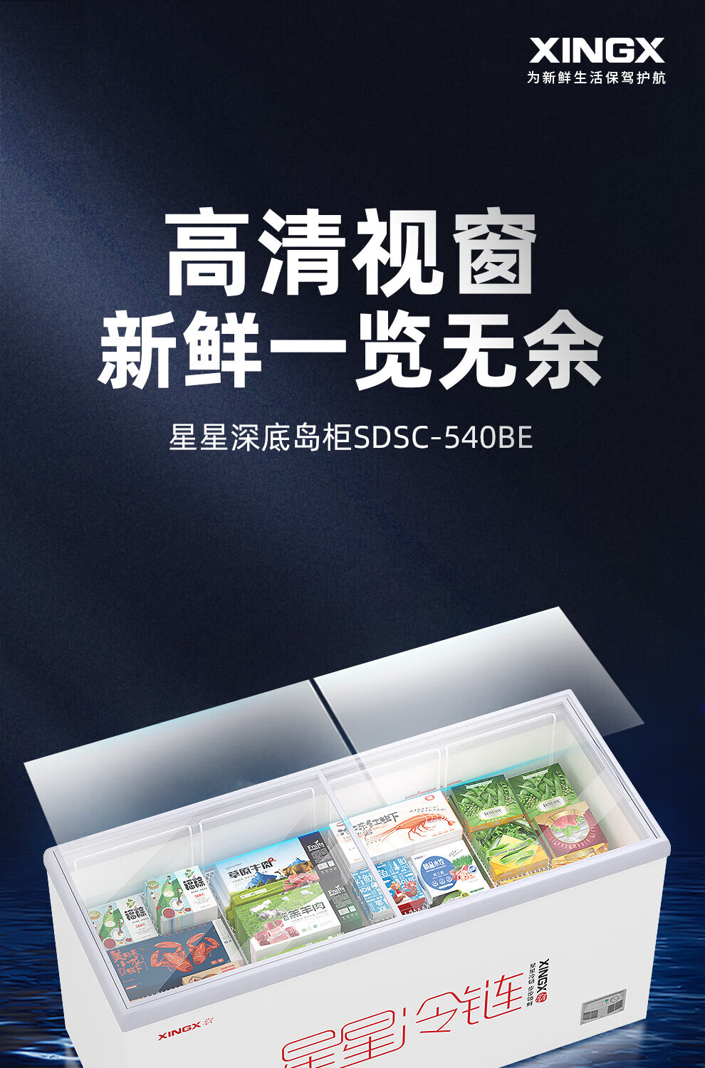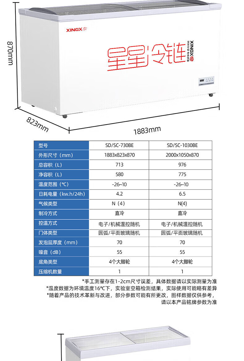 星星(XINGX)冰柜展示柜卧式冷藏冷冻双温雪糕饮料冰箱深底岛柜大容量冰箱冰柜迅速冷冻 730升【-26℃速冻钢化玻璃门】730BE