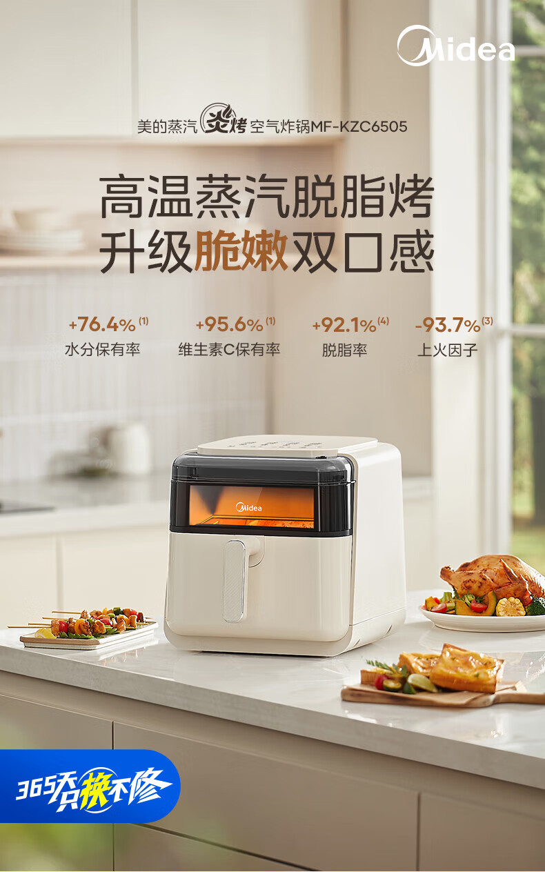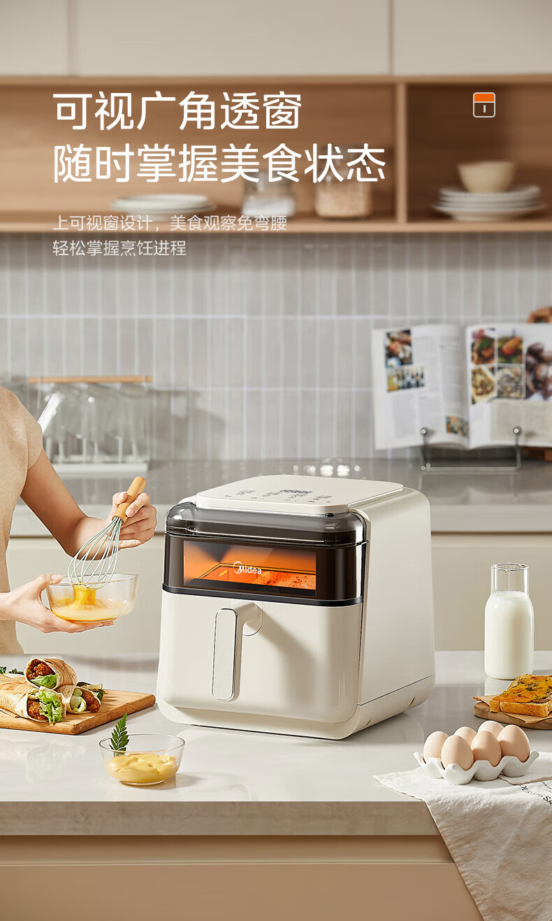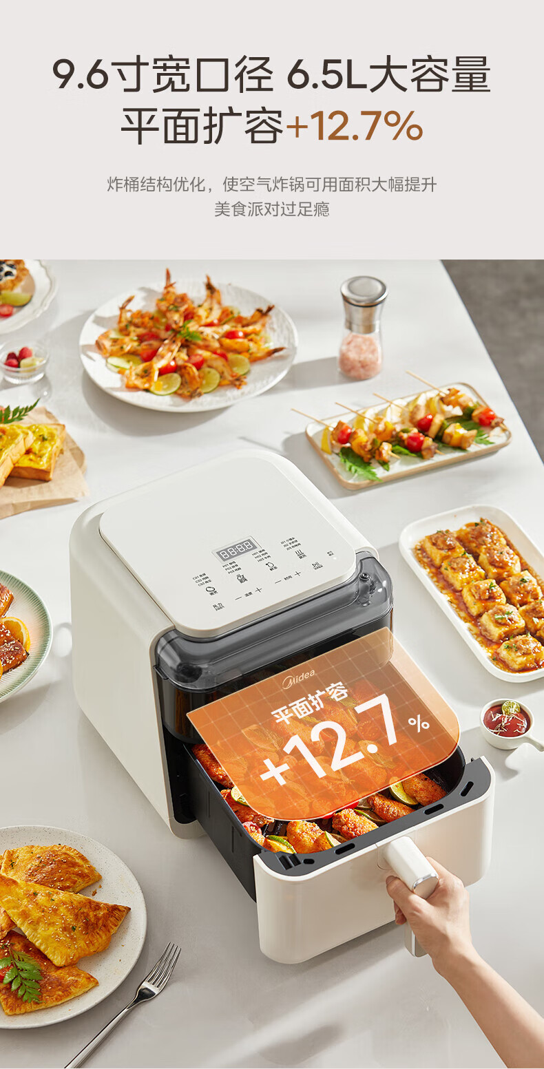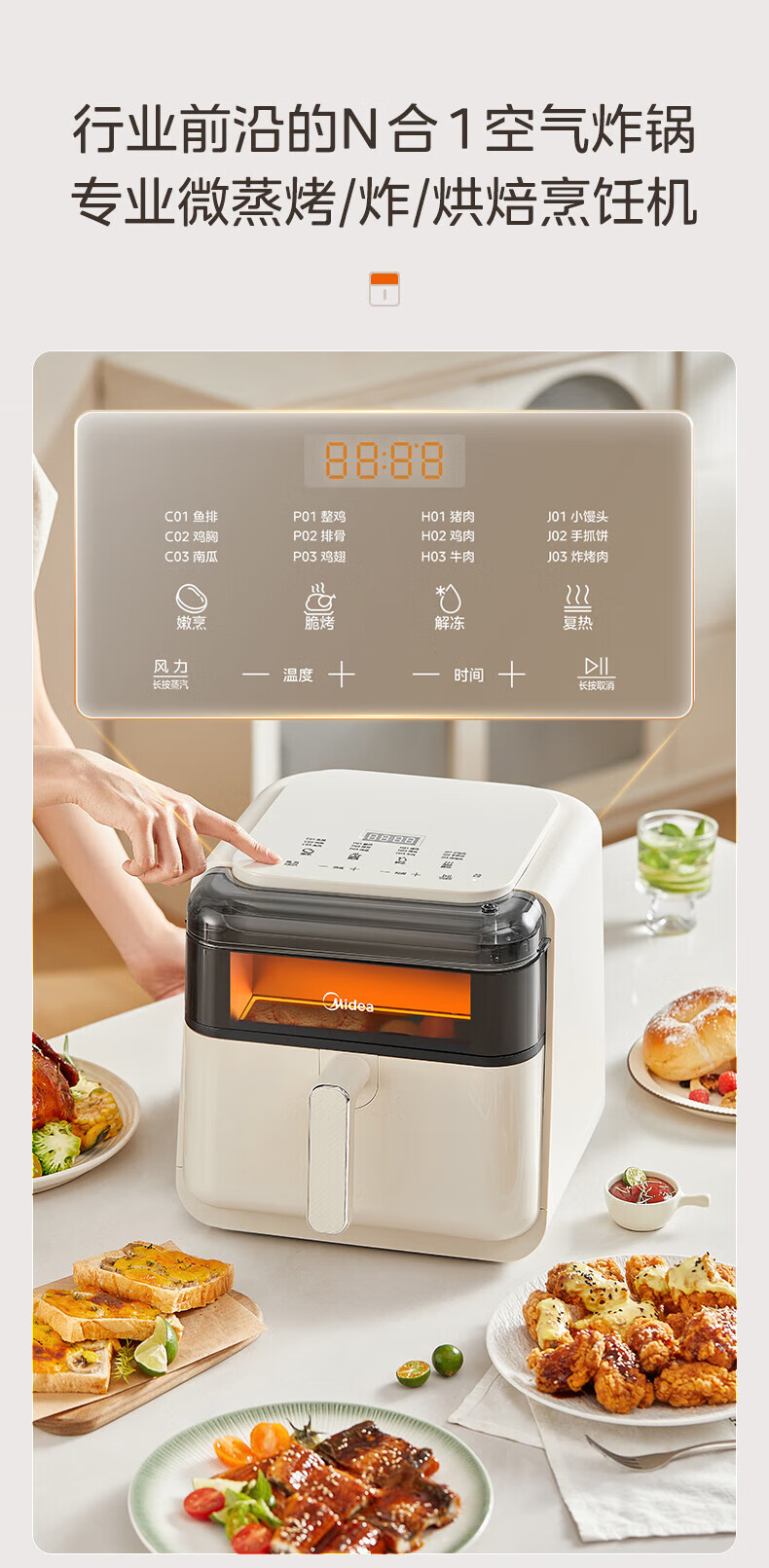 美的(Midea)蒸汽炎烤智能多功能空气炸锅新款上下双热源免翻面透明可视大视窗家用大容量6.5L 金属内腔KZC6505 【蒸汽炎烤】 6.5L