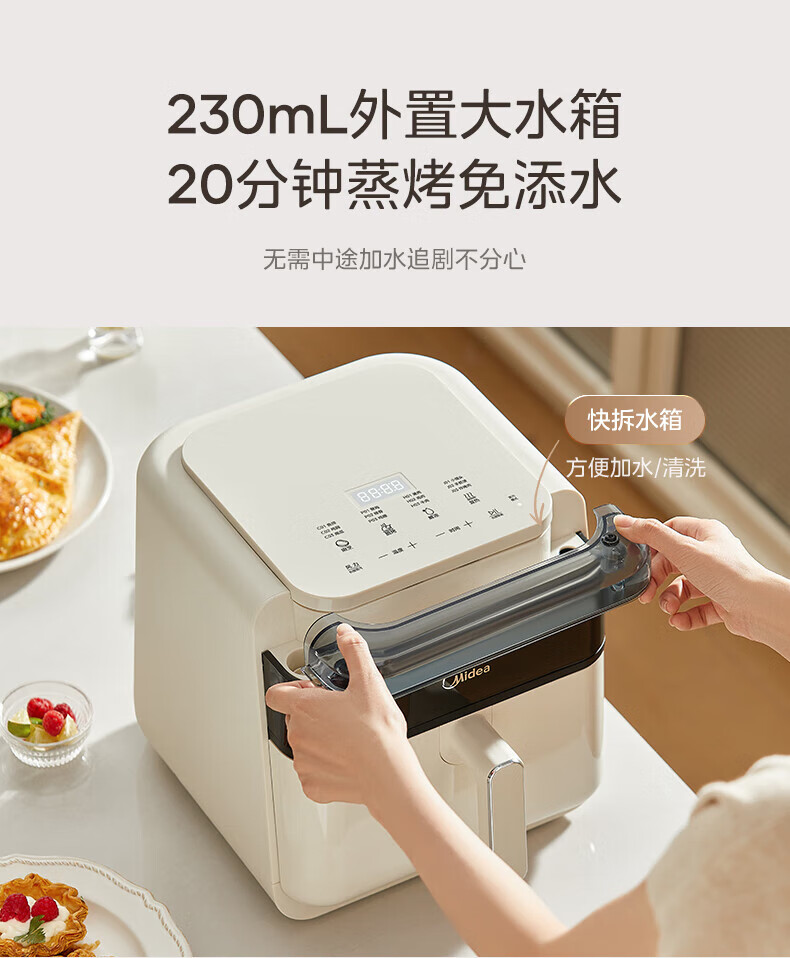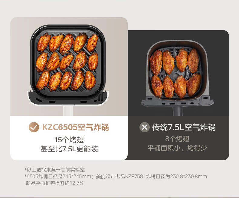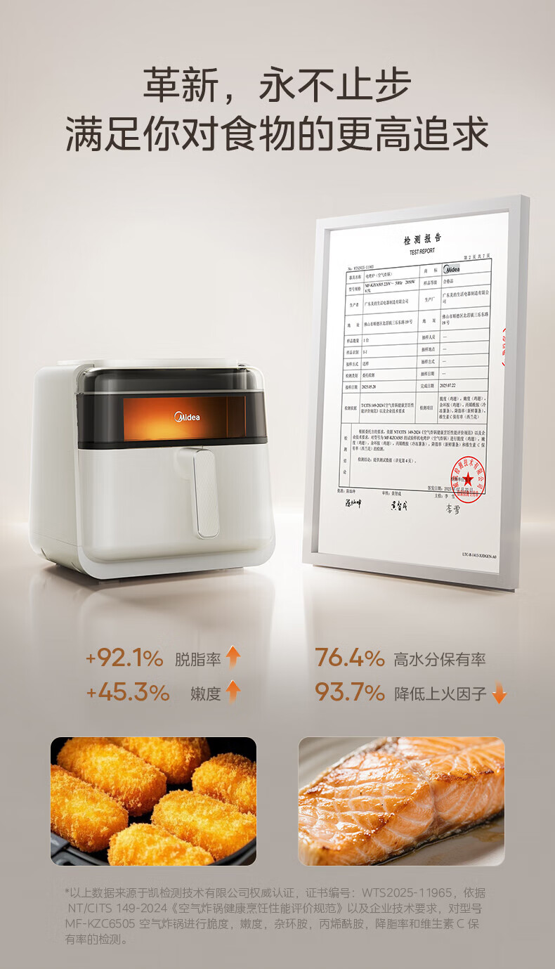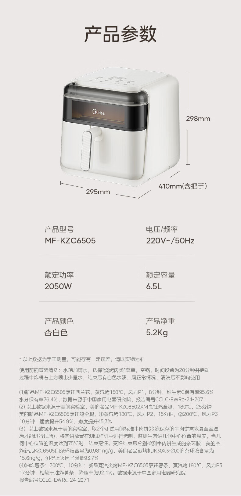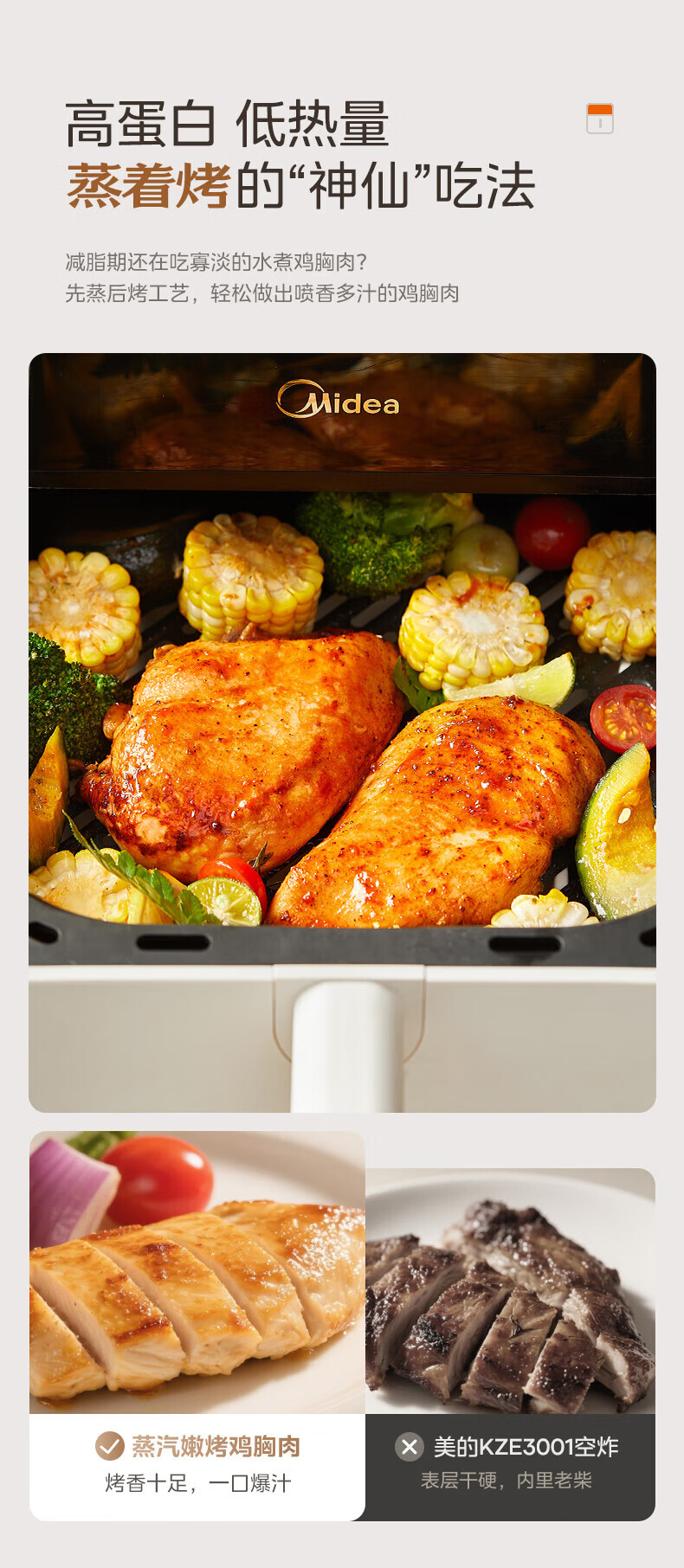 美的(Midea)蒸汽炎烤智能多功能空气炸锅新款上下双热源免翻面透明可视大视窗家用大容量6.5L 金属内腔KZC6505 【蒸汽炎烤】 6.5L