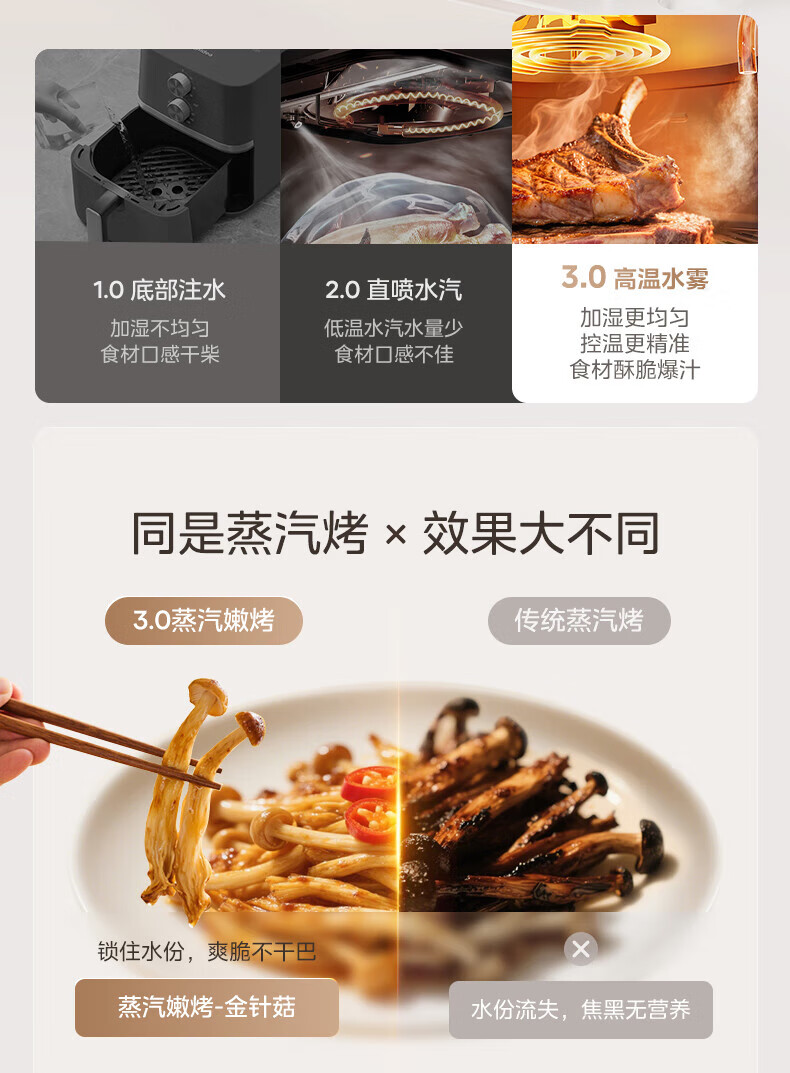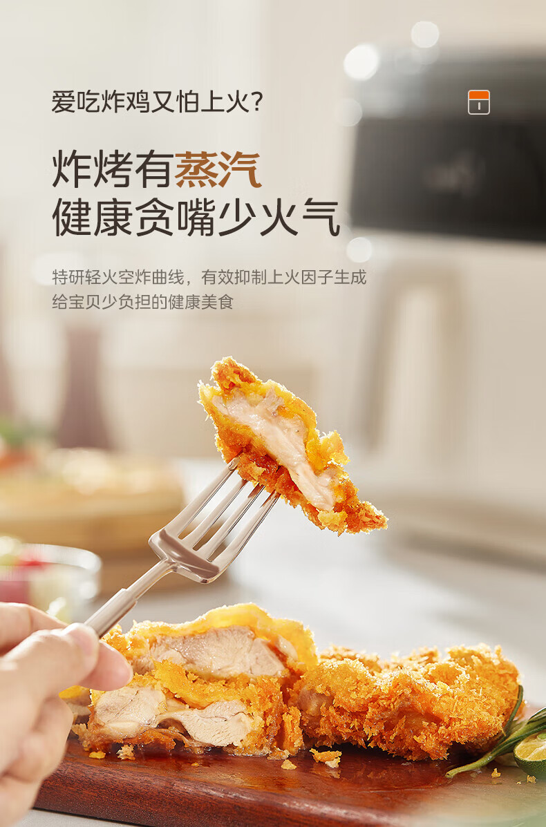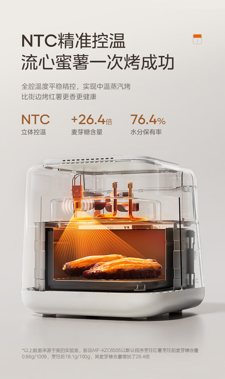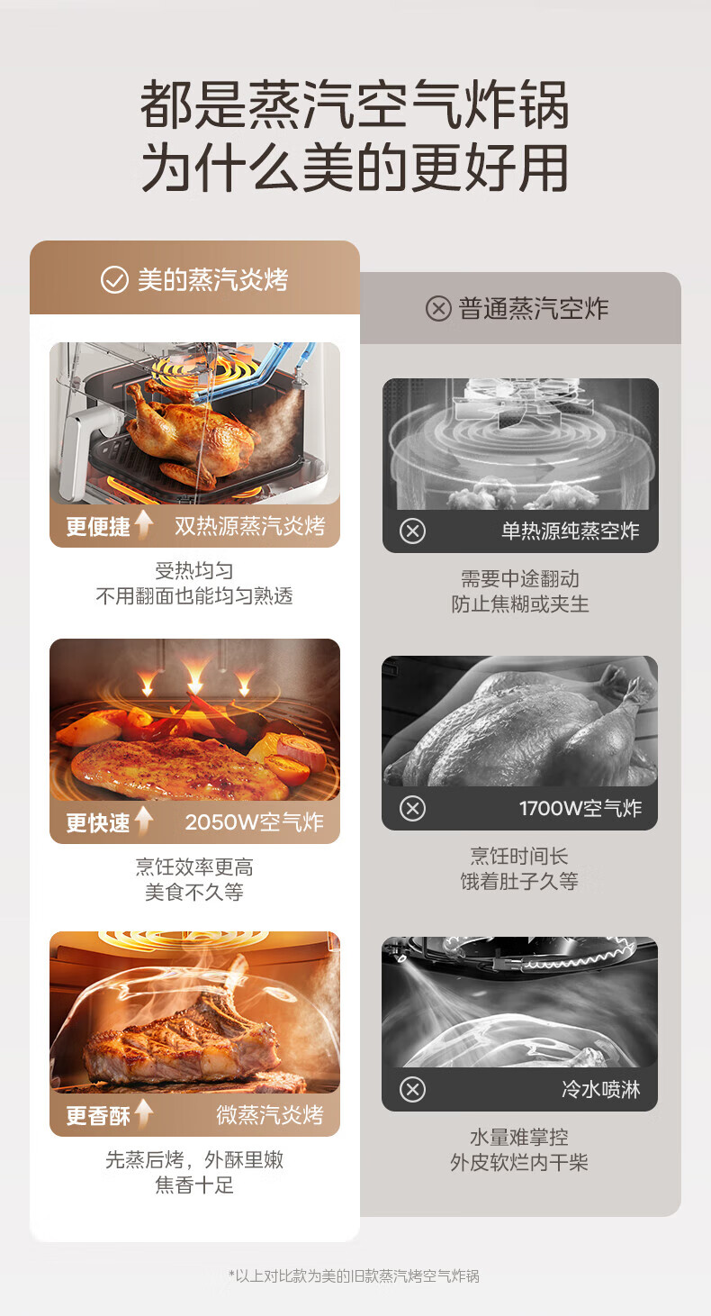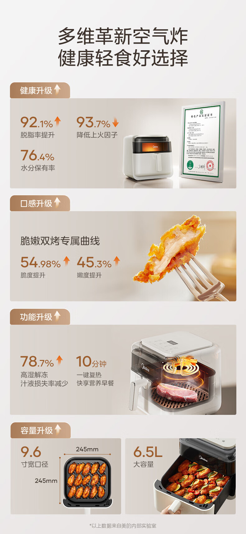 美的(Midea)蒸汽炎烤智能多功能空气炸锅新款上下双热源免翻面透明可视大视窗家用大容量6.5L 金属内腔KZC6505 【蒸汽炎烤】 6.5L