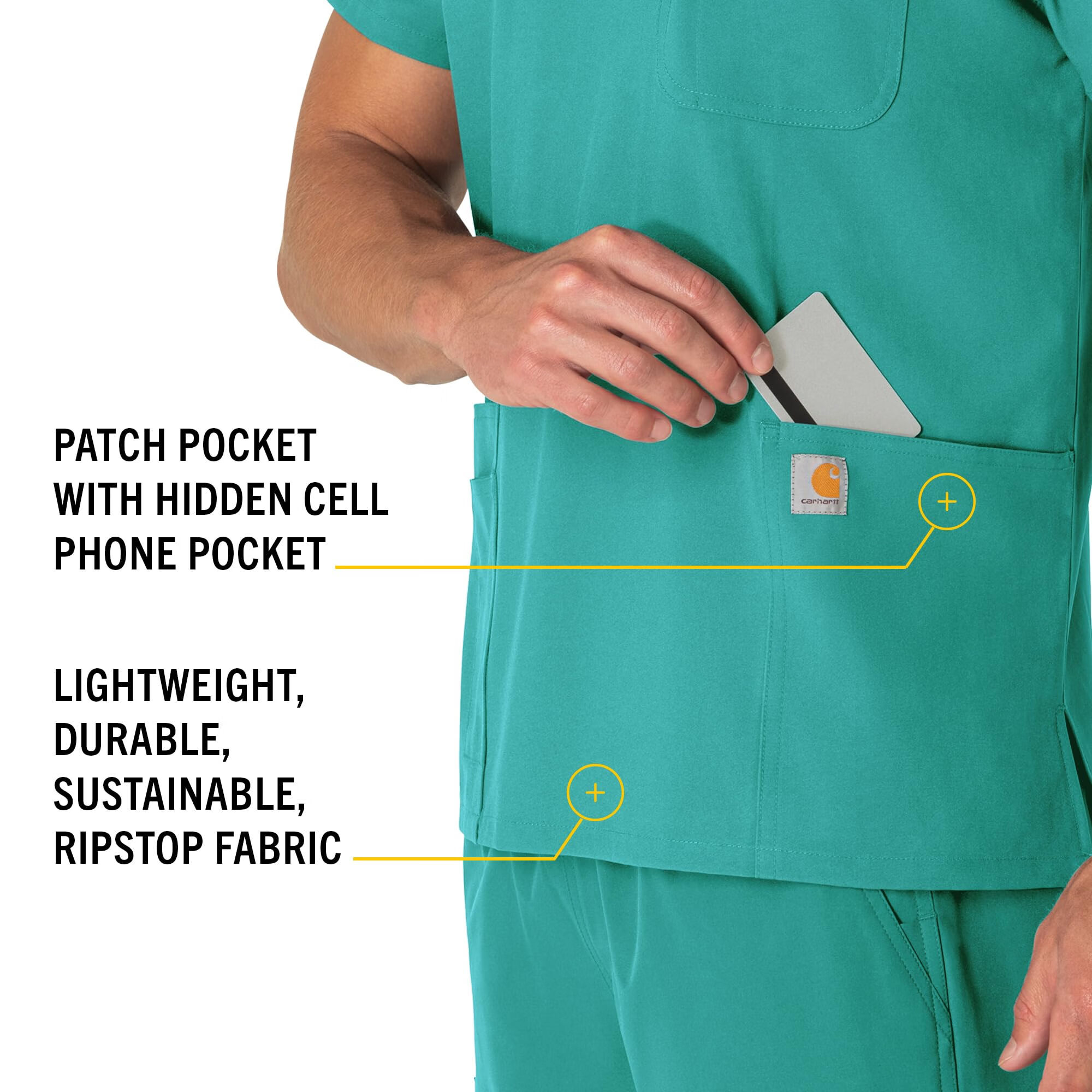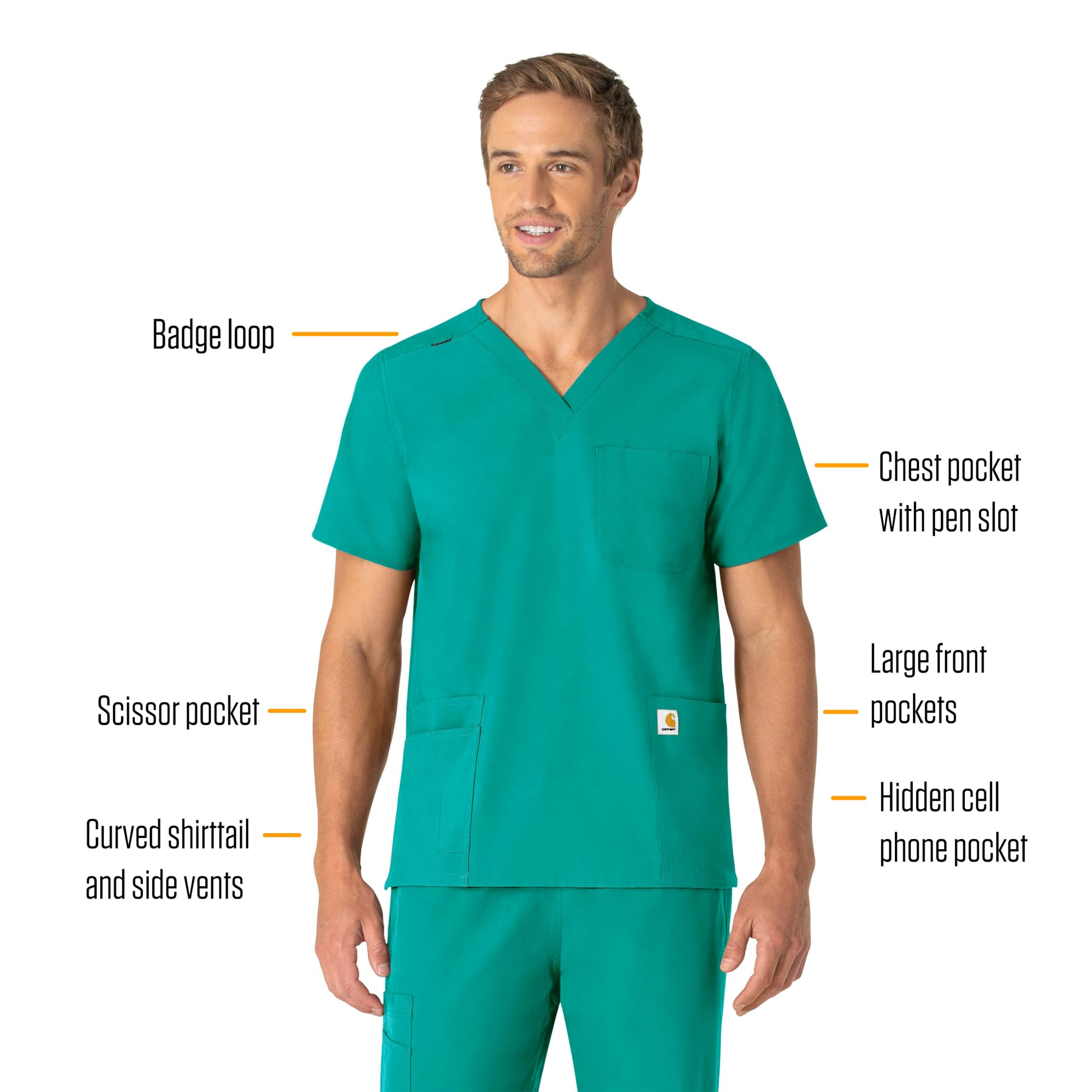Carhartt卡哈特Carhartt 男式中性款 V 领 6 口袋磨砂上衣, 蓝绿色, 4 XL 蓝绿色 4 XL