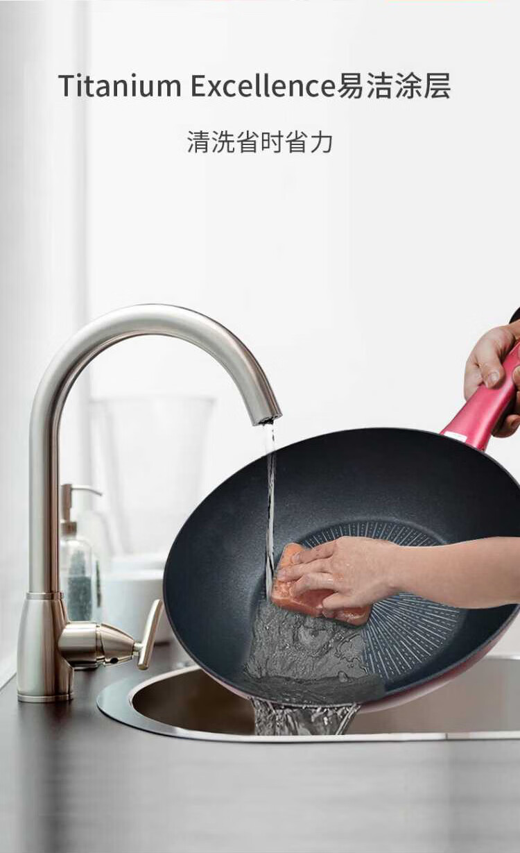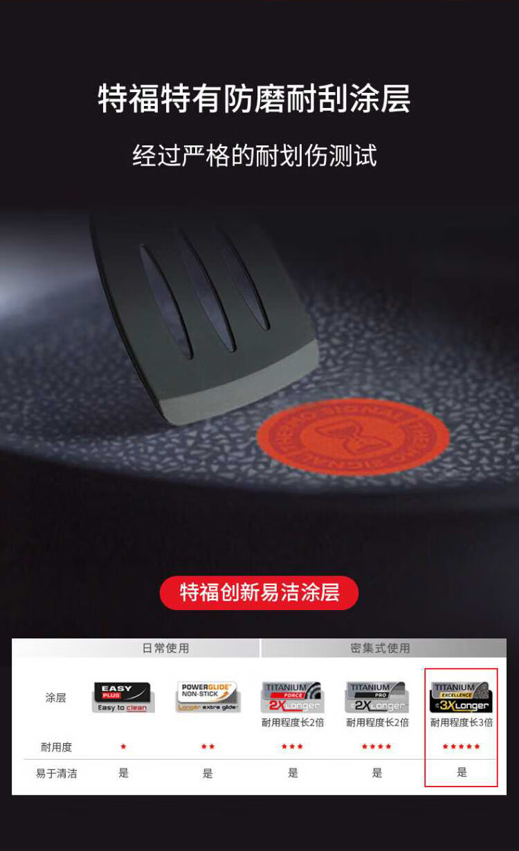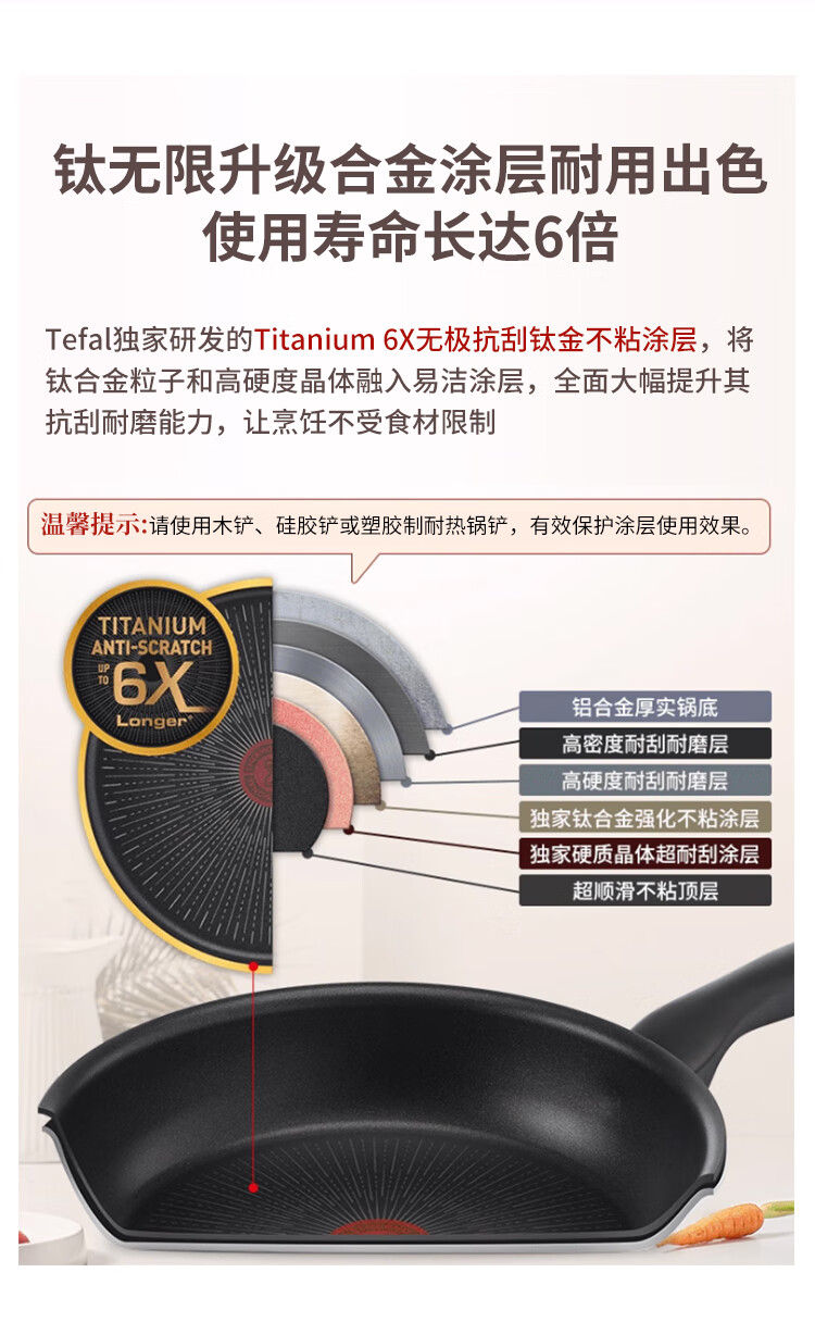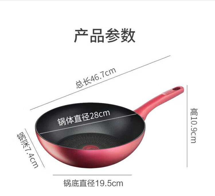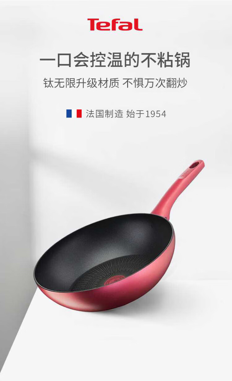 Tefal特福进口不粘锅炒锅28cm钛无限6倍耐磨红点温控热源通用易洁