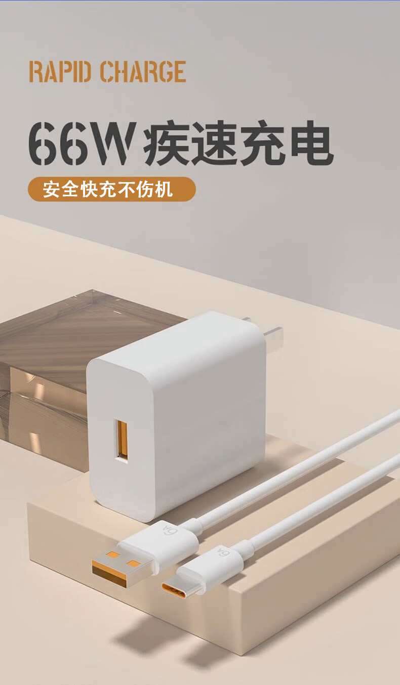 今胜66W超级闪充快充电器套装6A数据线type-c快充闪充电头适用安卓手机华为荣耀vivo小米oppo 套装【66W充电器+2米6A线】