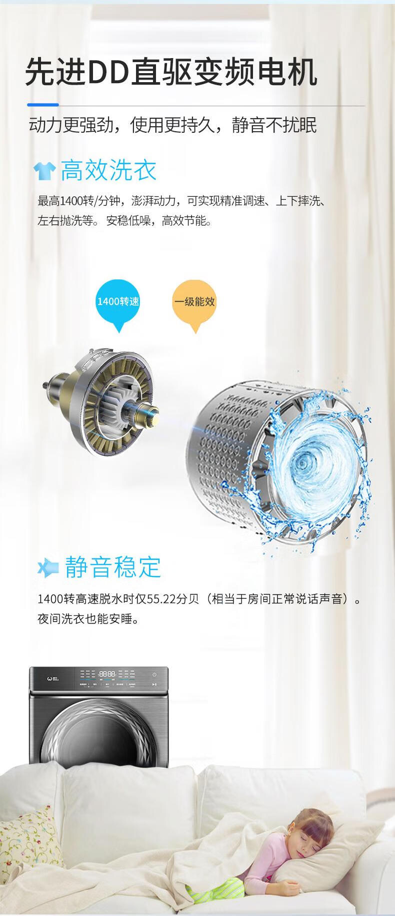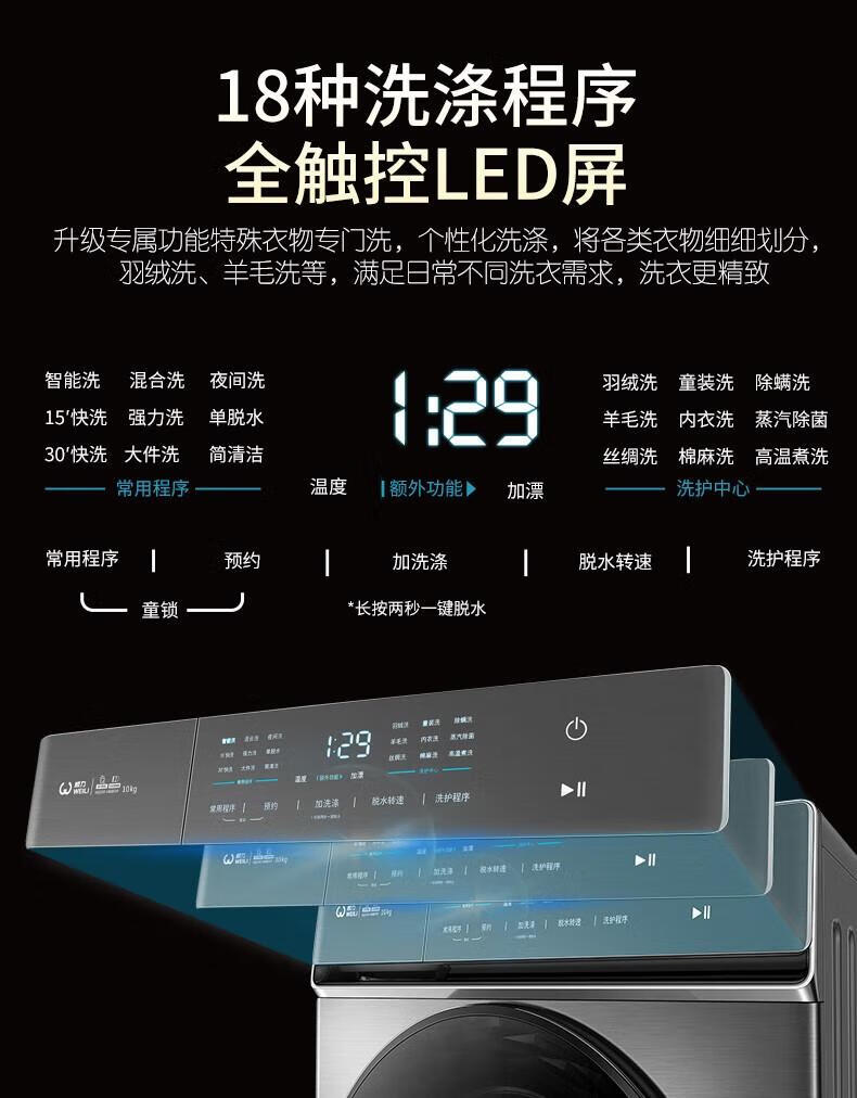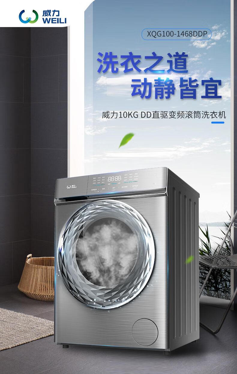 威力【威力高端洗脱混资】直驱触控10KG滚筒变频洗衣机蒸汽除菌超薄1468