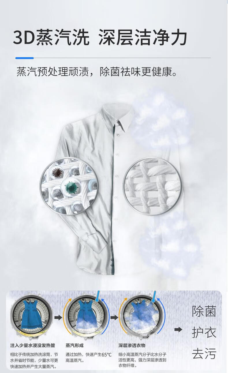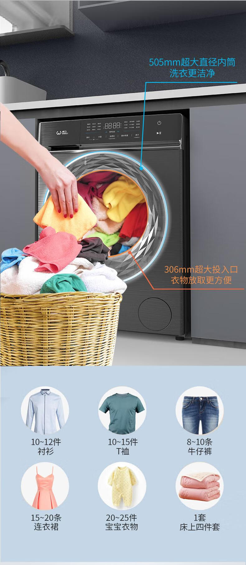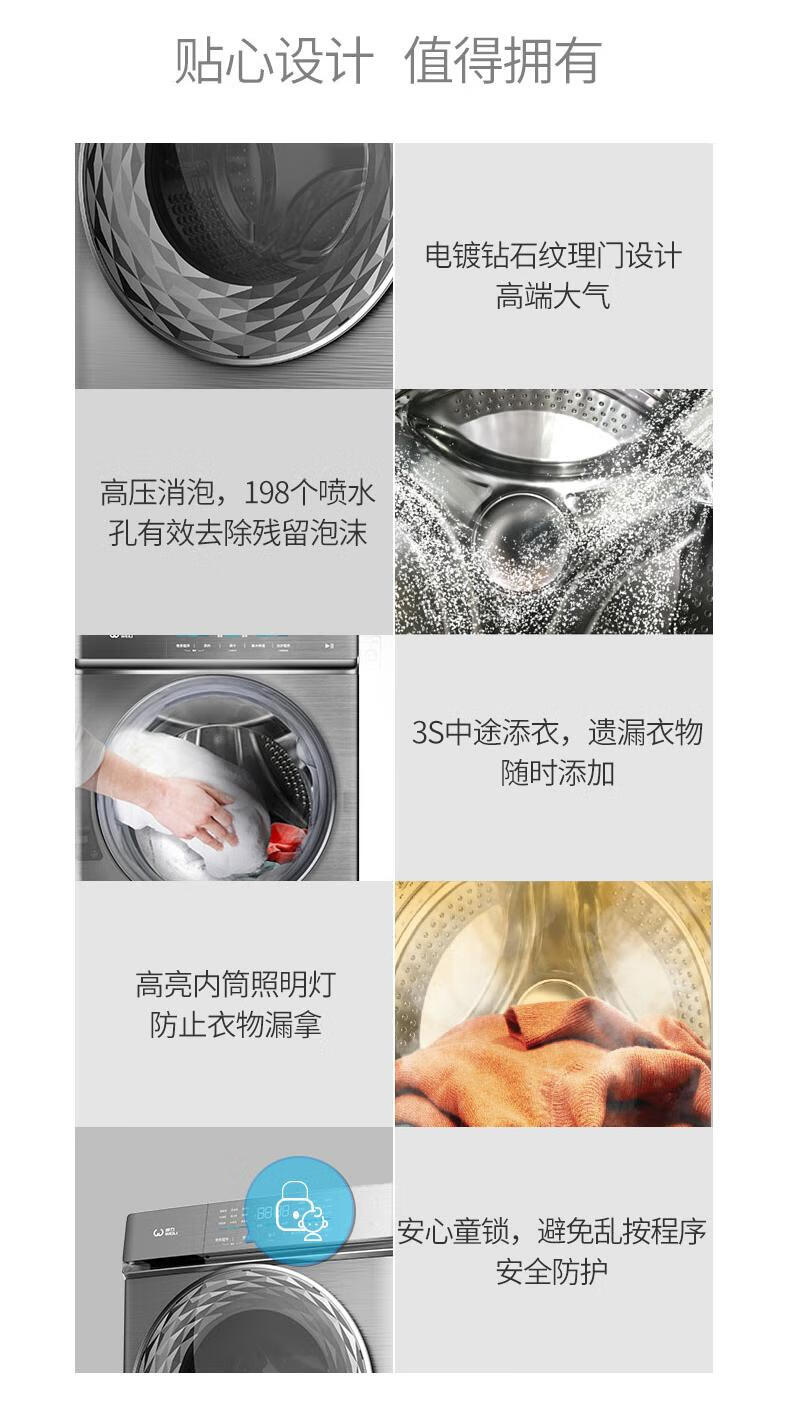 威力【威力高端洗脱混资】直驱触控10KG滚筒变频洗衣机蒸汽除菌超薄1468