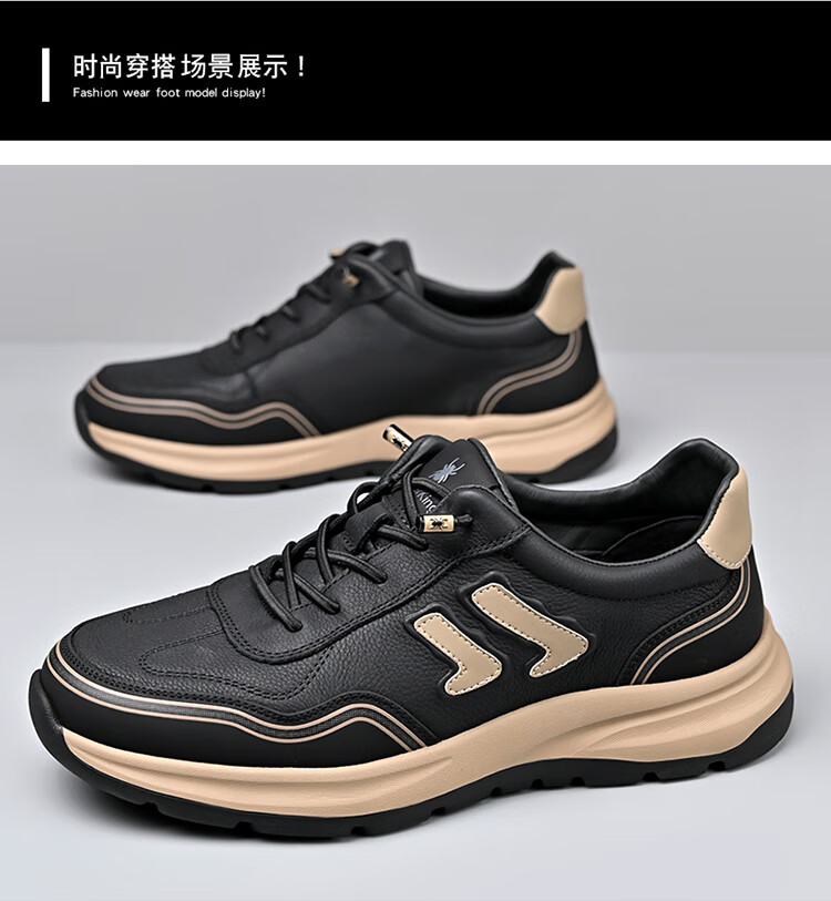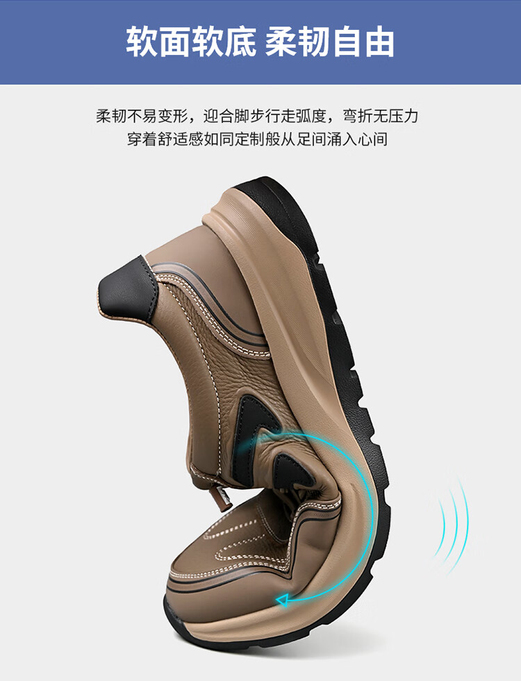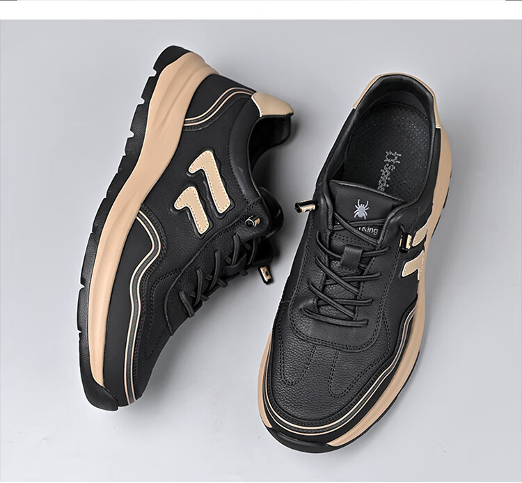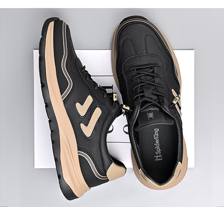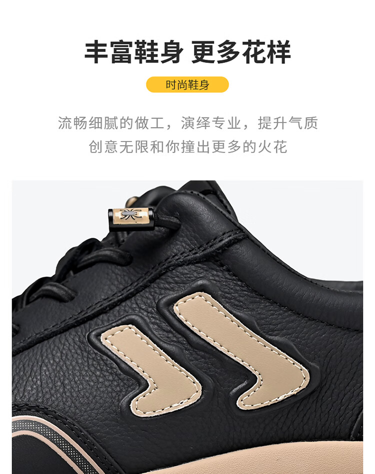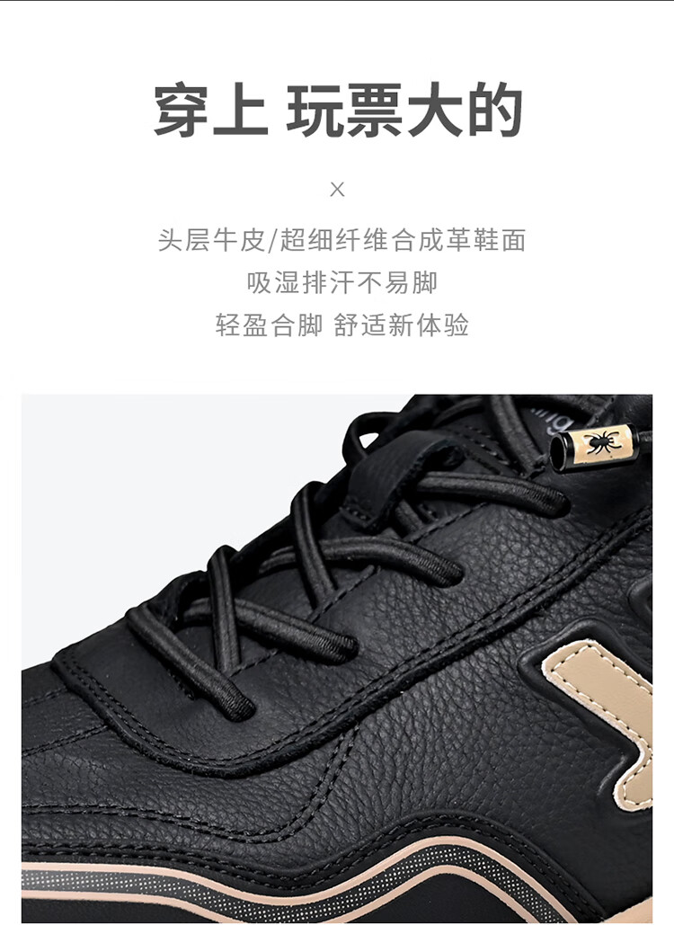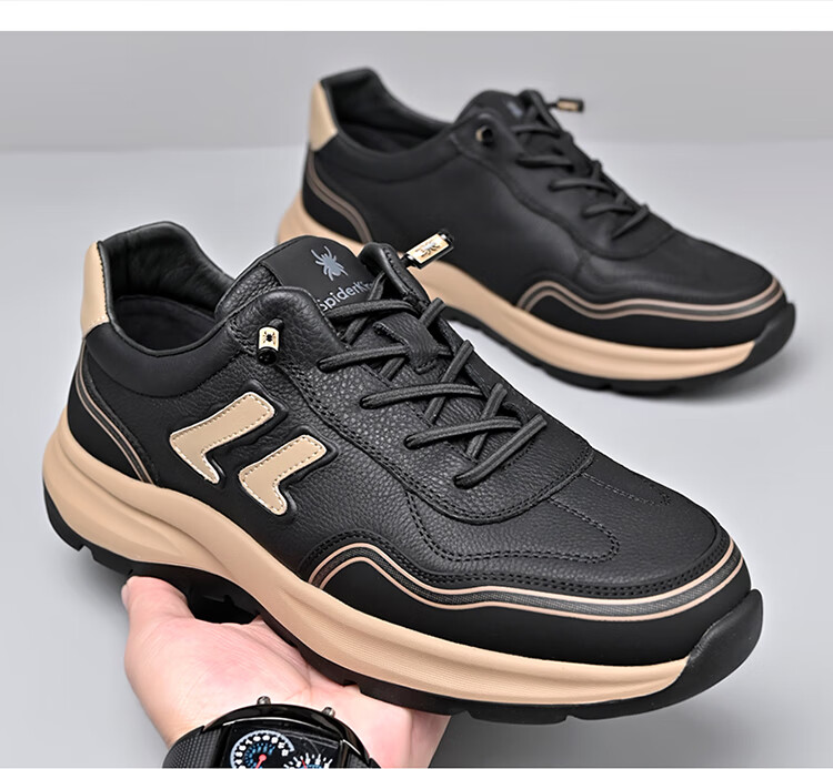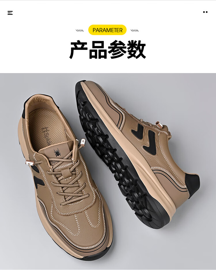 蜘蛛王男鞋春秋季牛皮透气户外运动皮鞋男软底商务休闲鞋 卡其色 40