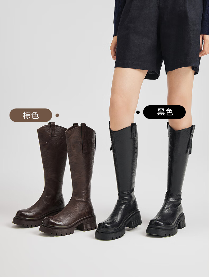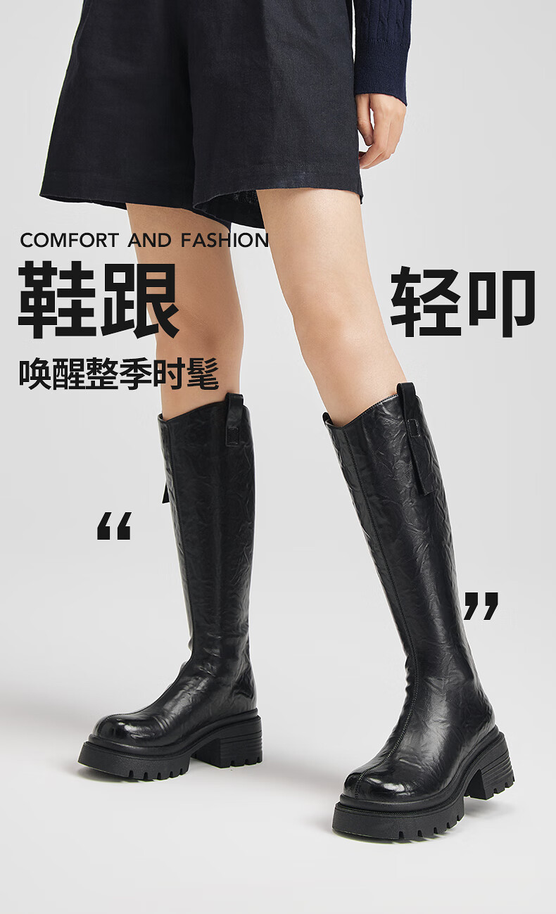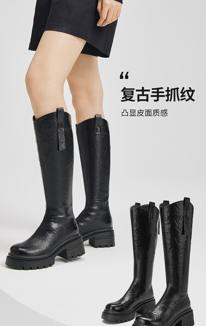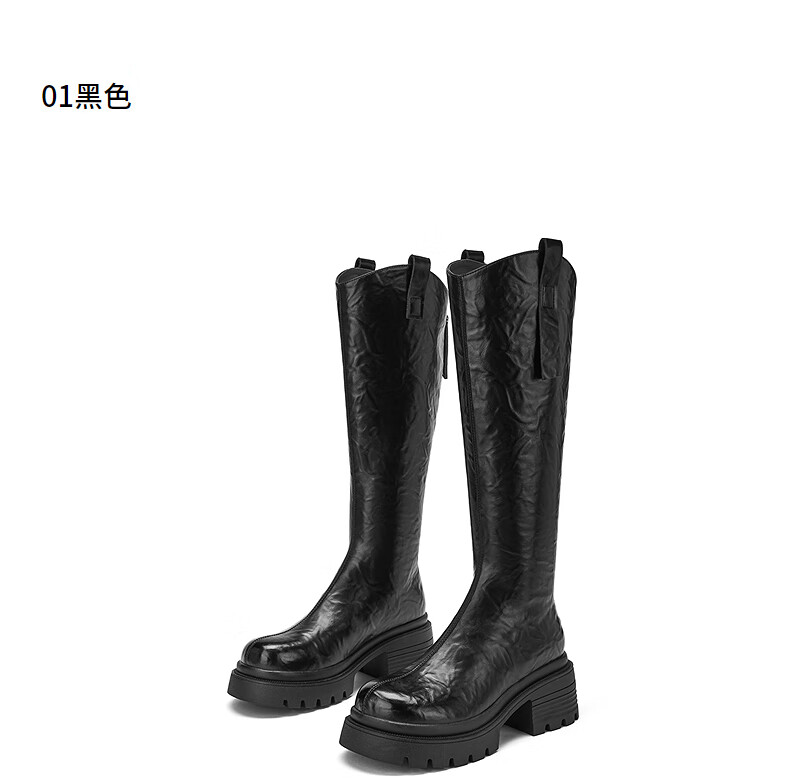 热风厚底骑士靴女2025年冬季新款英伦风黑色长靴增高百搭粗跟靴子 01黑色 37