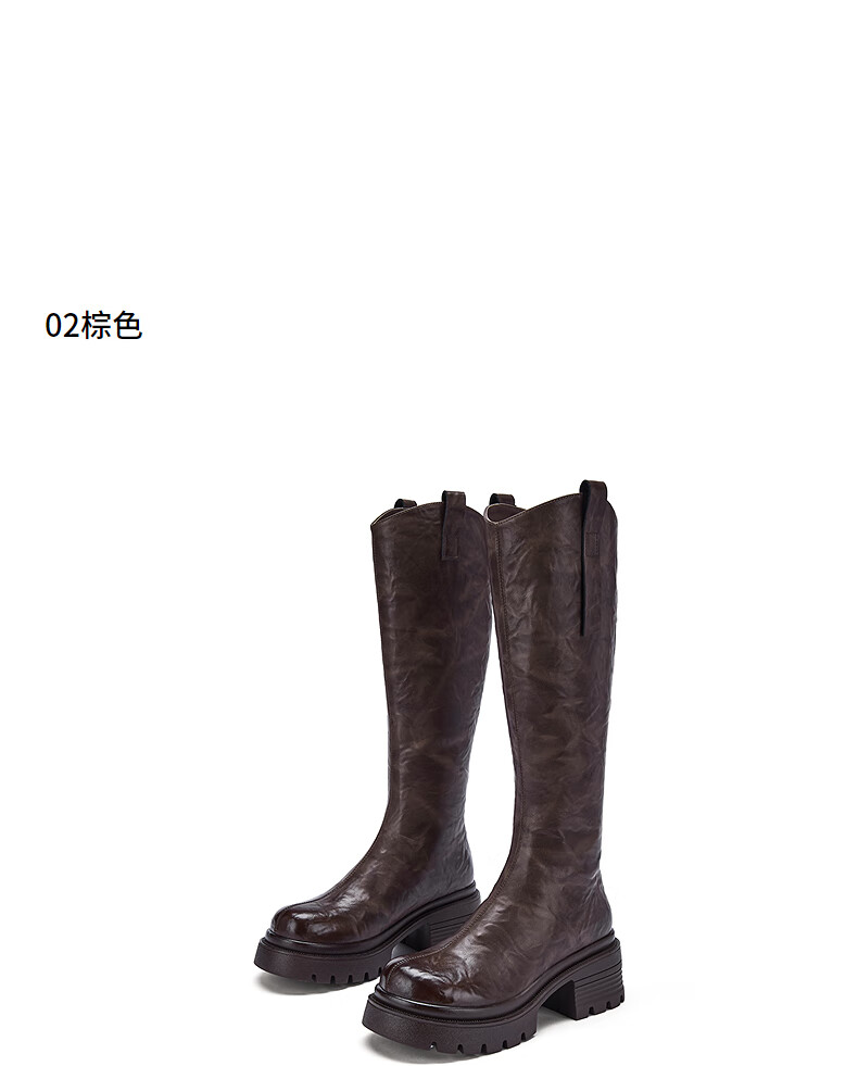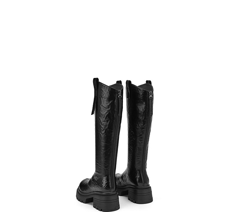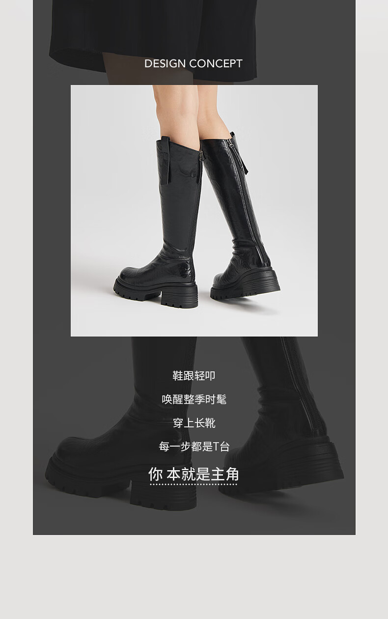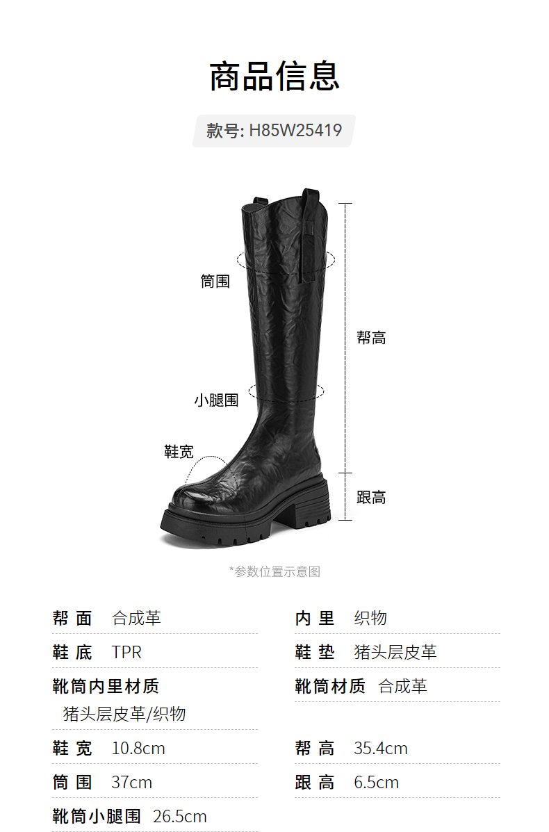 热风厚底骑士靴女2025年冬季新款英伦风黑色长靴增高百搭粗跟靴子 01黑色 37
