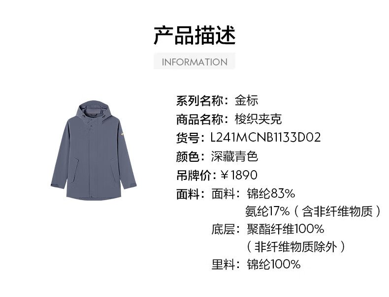 乐卡克【金标】乐卡克法国公鸡春秋男款梭织夹克运动外套