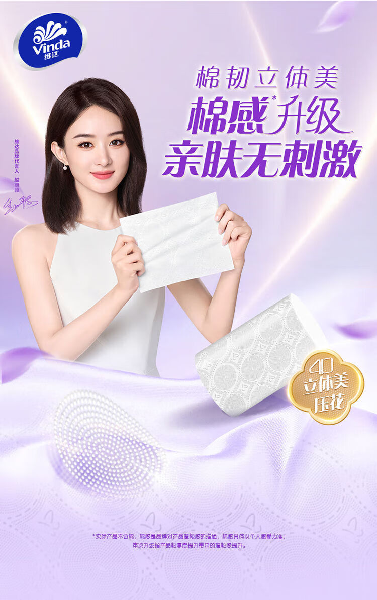 维达(Vinda)抽纸棉韧立体美XS码 3层100抽纸巾家用卫生纸hd 3层 100抽*2包