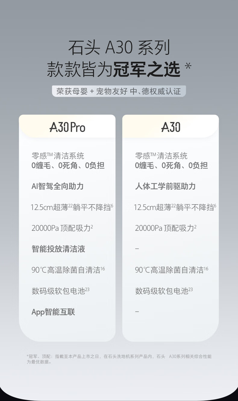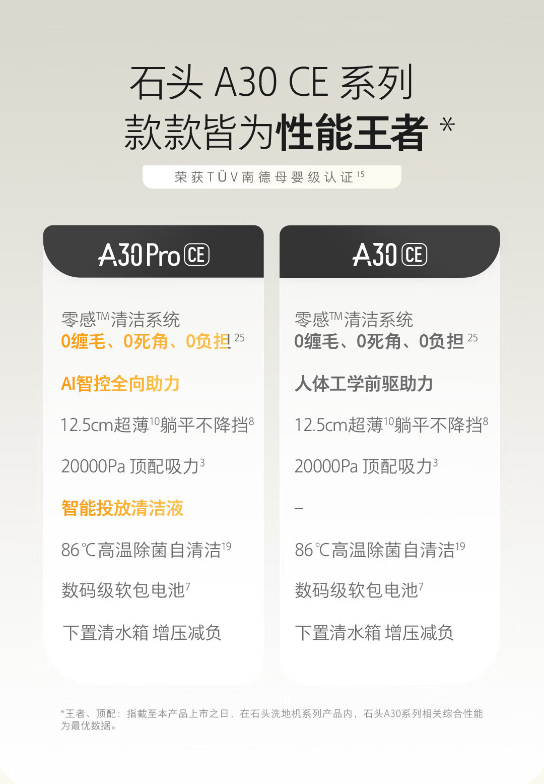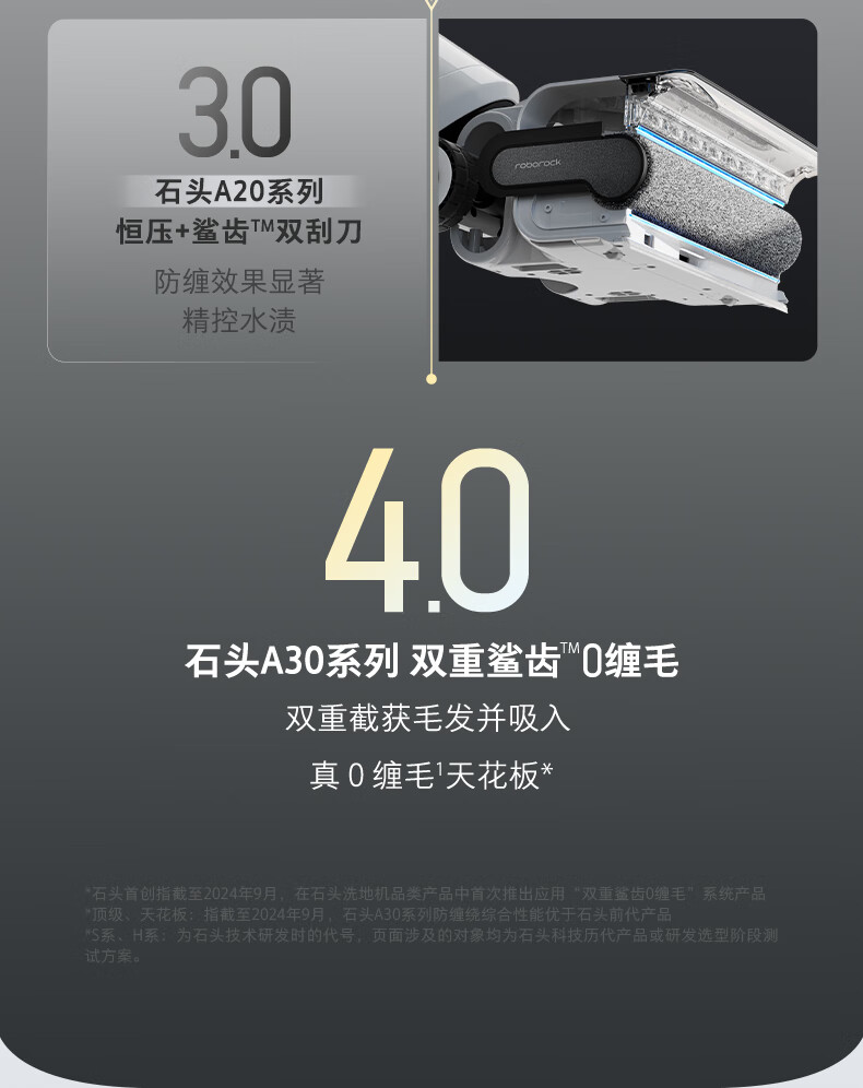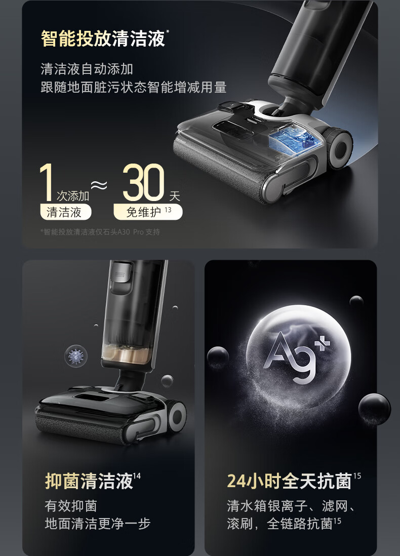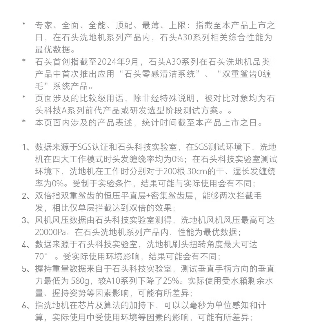 石头(roborock)A30 Pro洗地机0缠毛180°平躺AI智驾助力智能投放家用吸拖洗一体手持吸尘器 【Top热卖】A30 Pro