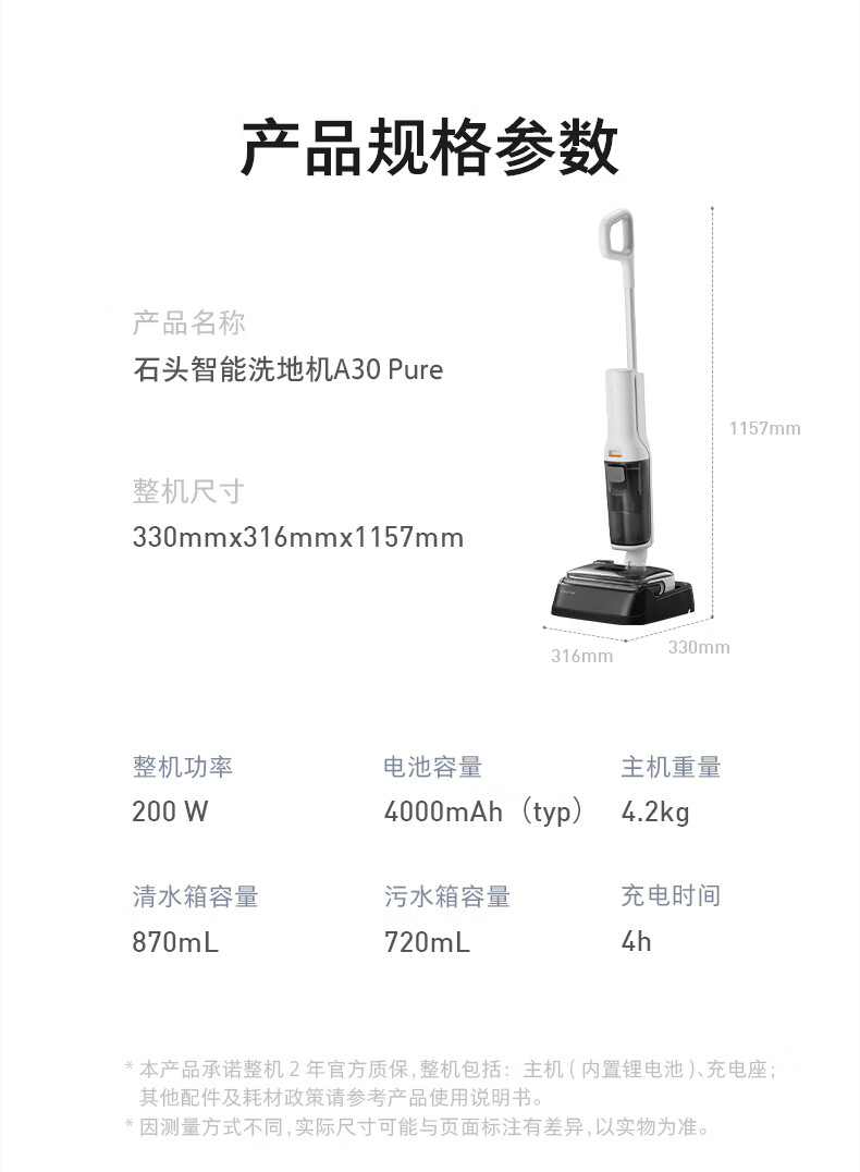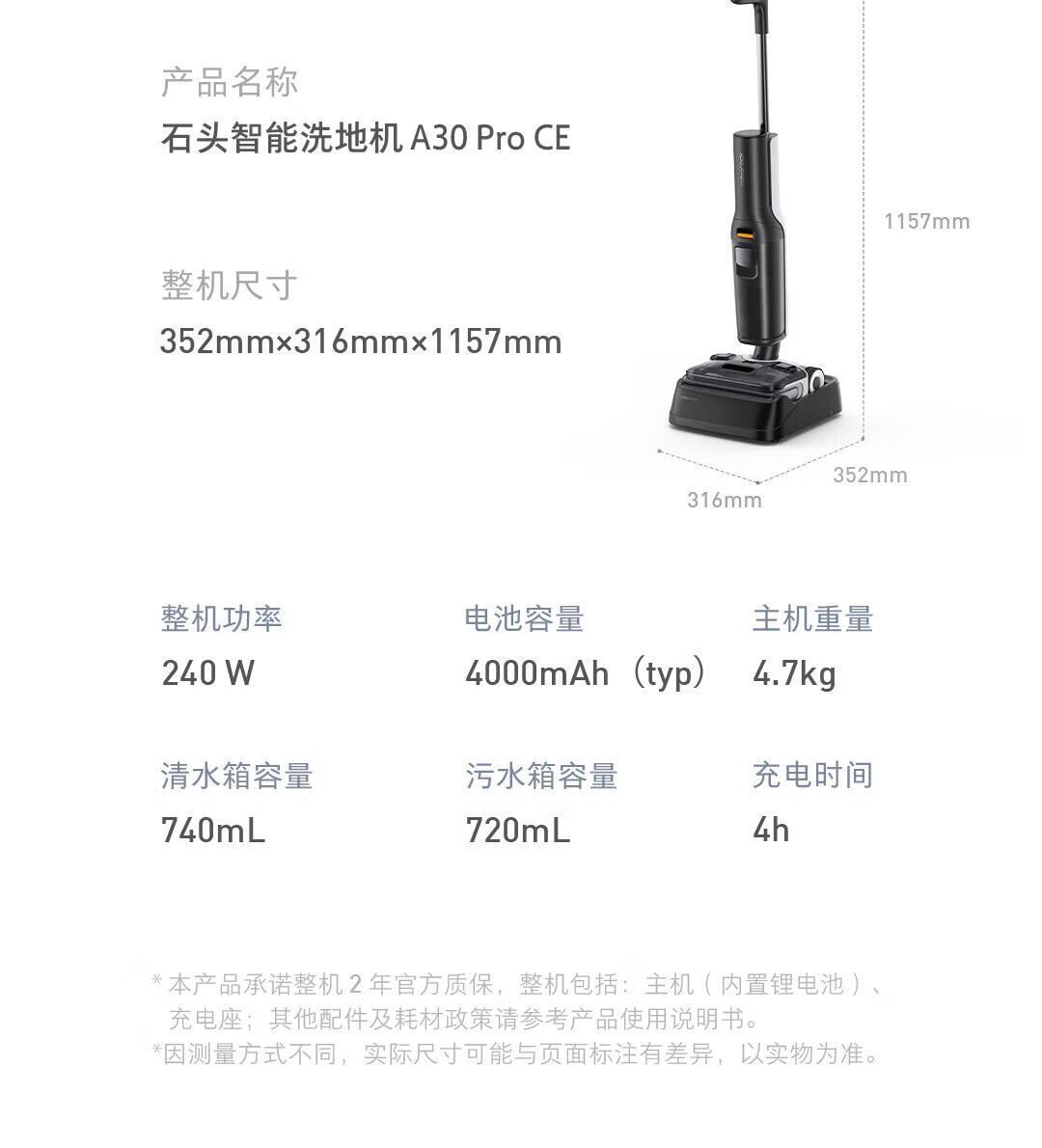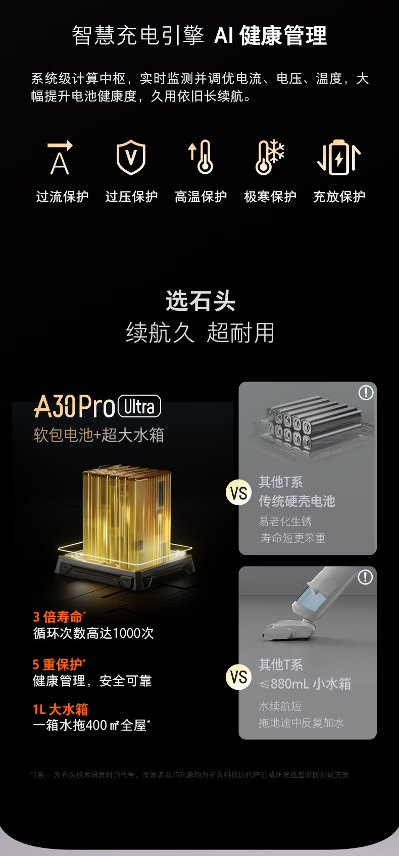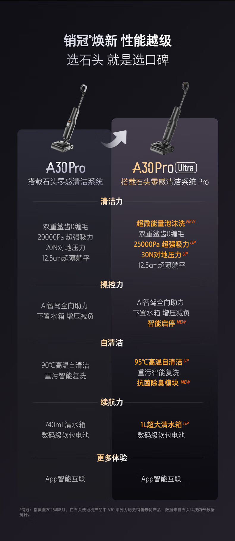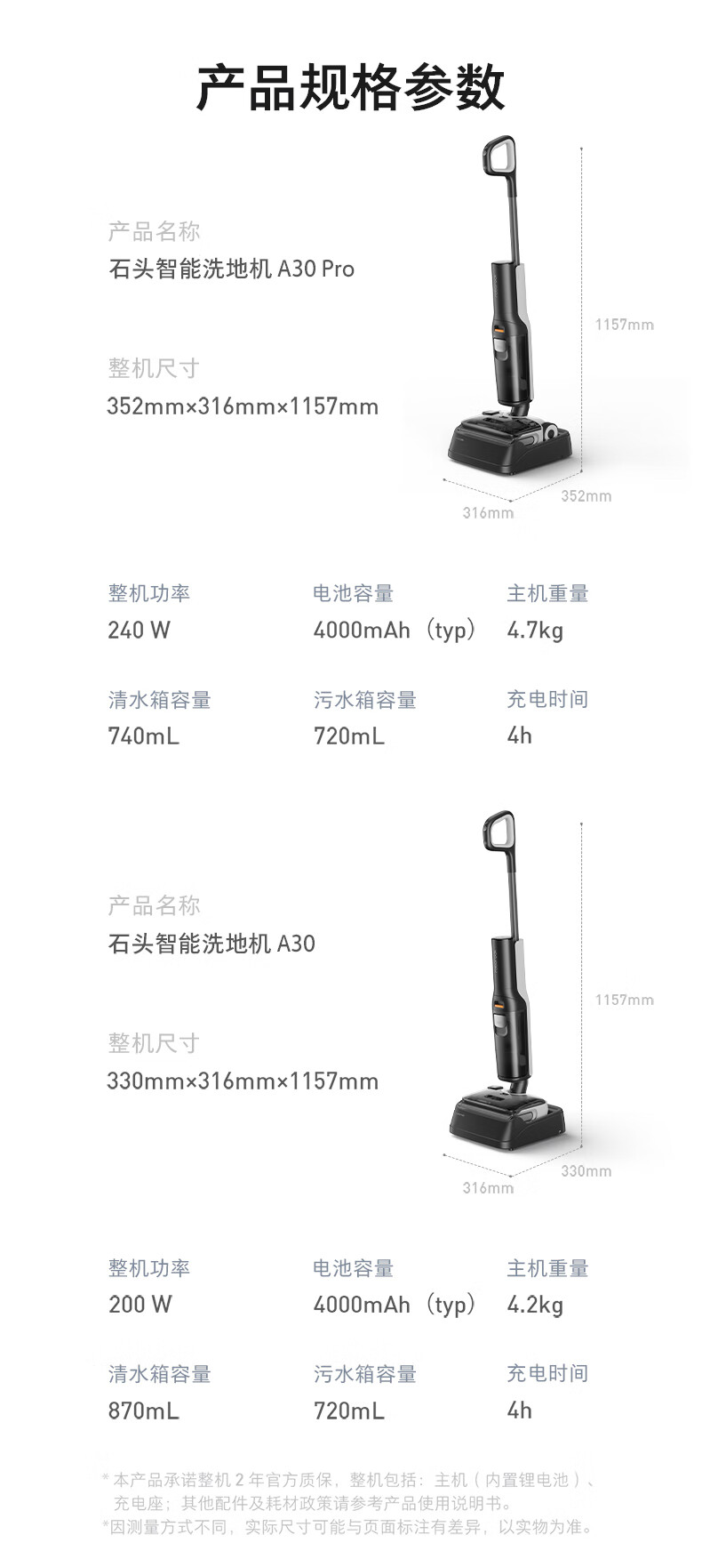 石头(roborock)A30 Pro洗地机0缠毛180°平躺AI智驾助力智能投放家用吸拖洗一体手持吸尘器 【Top热卖】A30 Pro