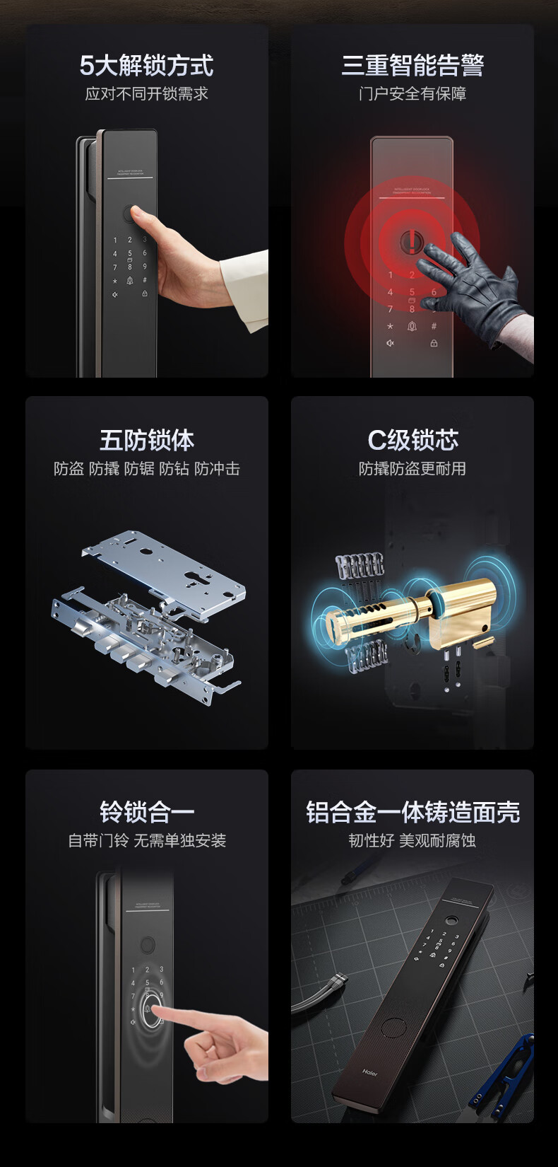 海尔(Haier)上下双摄掌静脉人脸识别指纹锁密码锁入户门家用智能门锁P50Pro