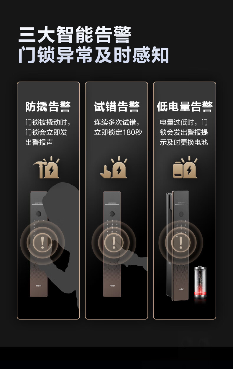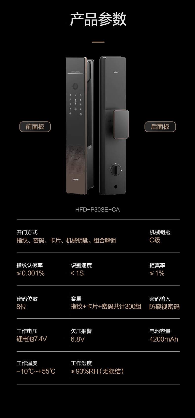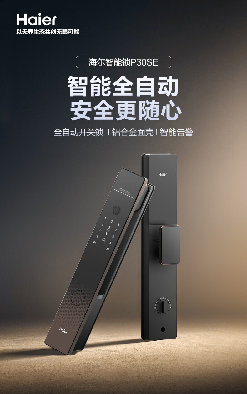 海尔(Haier)智能门锁指纹锁指纹密码锁全自动开关锁电子门锁HFD-P30SE-CA