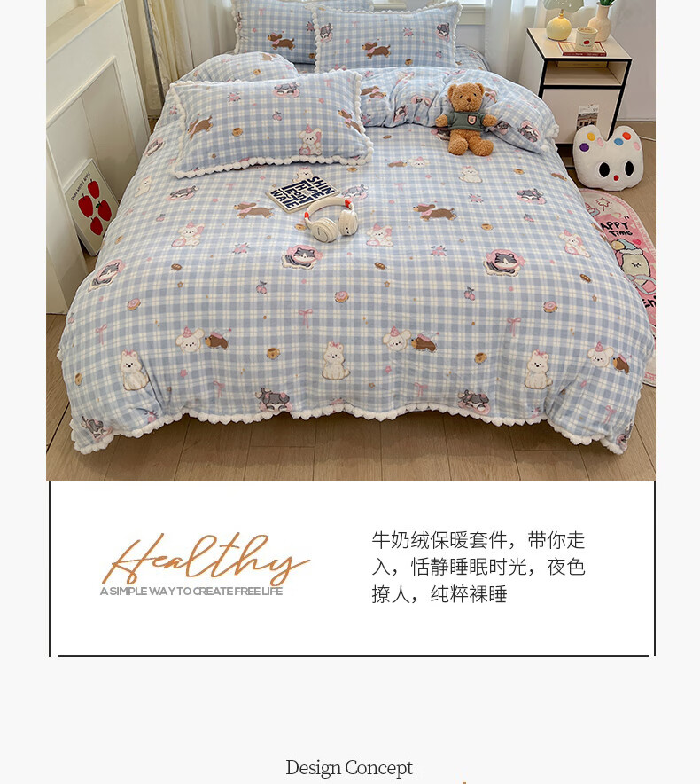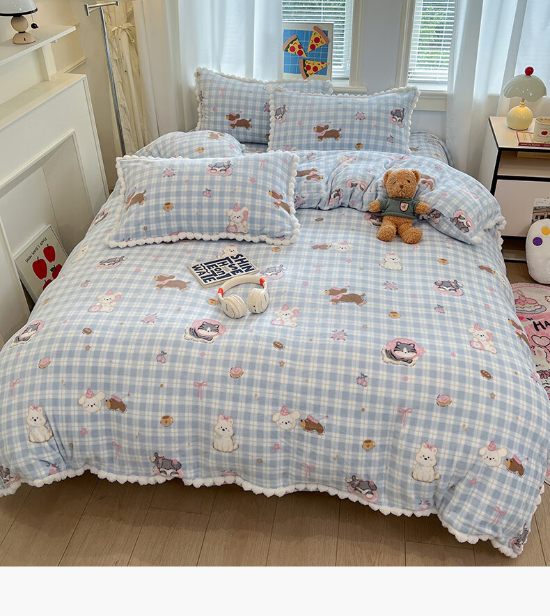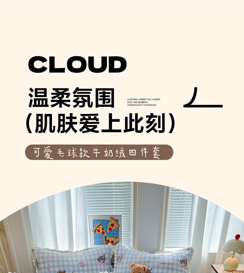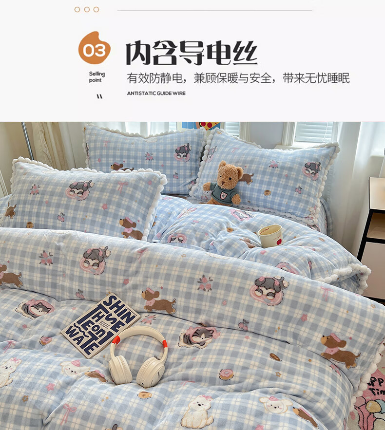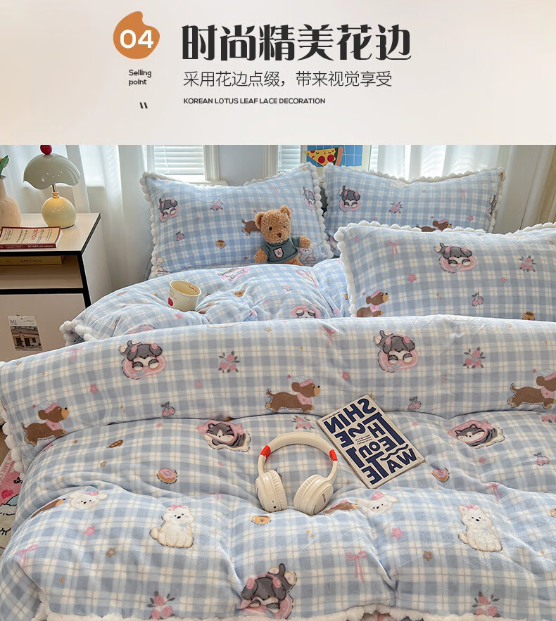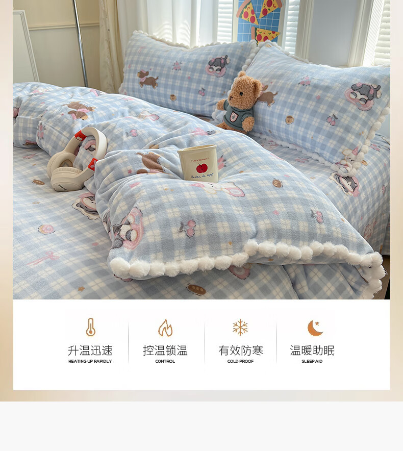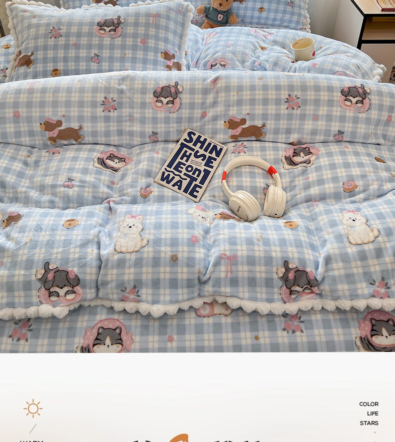 猫人(MiiOW)卡通牛奶绒床上四件套秋冬加厚珊瑚绒床单被套罩三件套床上用品 蒲团小猫【加厚加密】 1.8m 床单款 四件套-200x230cm被套