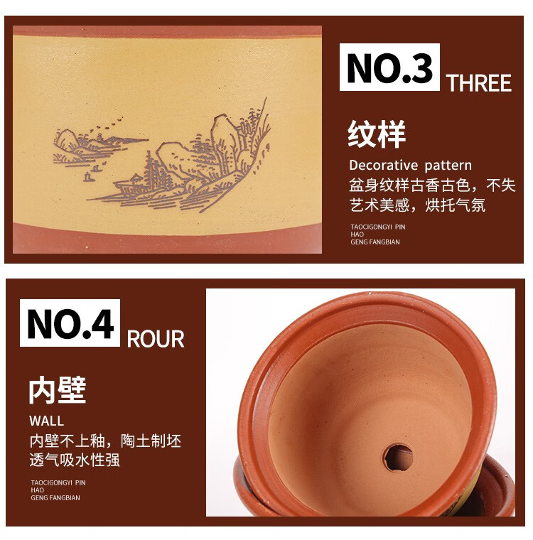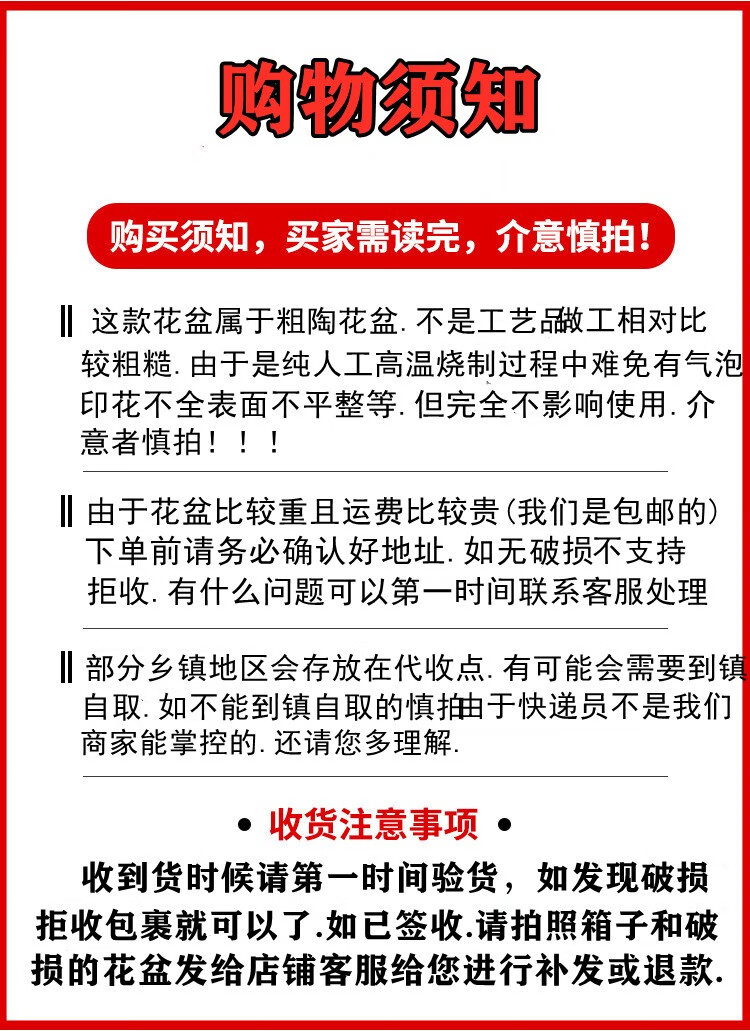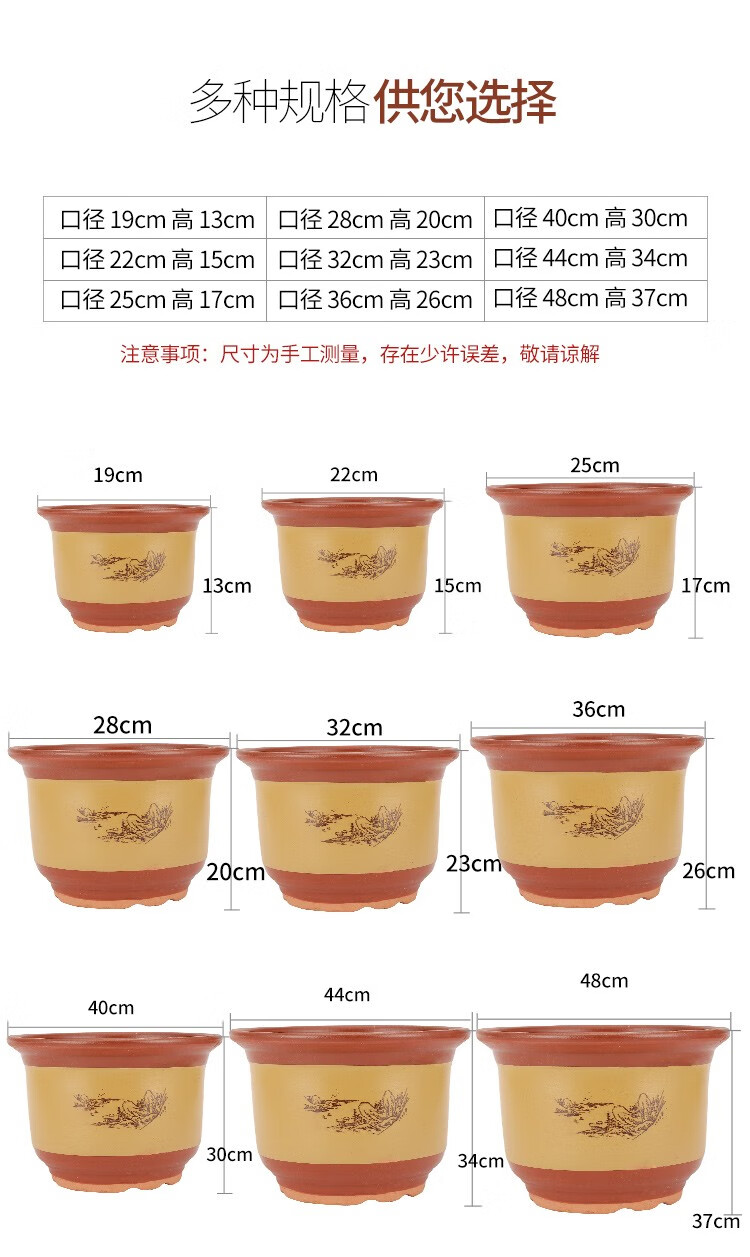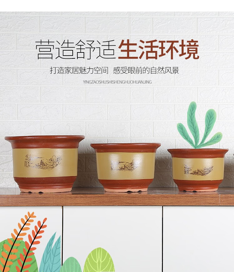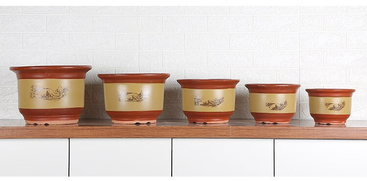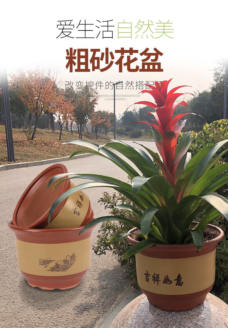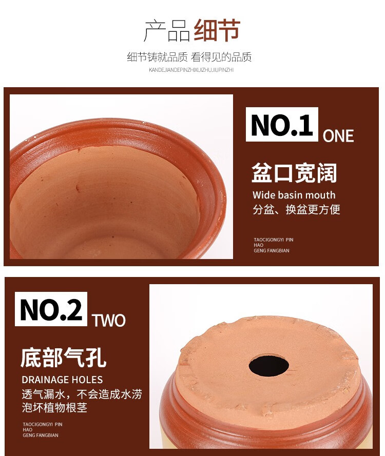 努拉派家用粗陶花盆大号陶土栽花花盆陶瓷落地盆景兰花盆 特大(直径40高30)