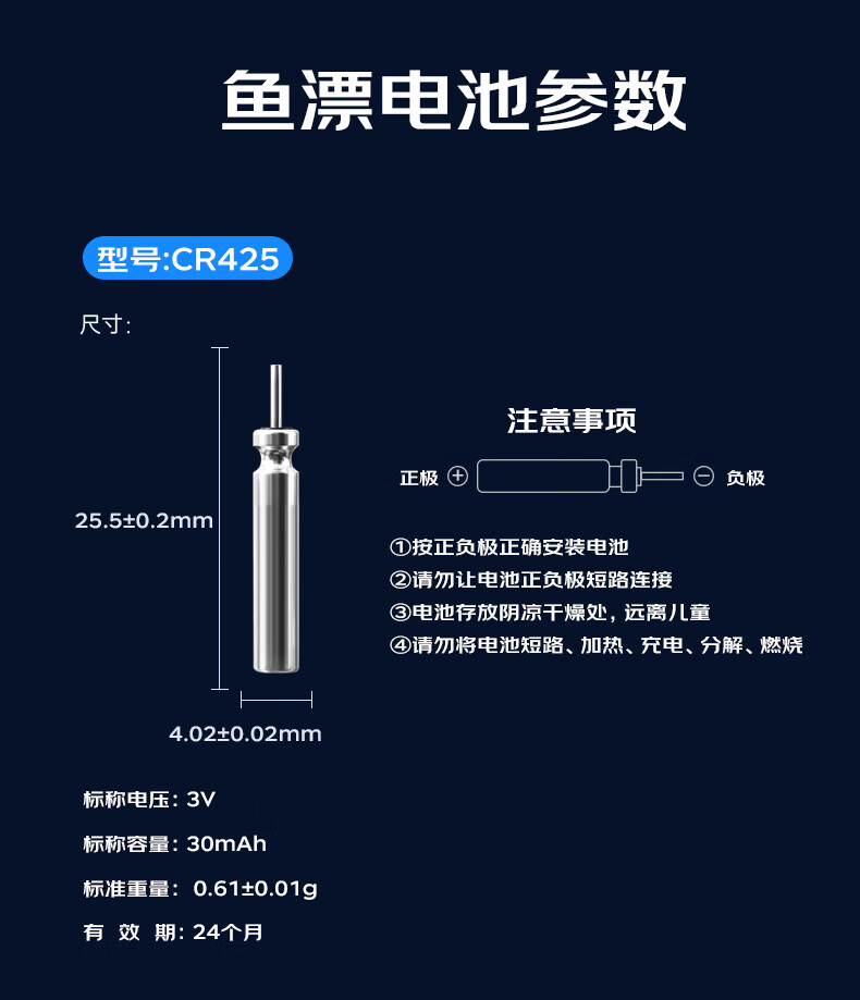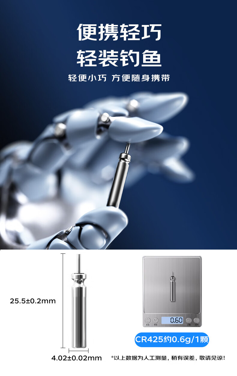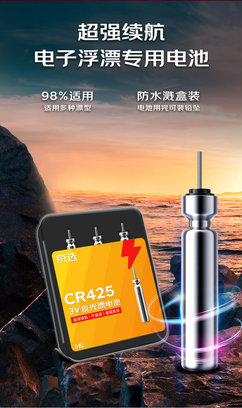 京选京东自有品牌 夜光漂鱼漂电池CR425 5粒 夜钓/发光浮漂/鱼漂/洛阳球软球漂/大肚漂通用一件包邮